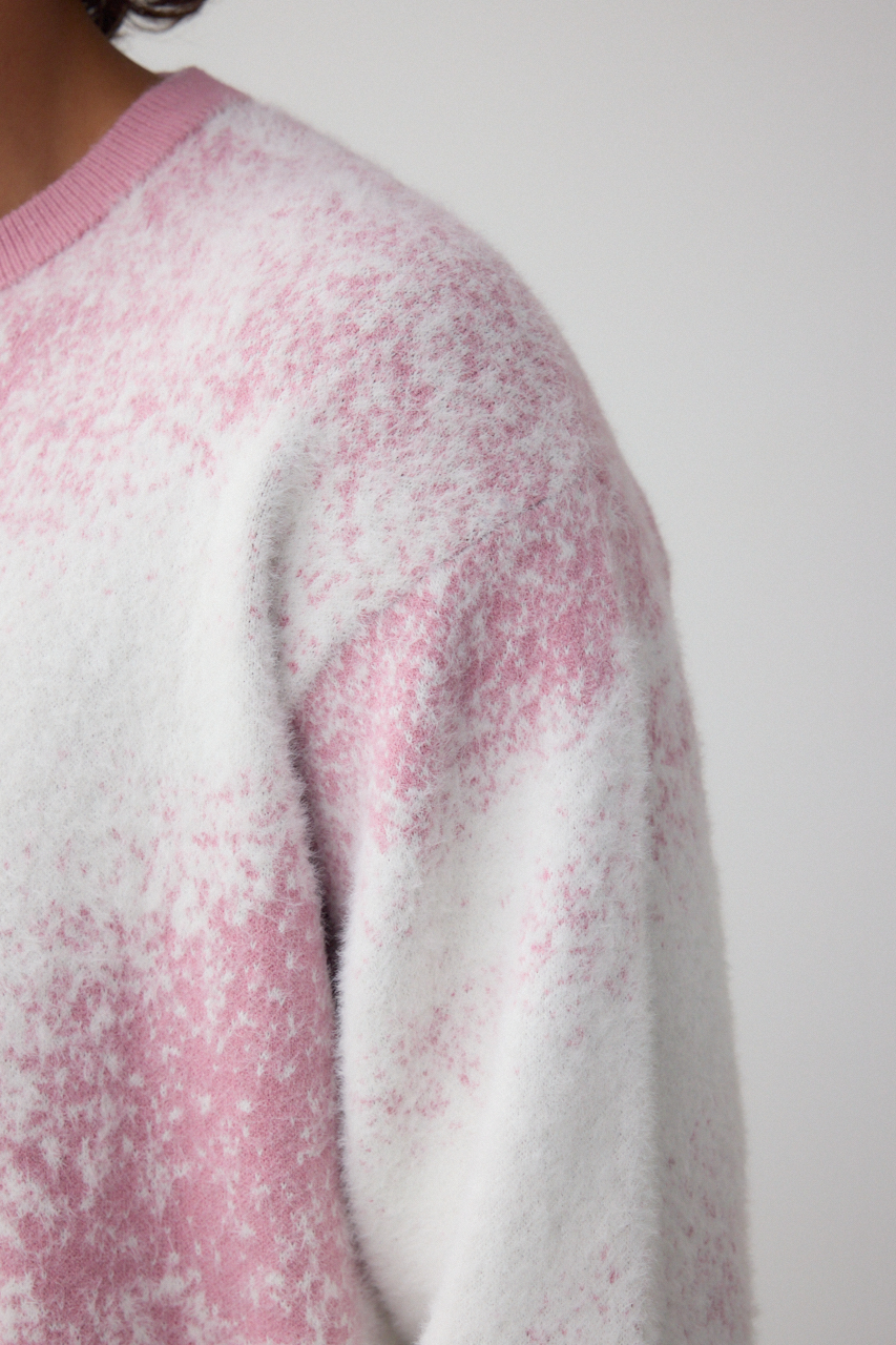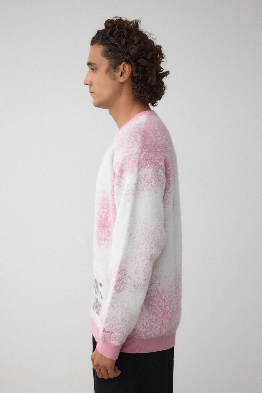 シャギーのジャガード編みで、フォトデザインを表現。