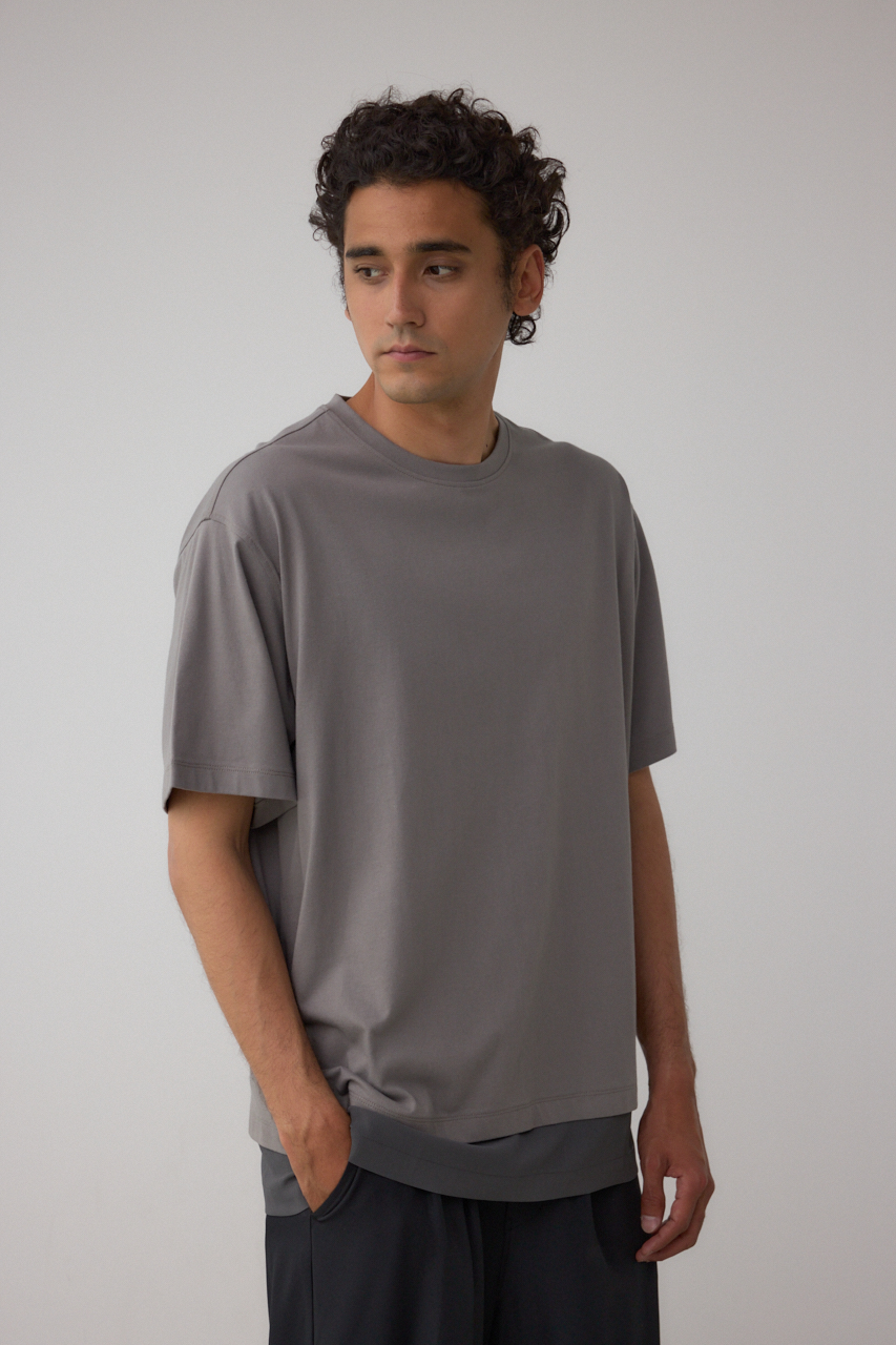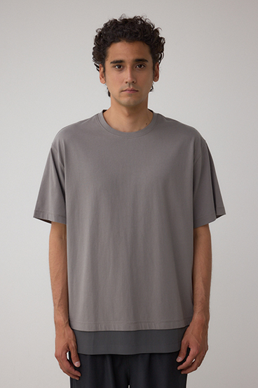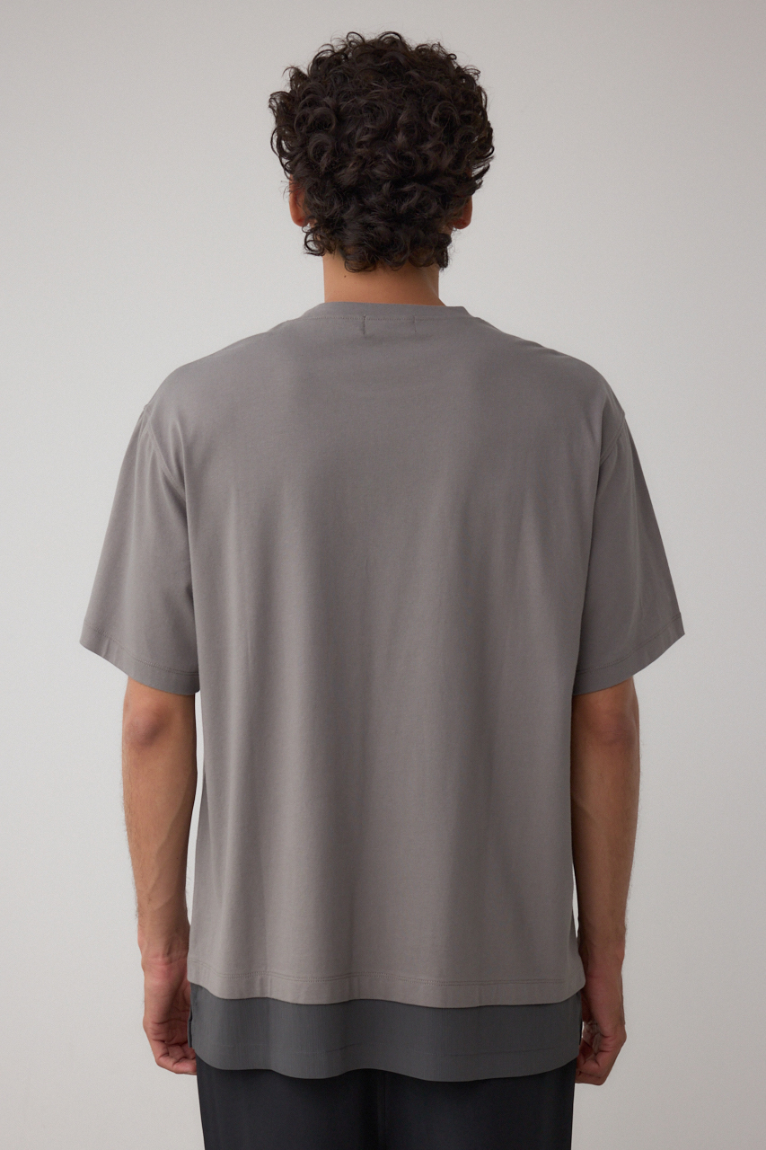 肌触りのいい天竺素材に楊柳シャツをドッキングさせた大人見えなTシャツになります。