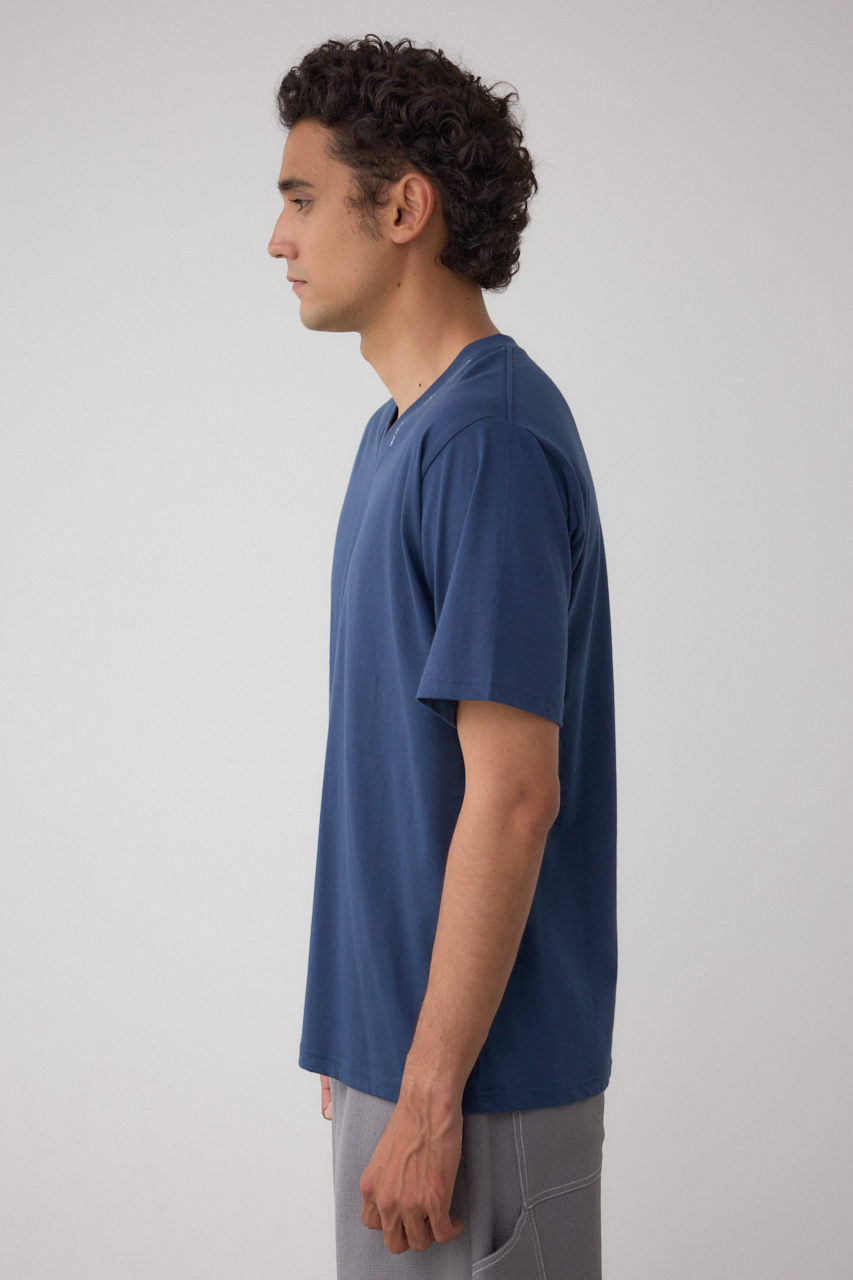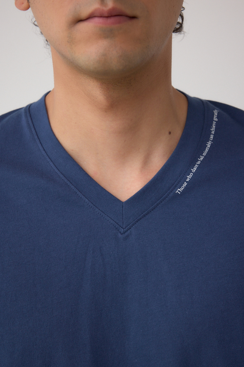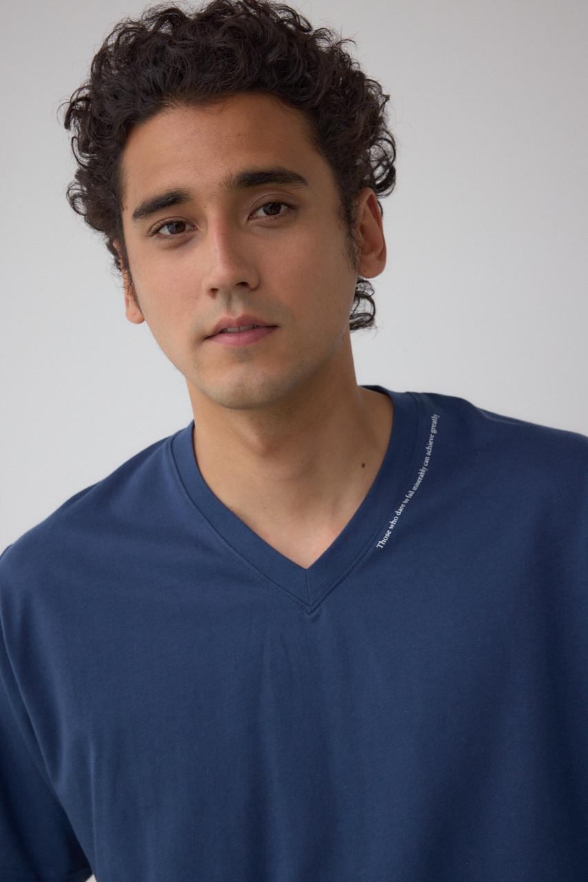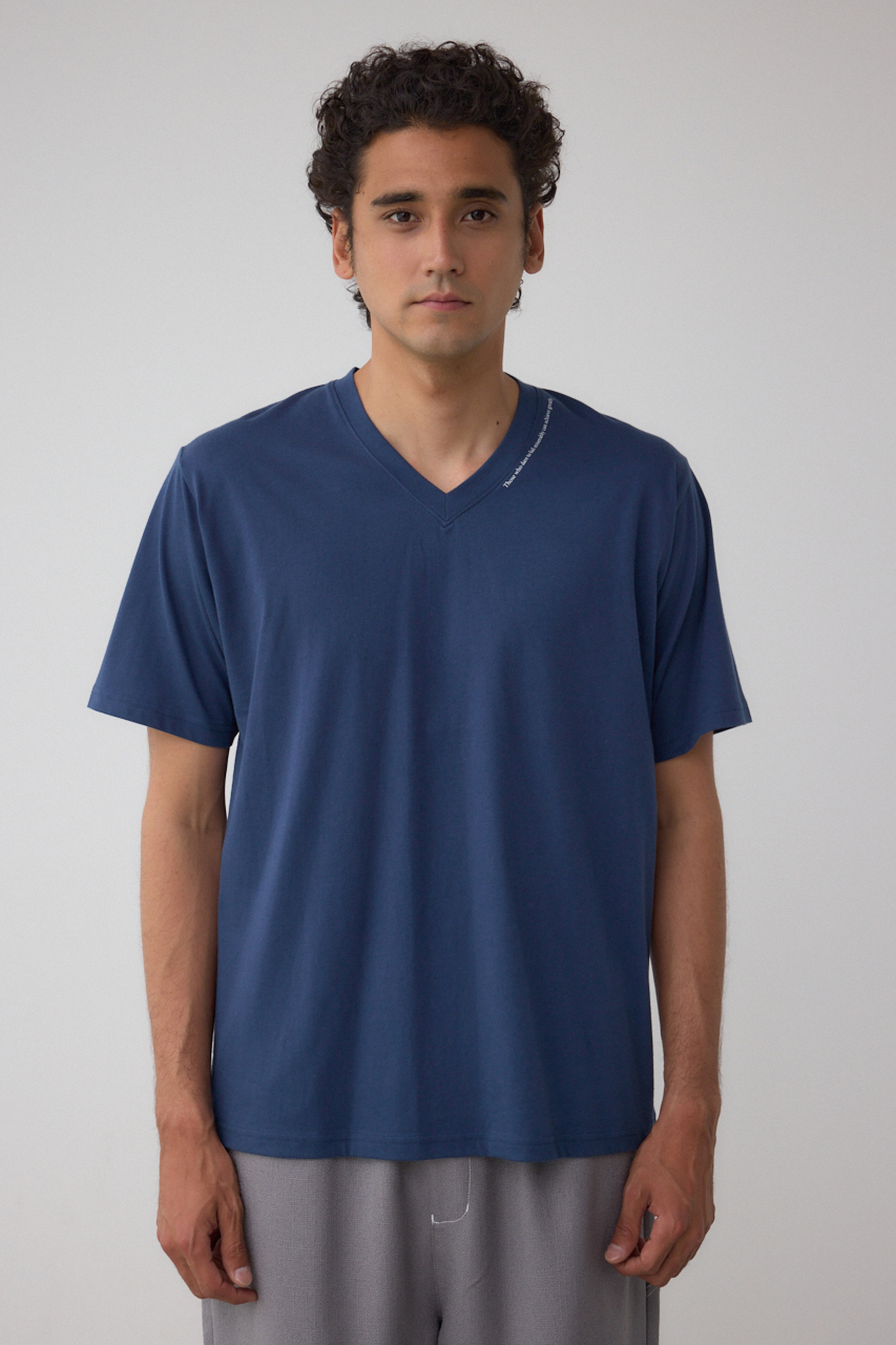 ネック部分にロゴが入ったVネックTシャツになります。