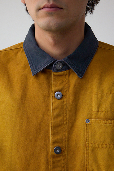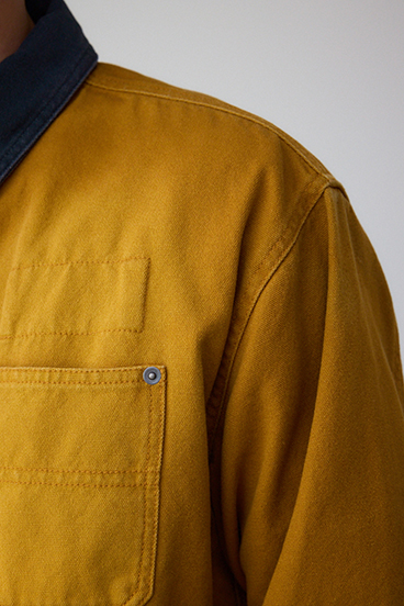 平織のヘビーオックスにブラスト+洗い加工であたりをだしたヴィンテージ風に仕上げています。