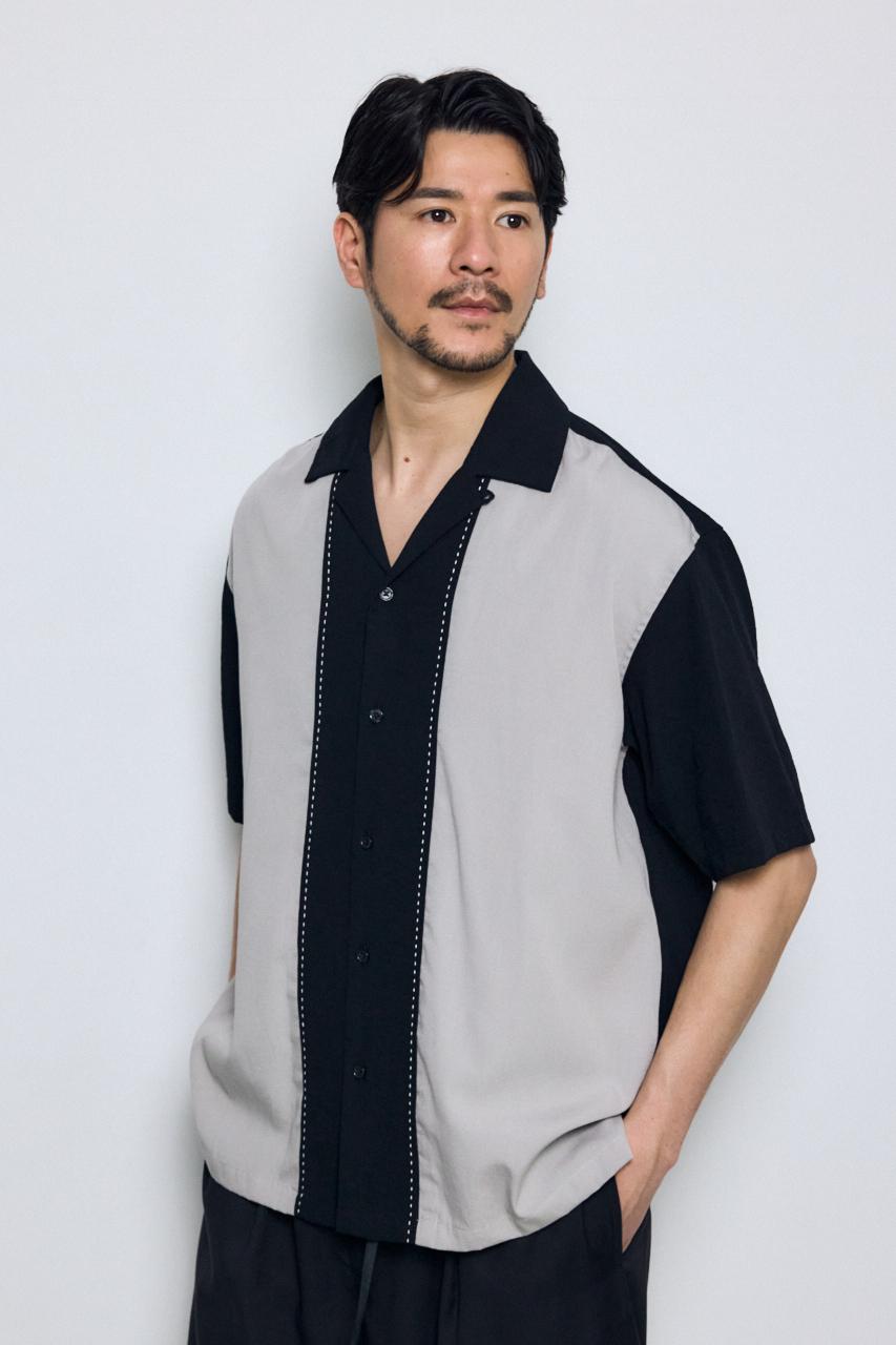 3. ツートーン切替開襟半袖シャツ 詳細画像