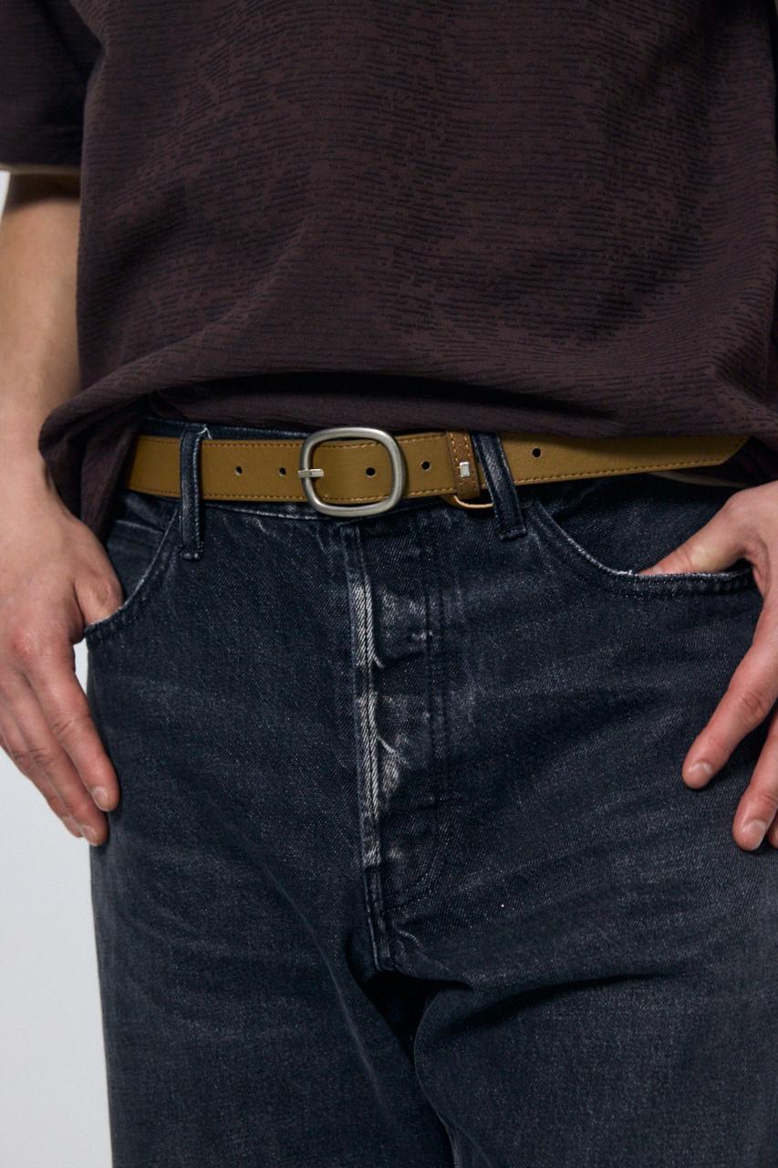シンプルなバックルデザインで主張しすぎず、ベルトそのものがさりげないアクセントに。