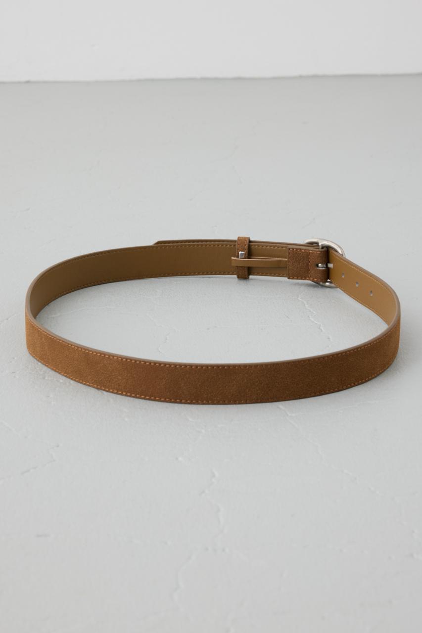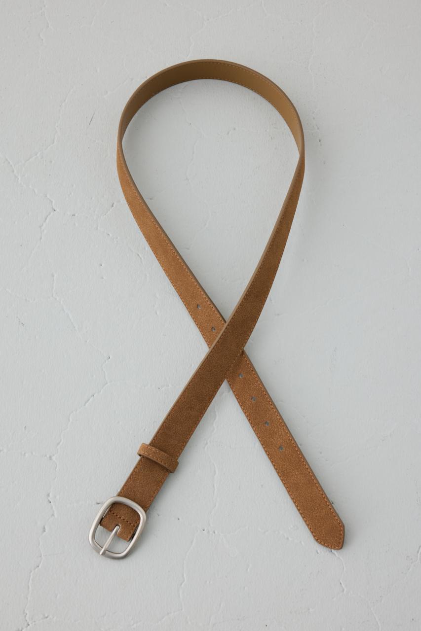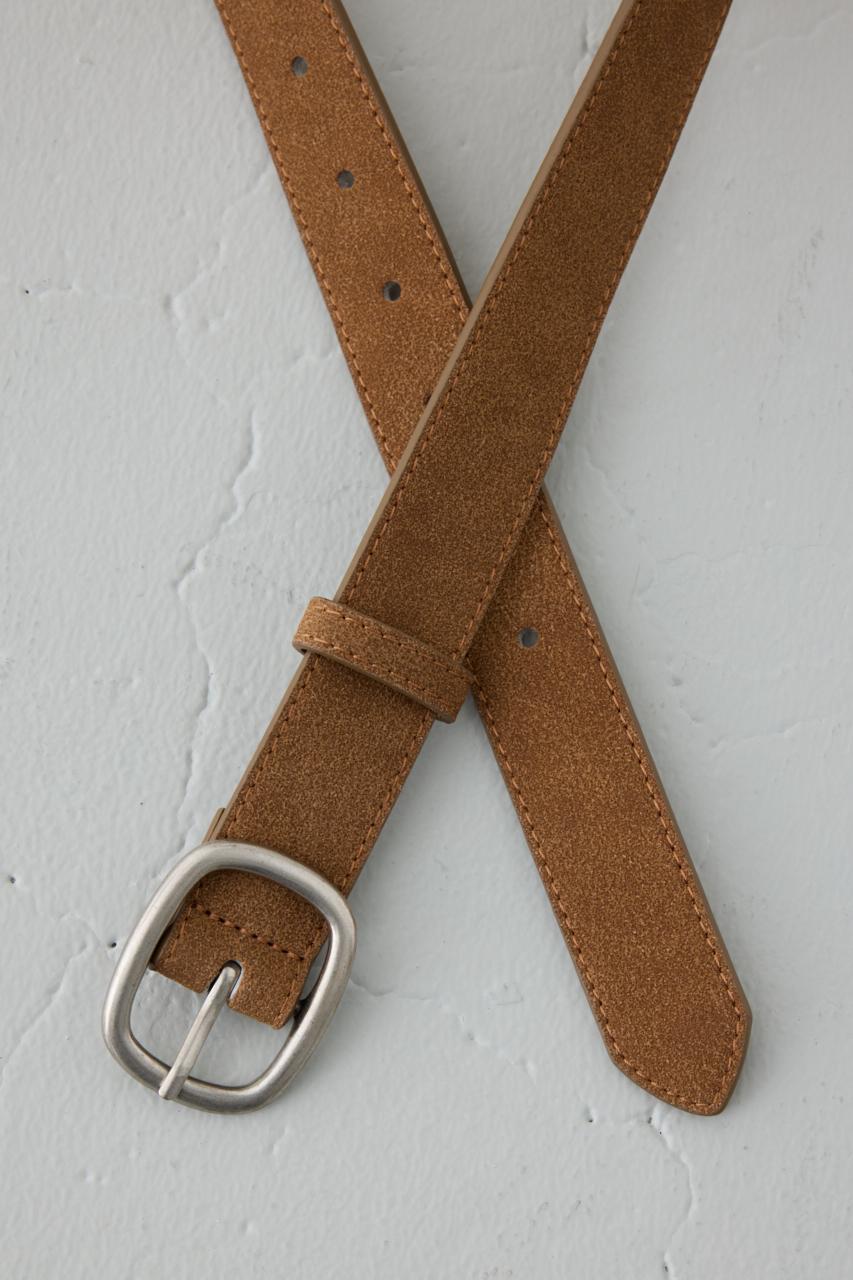 フェイクスエード素材の柔らかな風合いで、大人っぽいカジュアル感を演出するベルト。