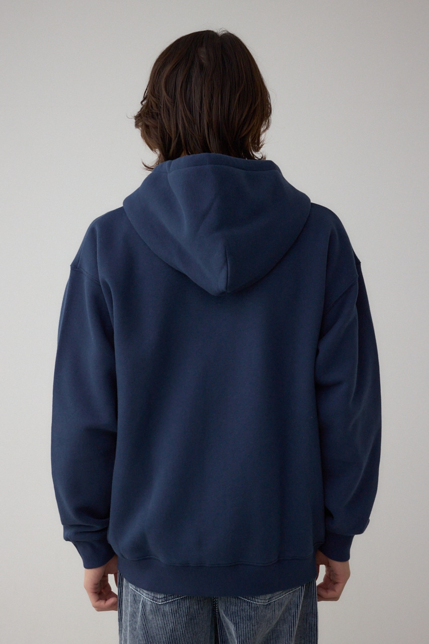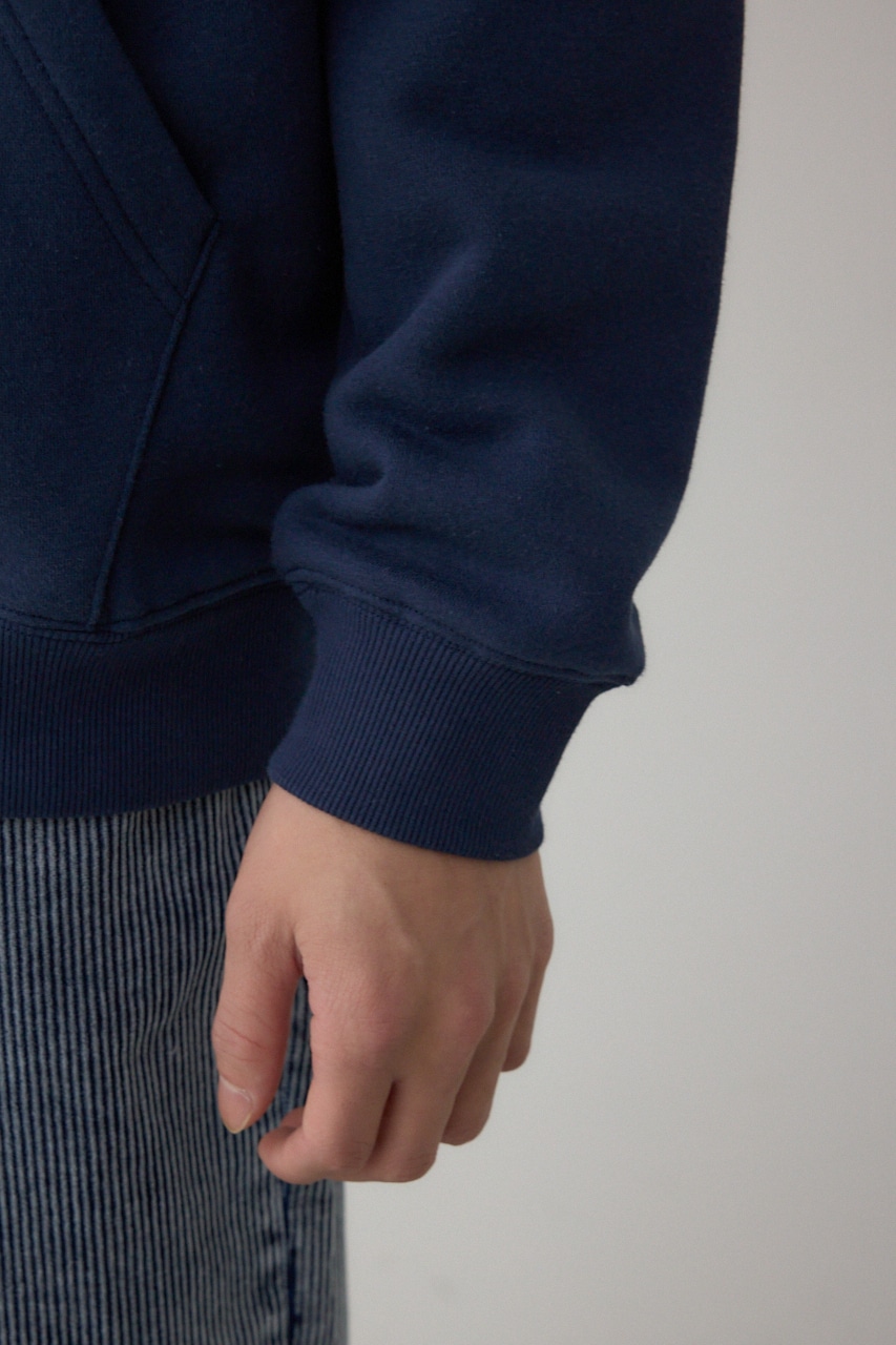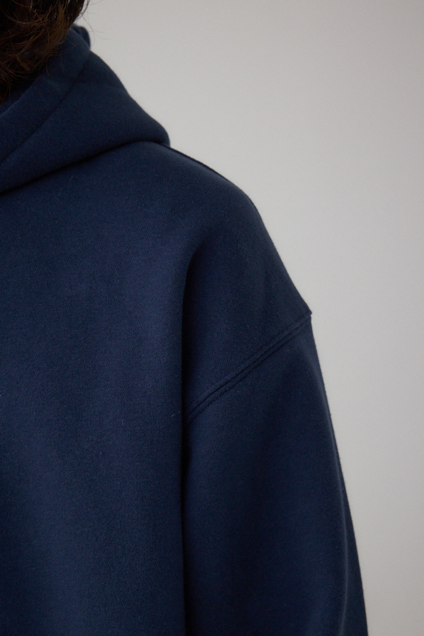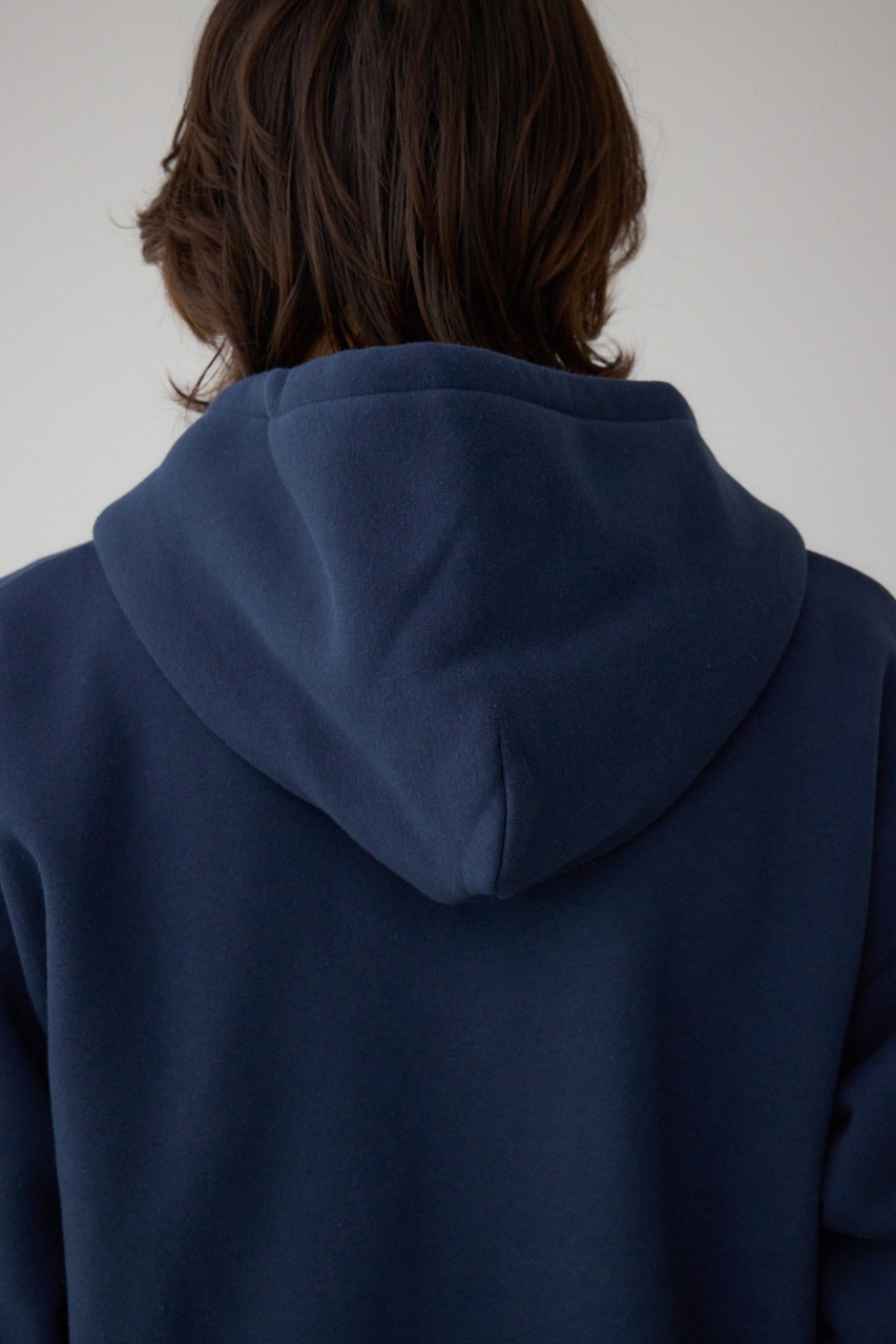 裏起毛素材で軽く暖かく、秋冬のデイリーウェアに最適なパーカーです。
