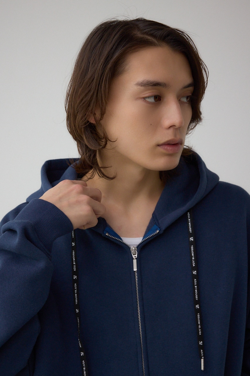 ブランドロゴをプリントしたパーカー紐が、さりげないアクセントに。