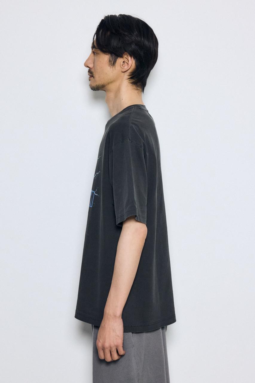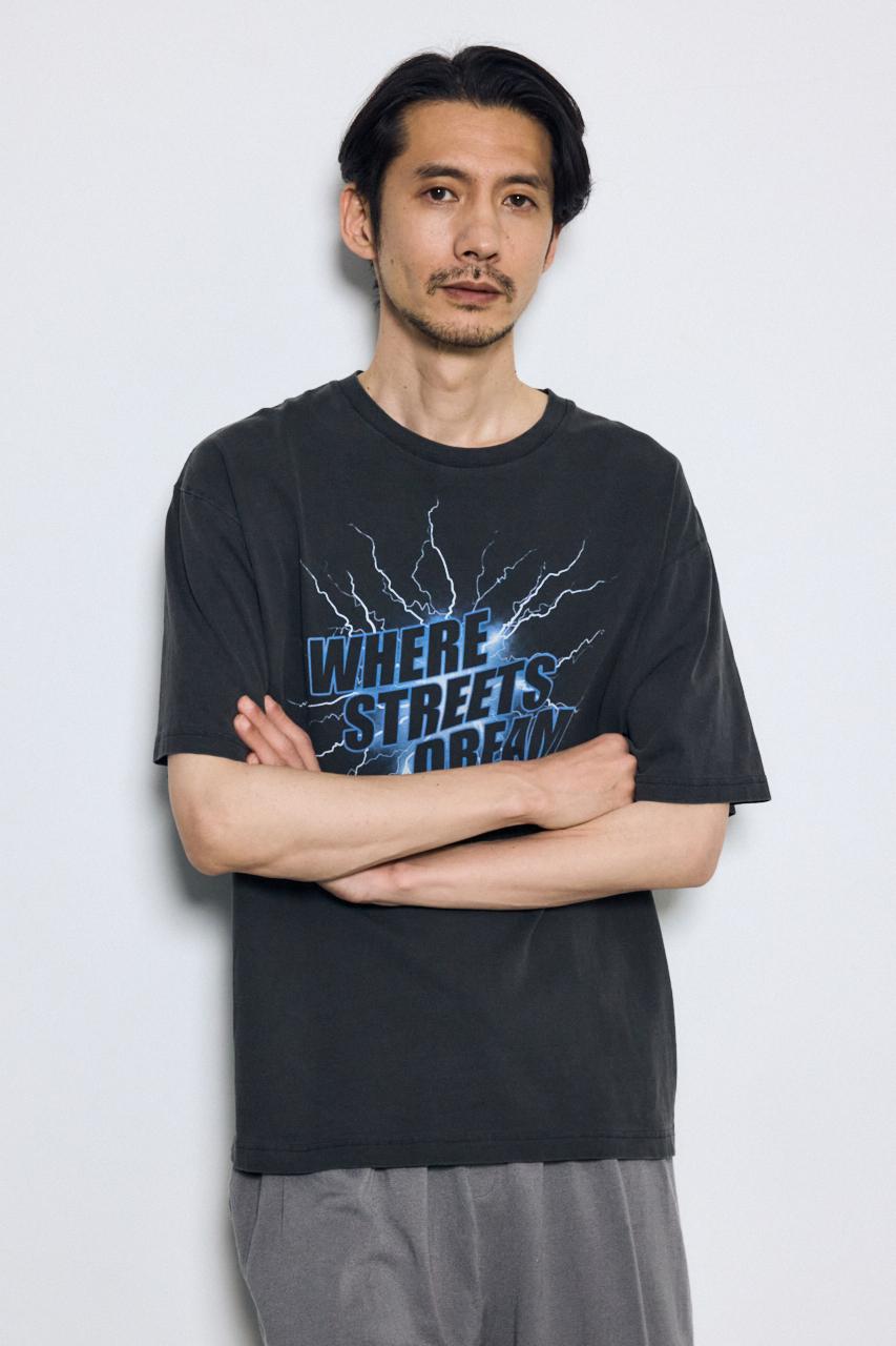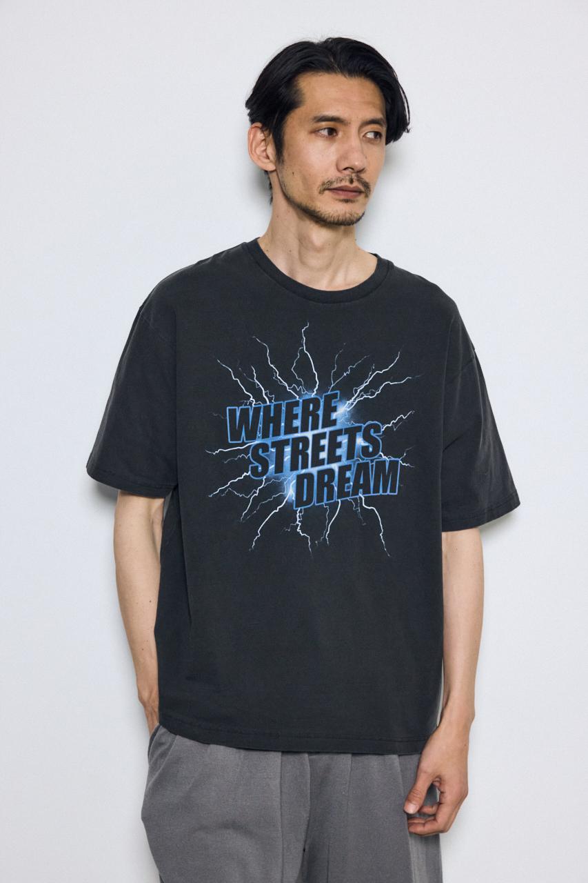 フロントに施されたストリートライクなロゴグラフィックが印象的なデザインTシャツ。