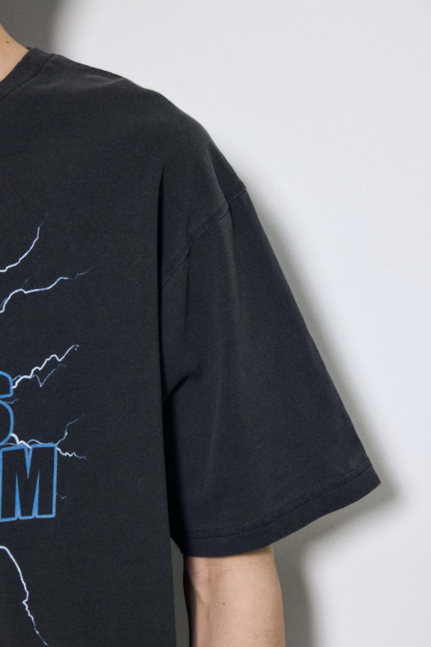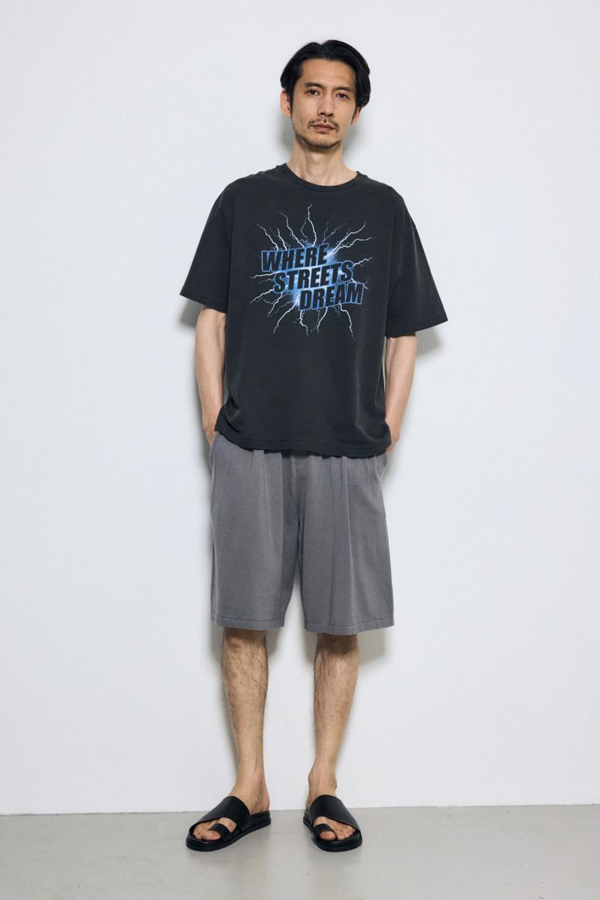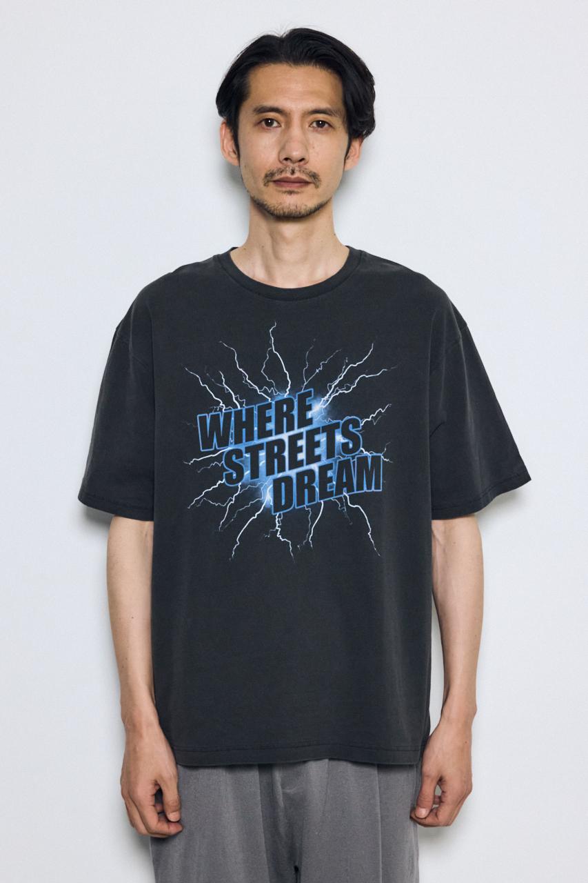 フロントに施されたストリートライクなロゴグラフィックが印象的なデザインTシャツ。