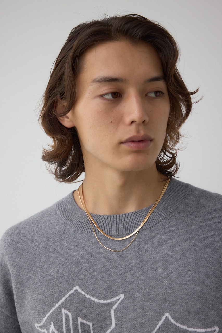 シンプルなTシャツからシャツ、ジャケットまで幅広く合わせやすく、メタリックの光沢で表情を引き締めます。