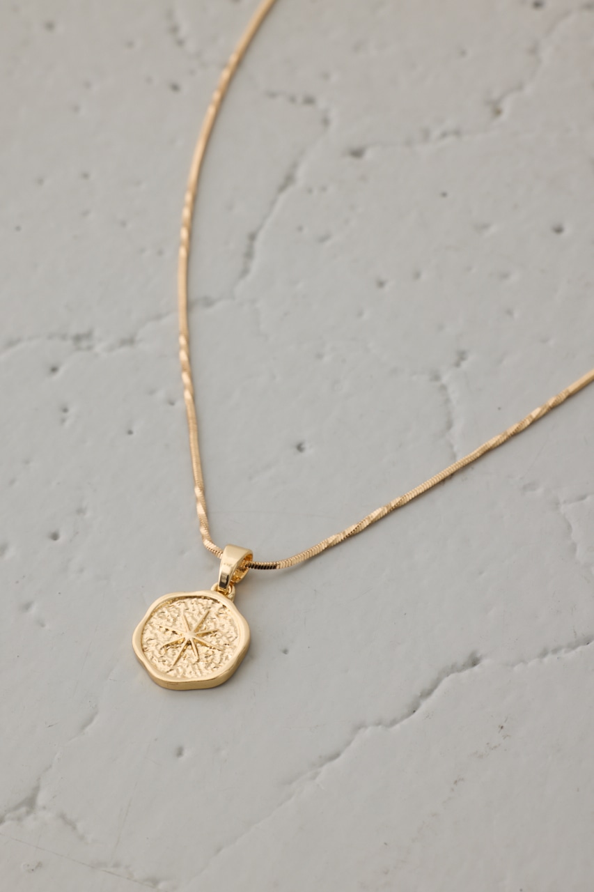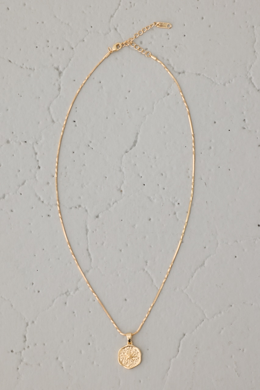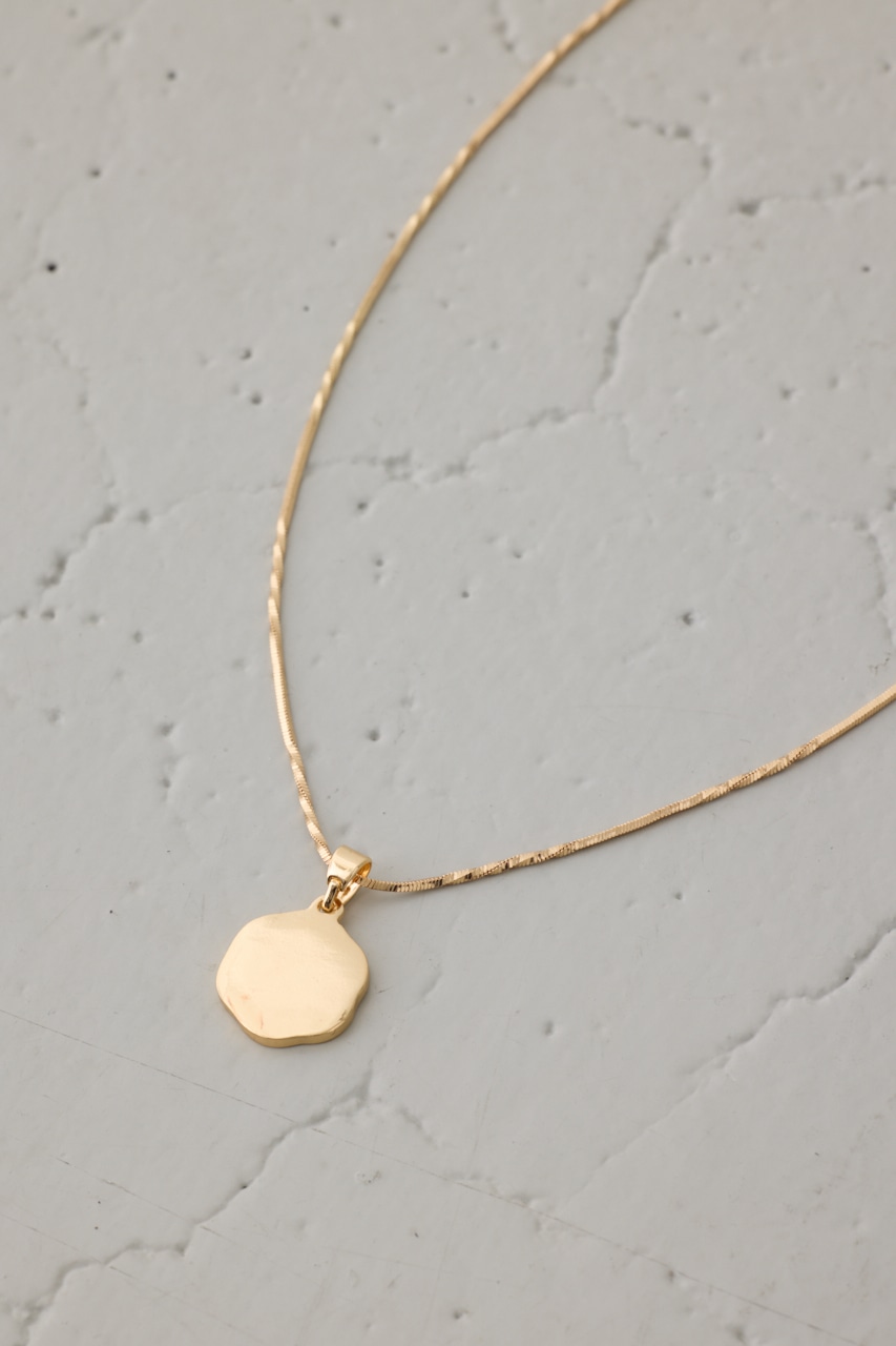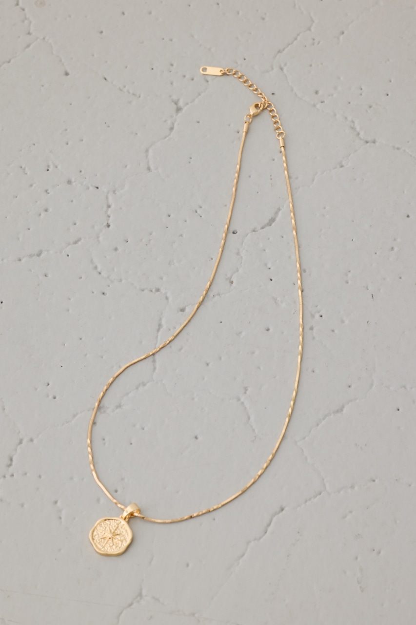中央のコインチャームが程よい存在感を与え、ミニマルながらもクラシックな雰囲気を持つデザイン。