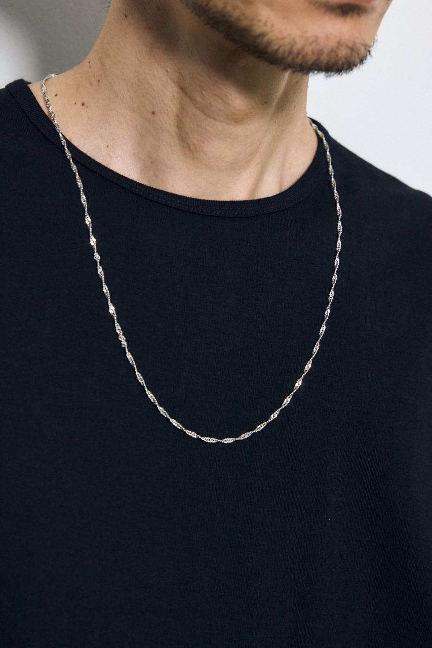華奢でさりげない細さながら、きらりとした存在感を放つチェーンネックレス。