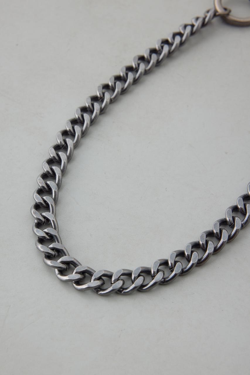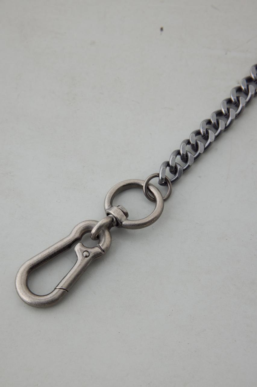 重厚感のあるガンメタル調のチェーンに、両端のフック金具を組み合わせた無骨なデザイン。