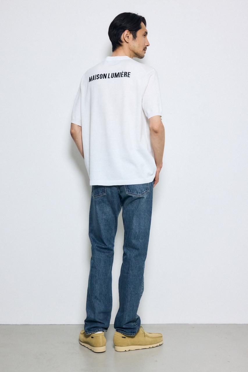 ジャケットのインナーとして着用し、バック刺繍をさりげなく見せるレイヤードも◎。