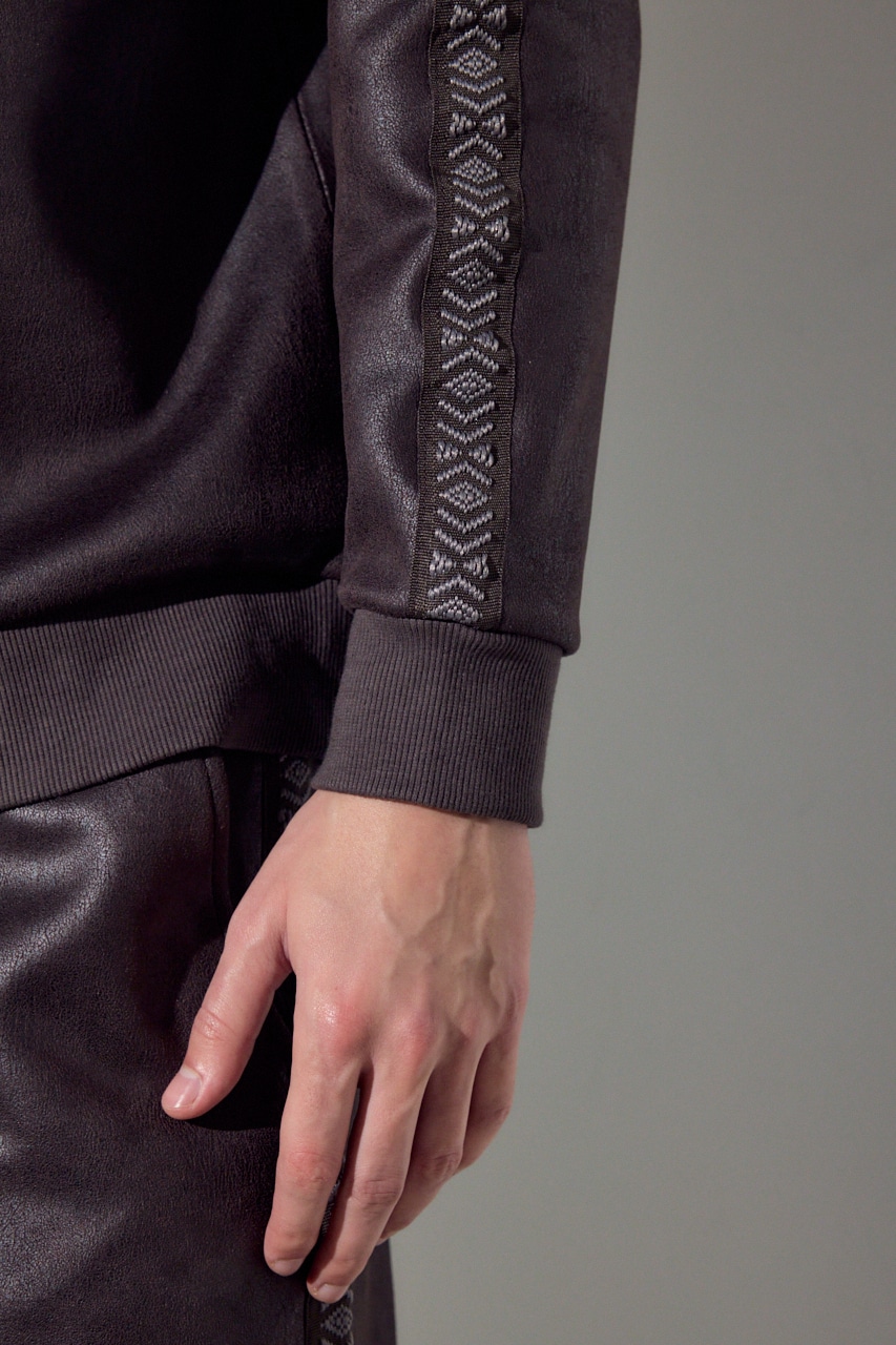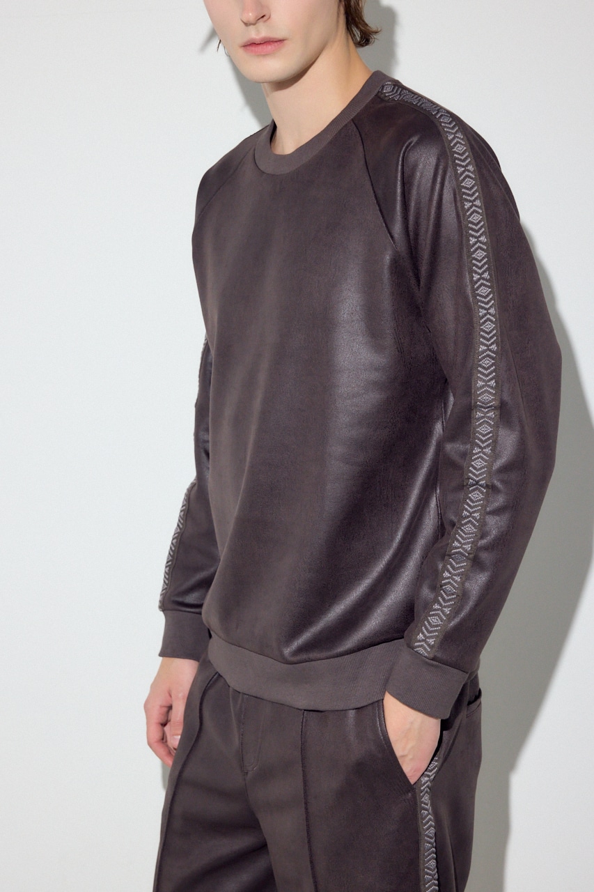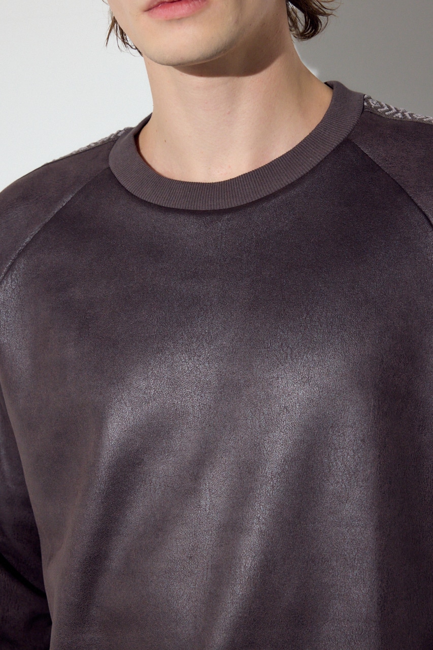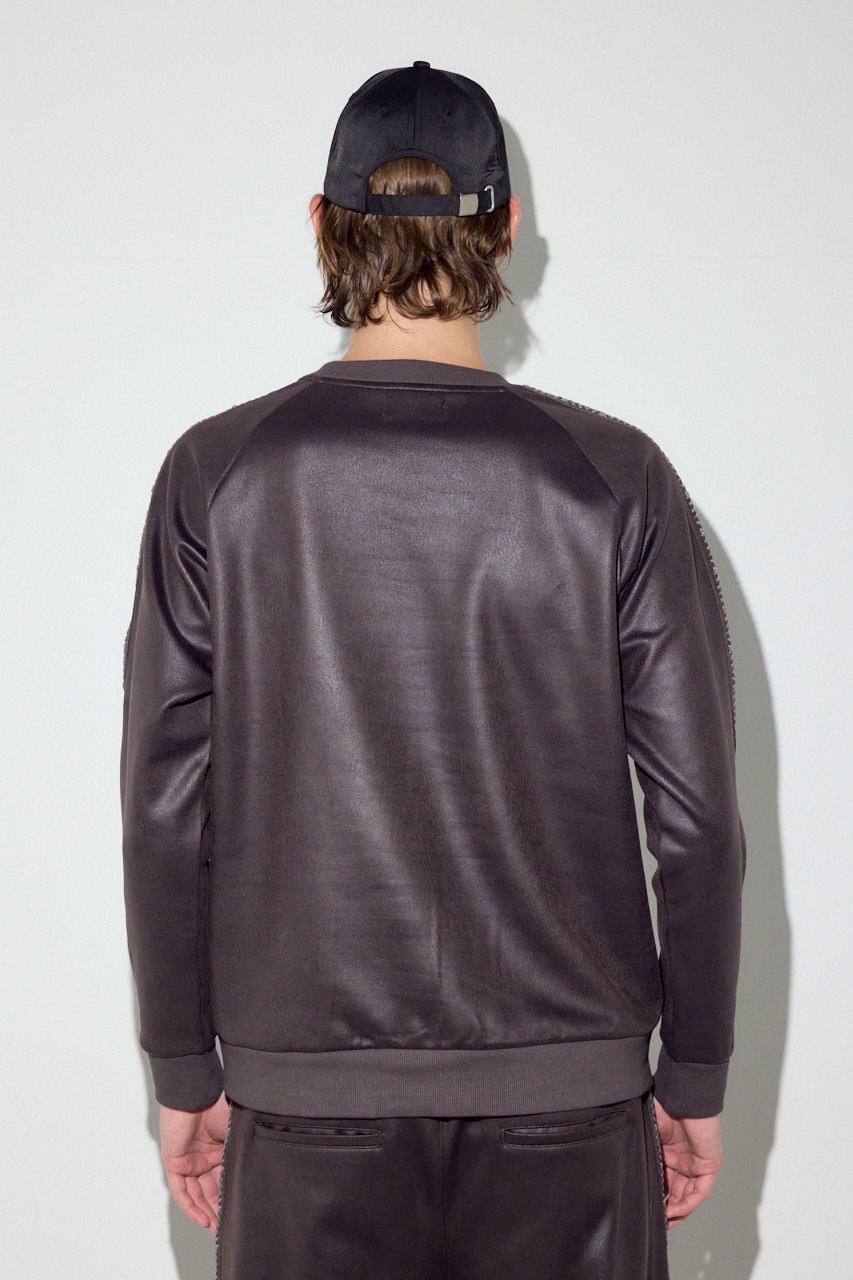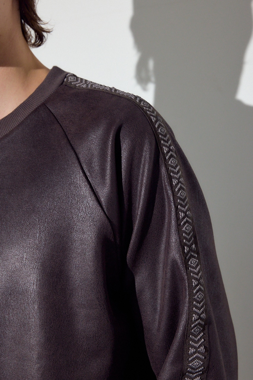 フェイクレザーの表情を気軽に楽しめるトップスです。