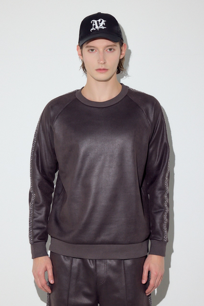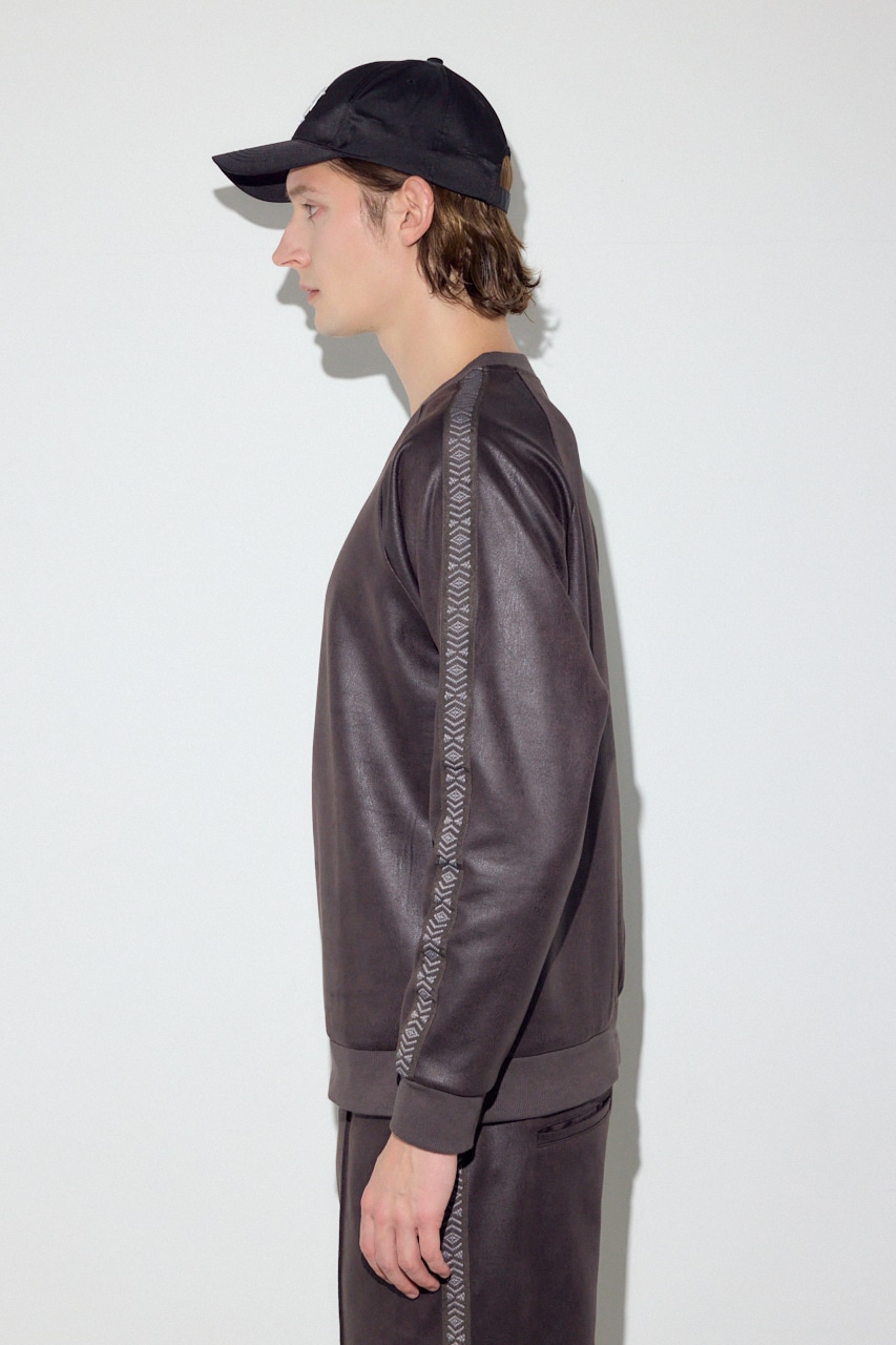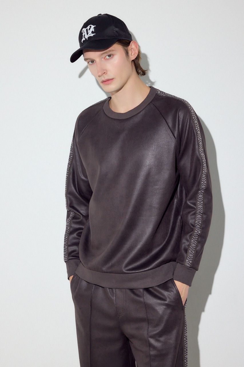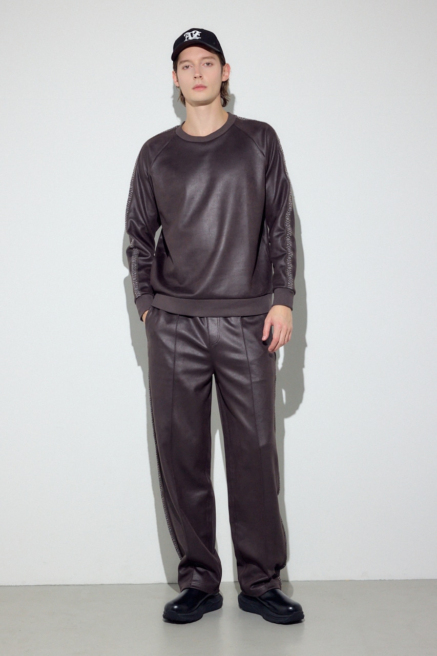 同素材パンツ(251JSC81-0051 フェイクレザーラインパンツ)と合わせてモードまたはスポーティなワントーンコーディネートに。