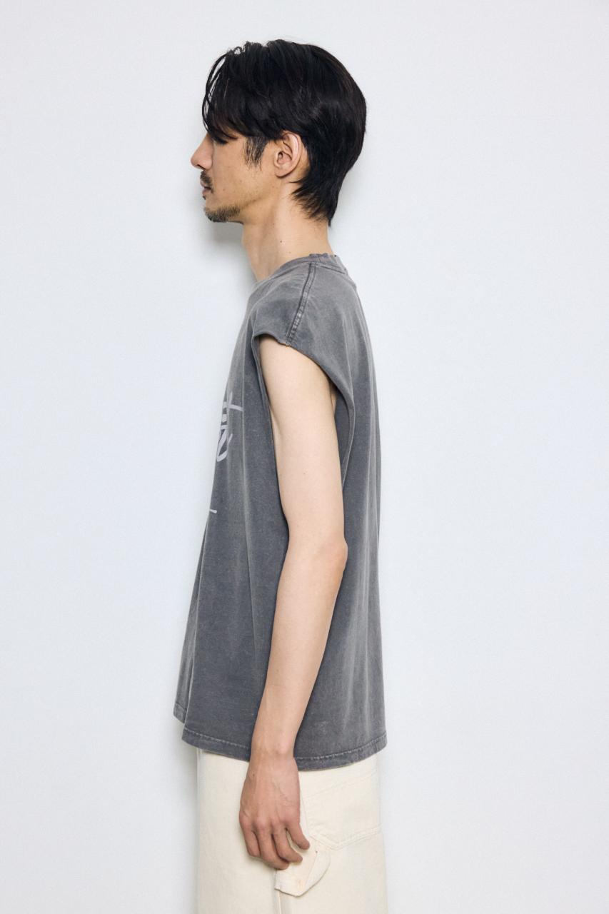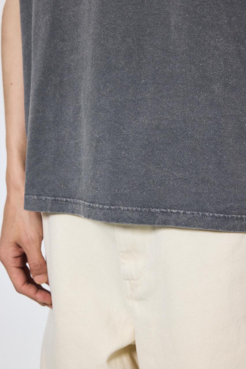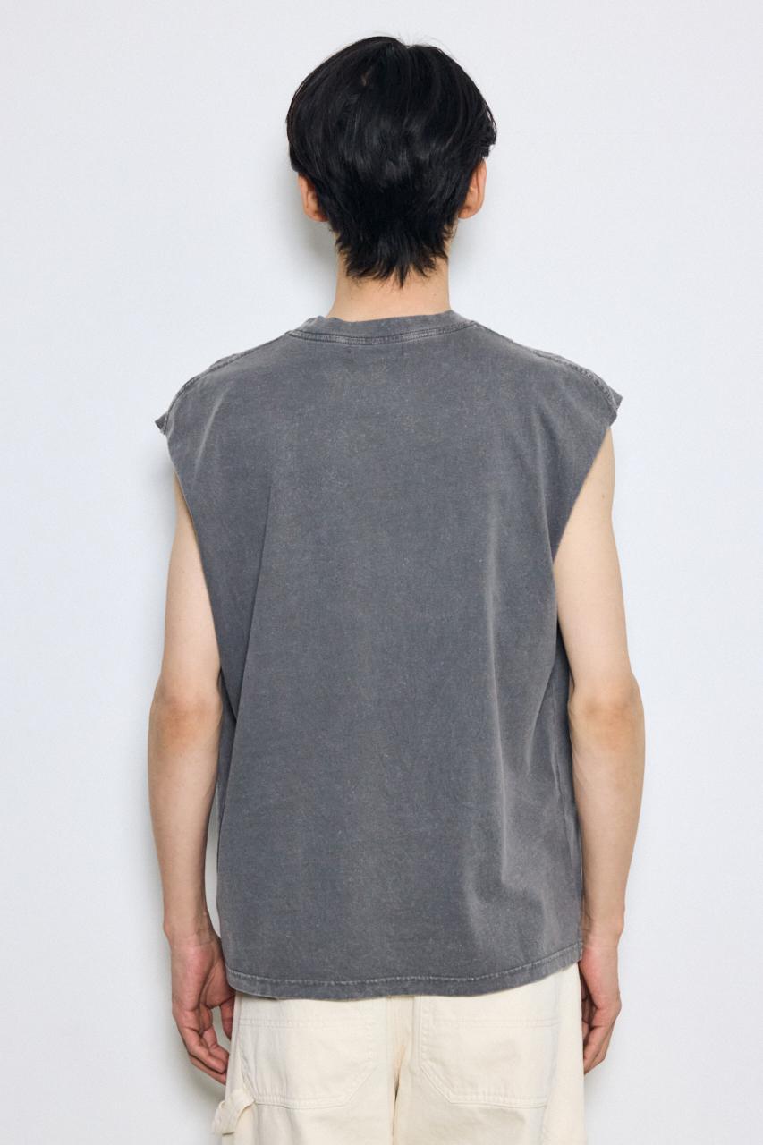 ピグメント加工によるムラ感と、白っぽいアタリが特徴のノースリーブトップスです。