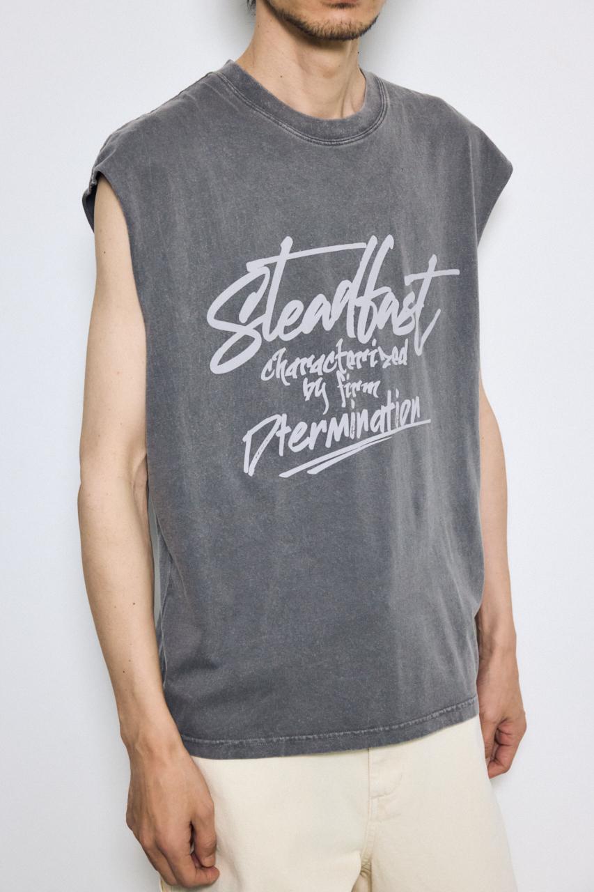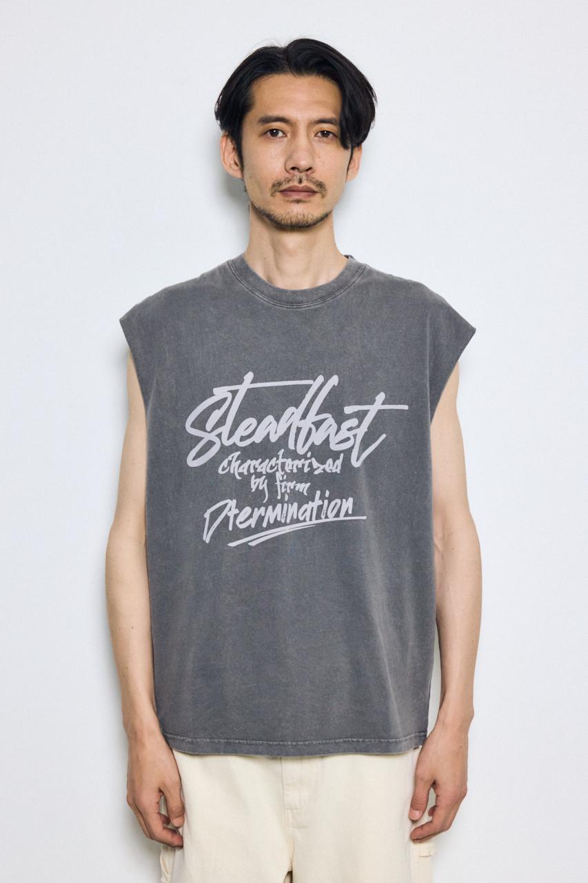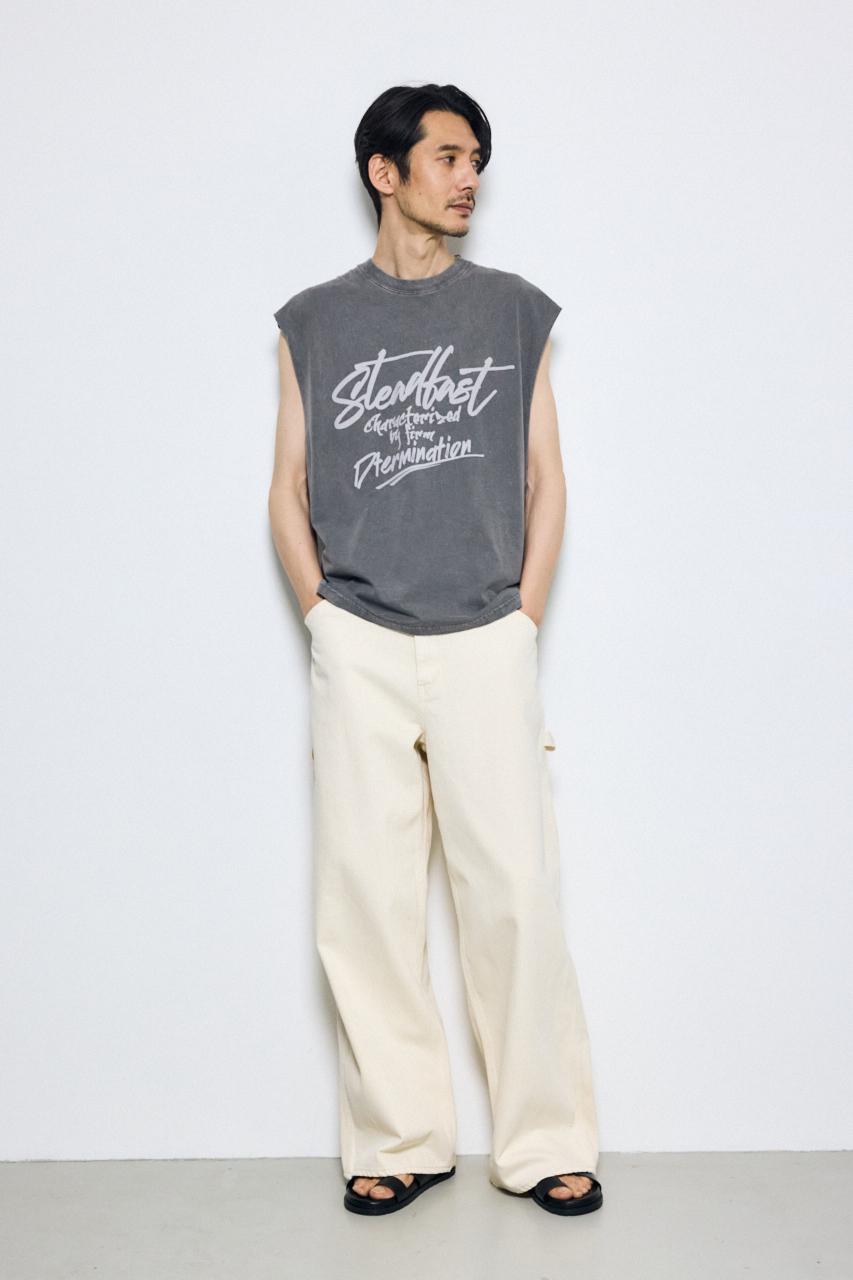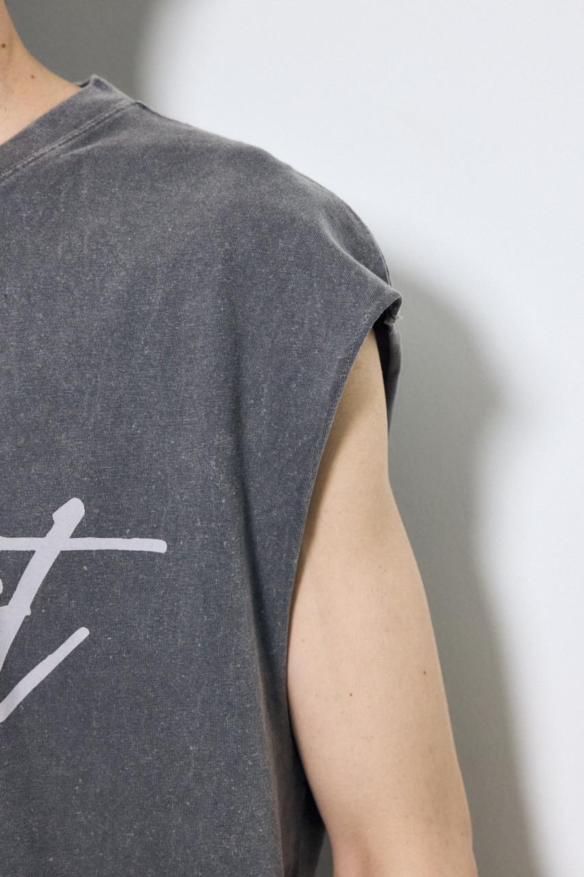 ピグメント加工によるムラ感と、白っぽいアタリが特徴のノースリーブトップスです。