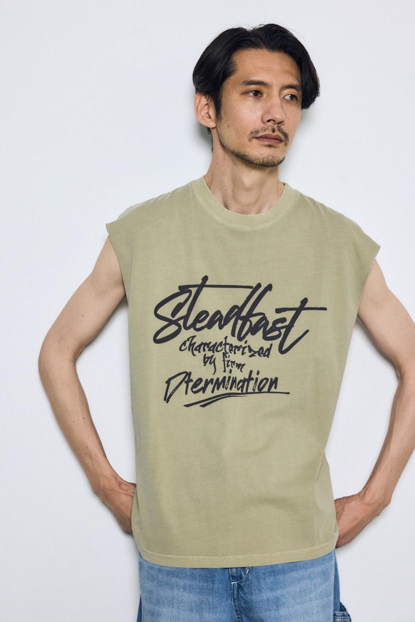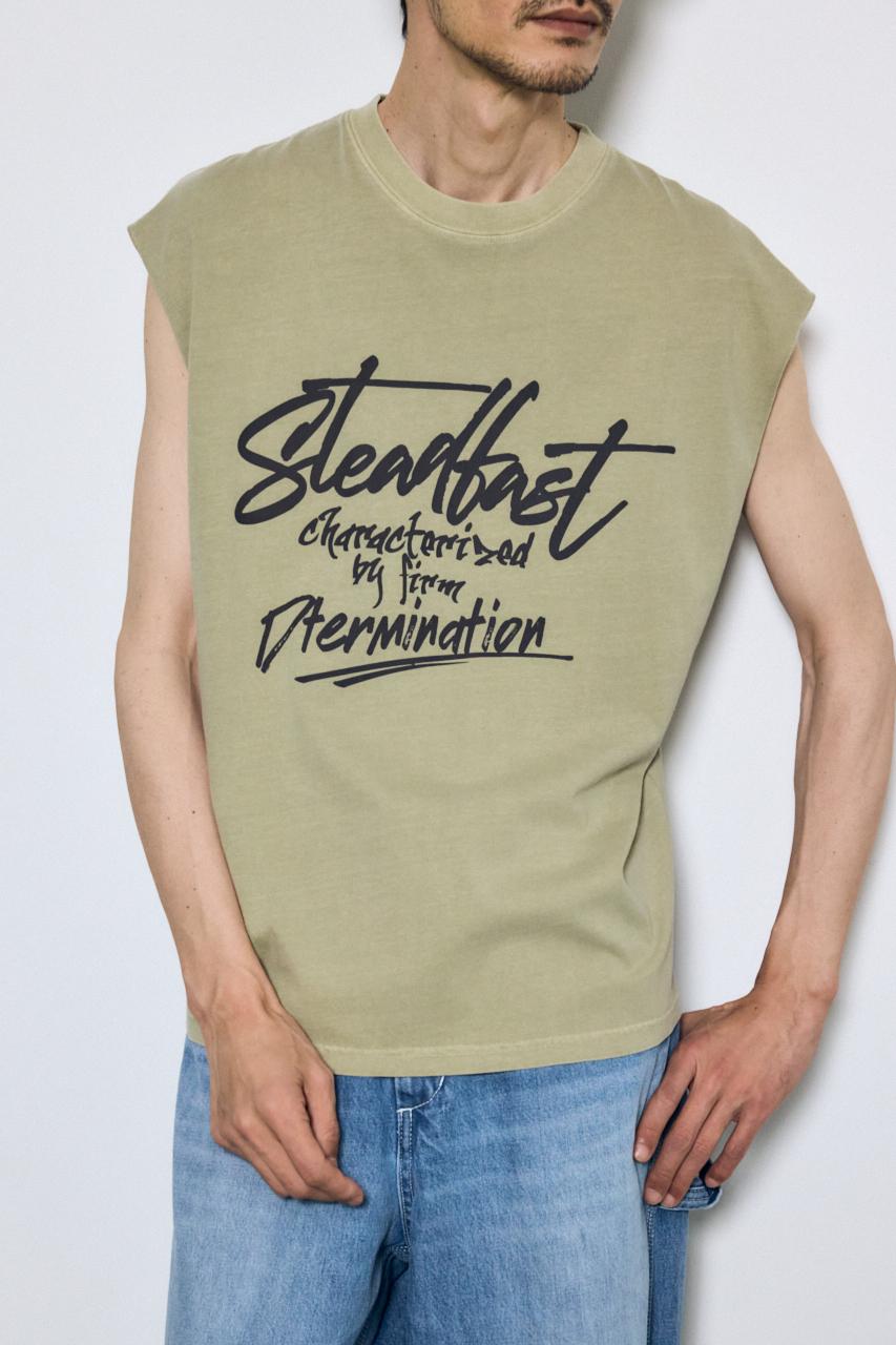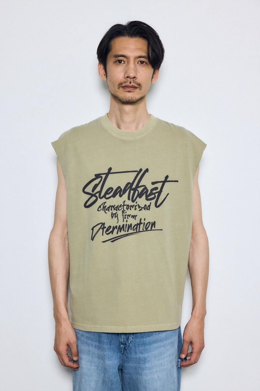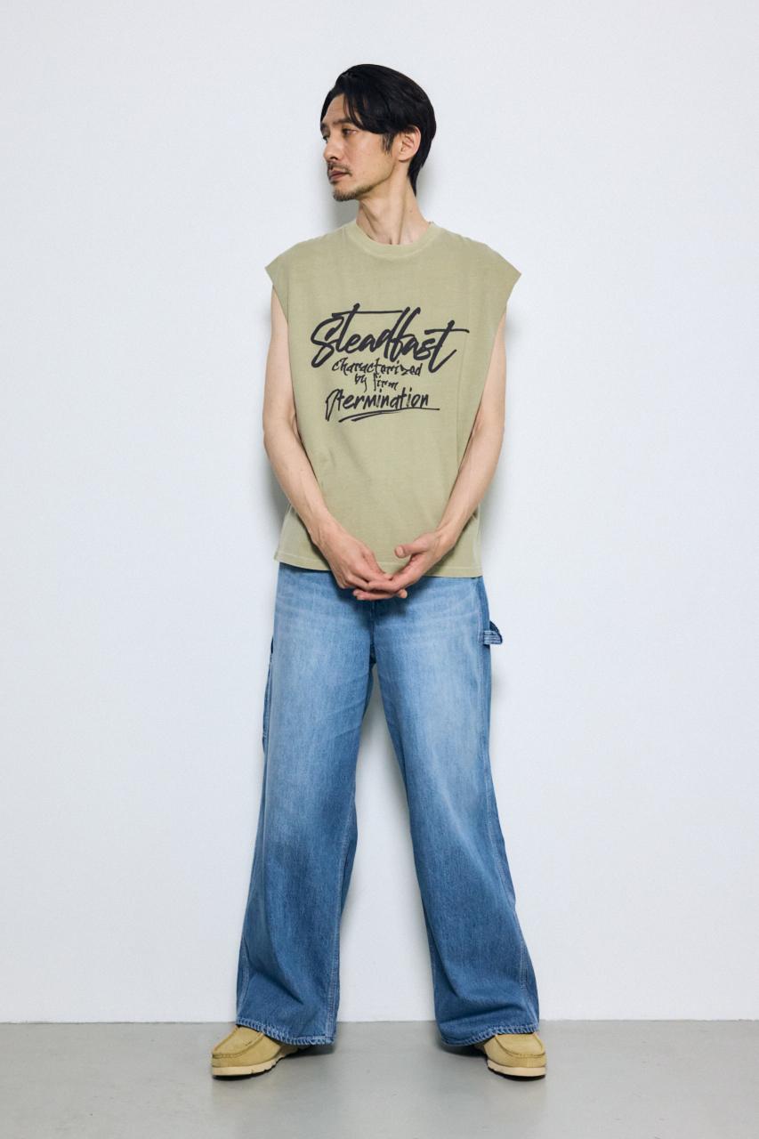 ピグメント加工によるムラ感と、白っぽいアタリが特徴のノースリーブトップスです。