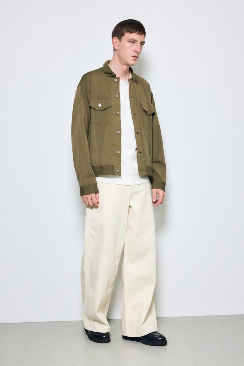 ワークジャケットを羽織ると、より統一感のある着こなしが完成します。