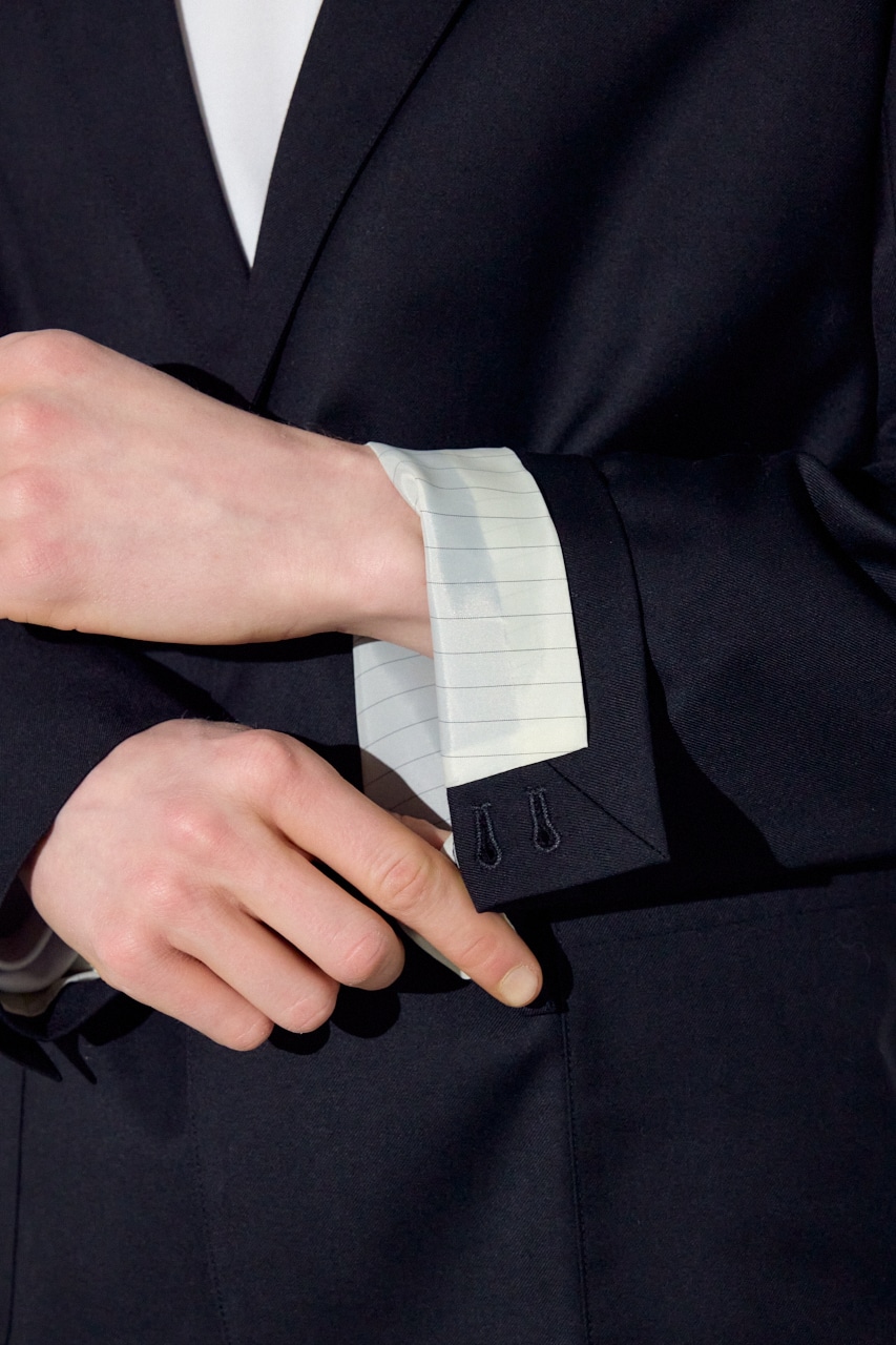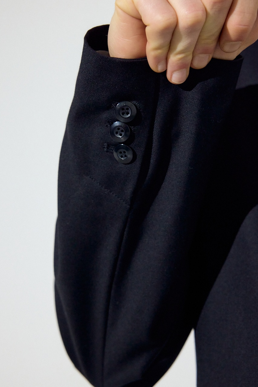 表地のTRツイルは、上品な光沢感と柔らかさ、シワになりにくさ、ストレッチ性が特徴。