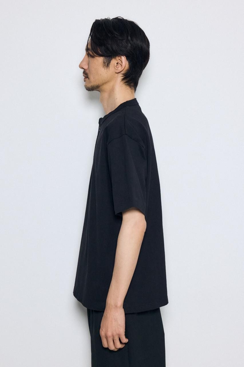 ヘンリーネックの前立てがアクセントになる、ワーク感のあるハングTEE。