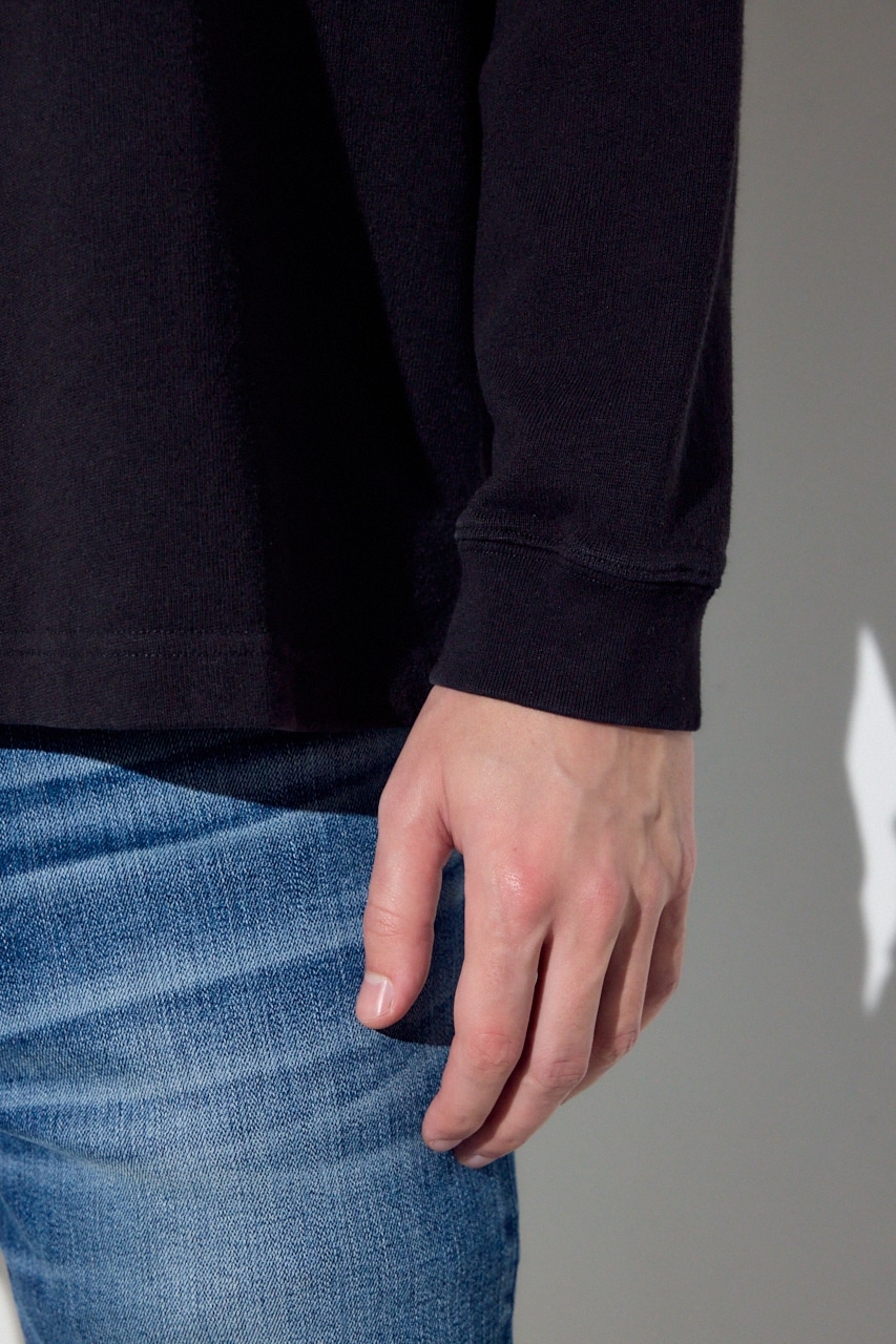 ヘビーウェイトコットンによるしっかりとしたシンプルな長袖ロゴプリントTシャツ。
