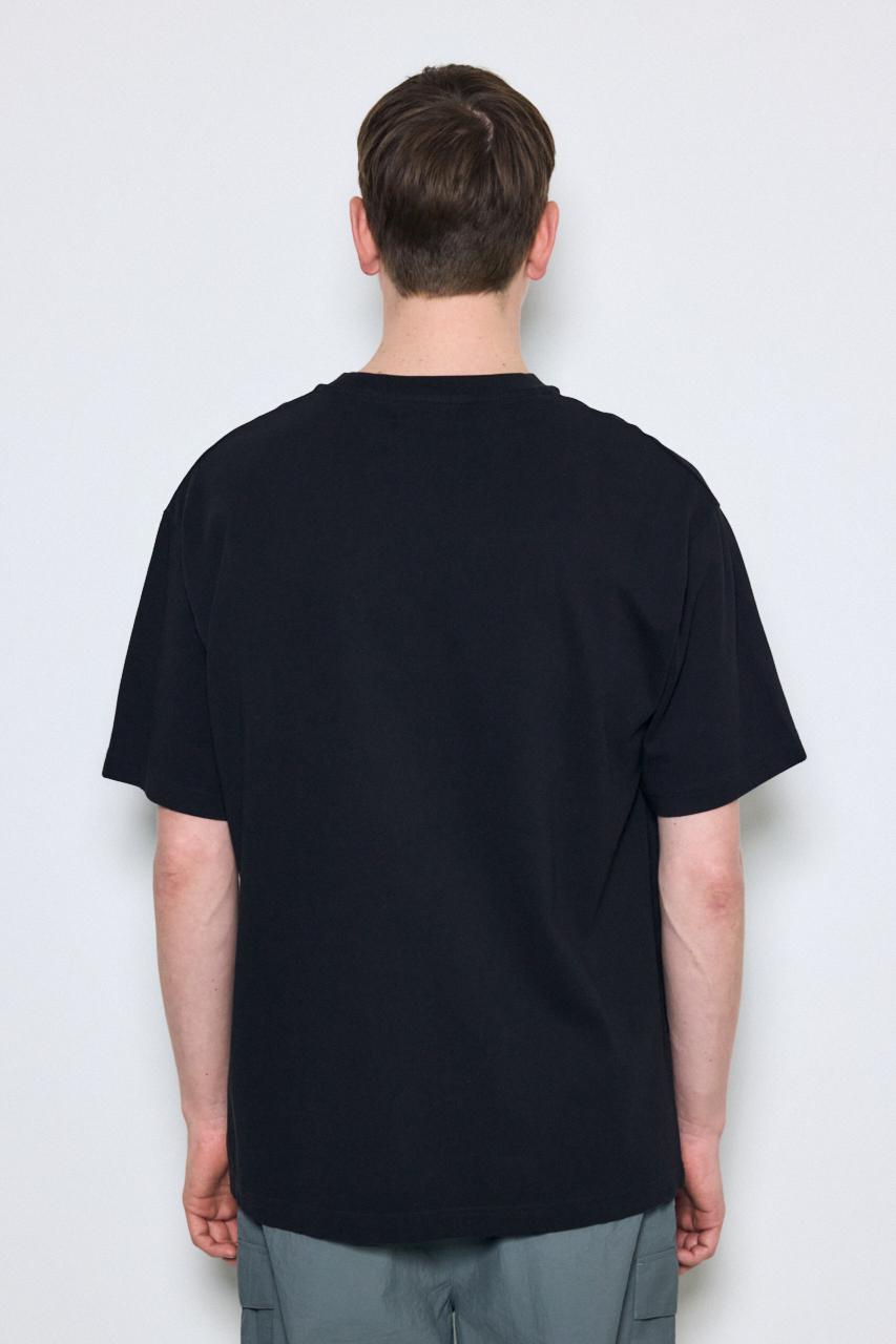 引きそろえ天竺を使用したロゴプリント半袖Tシャツ。