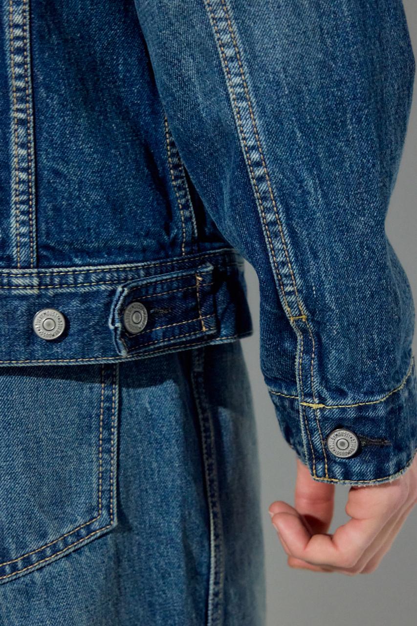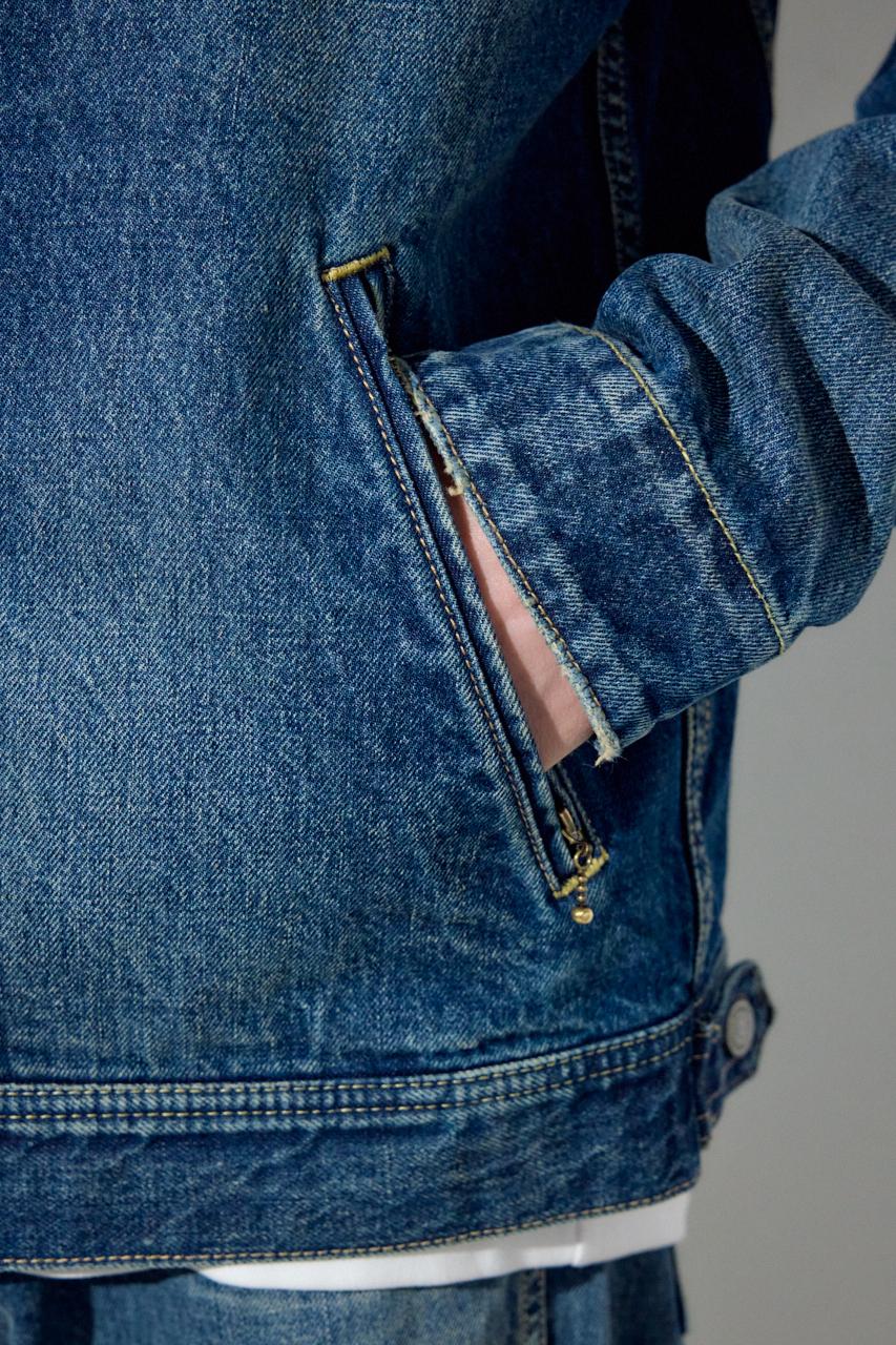 同素材のストレートデニム(251JSR11-0921 AZUL DENIMカラーストレート)とセットアップで統一感あるデニムルックに。