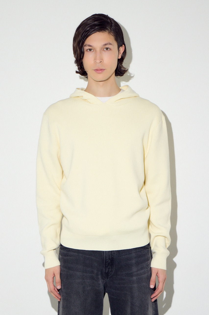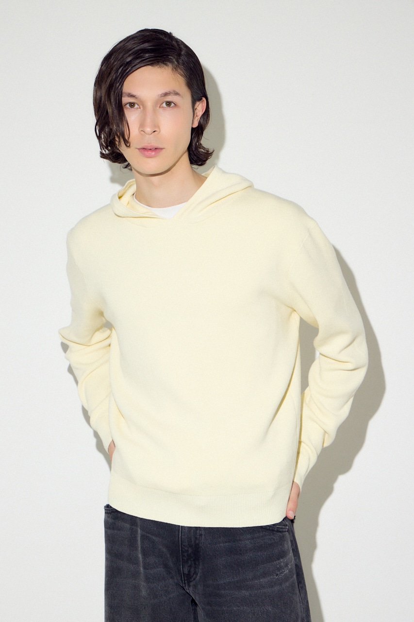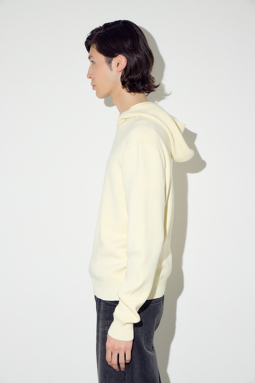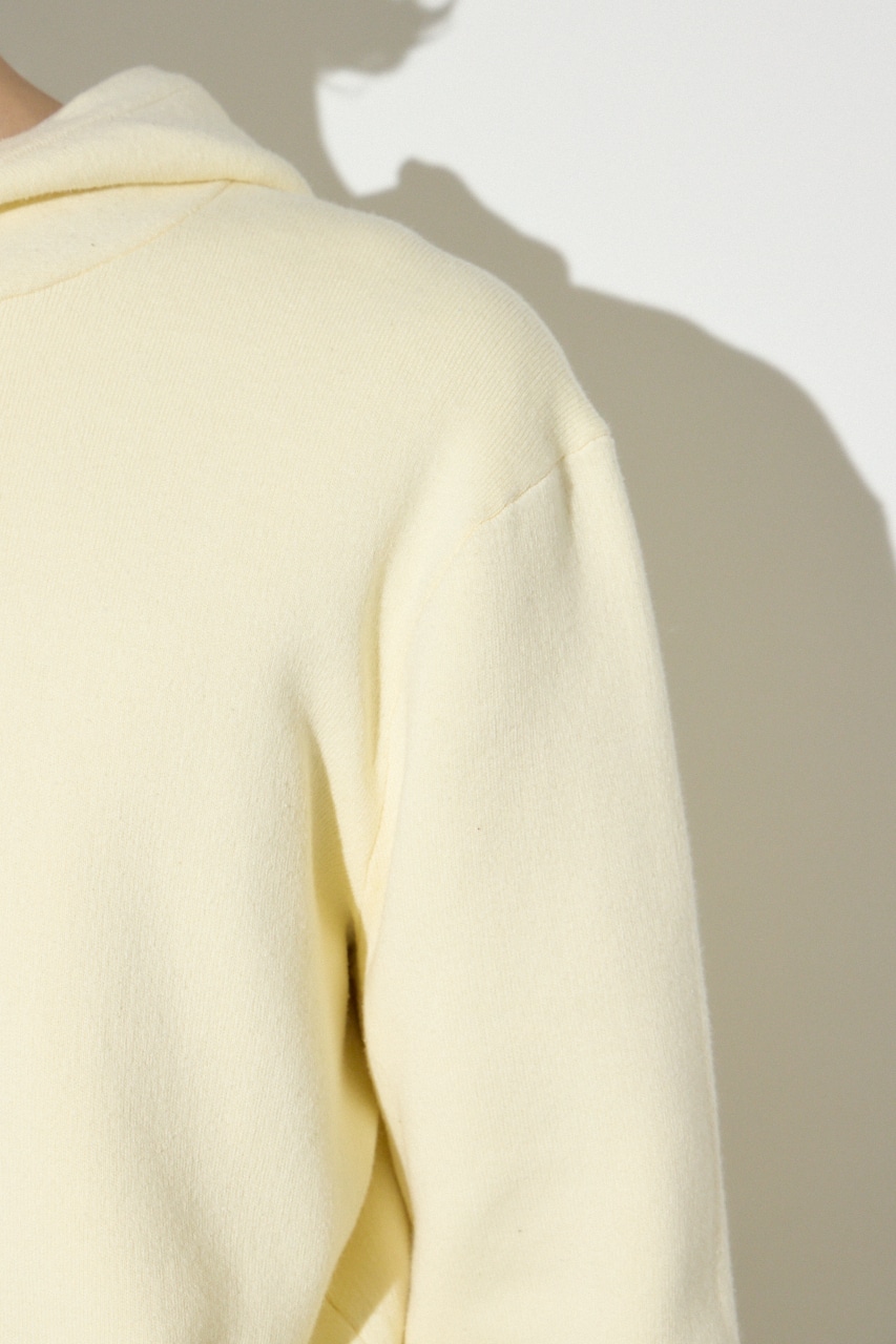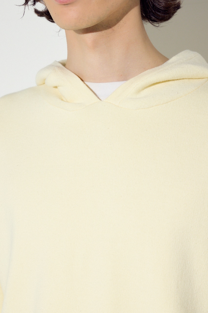 20/2コットンのやや太めの細番手糸を使用したハイゲージニットフーディーです。