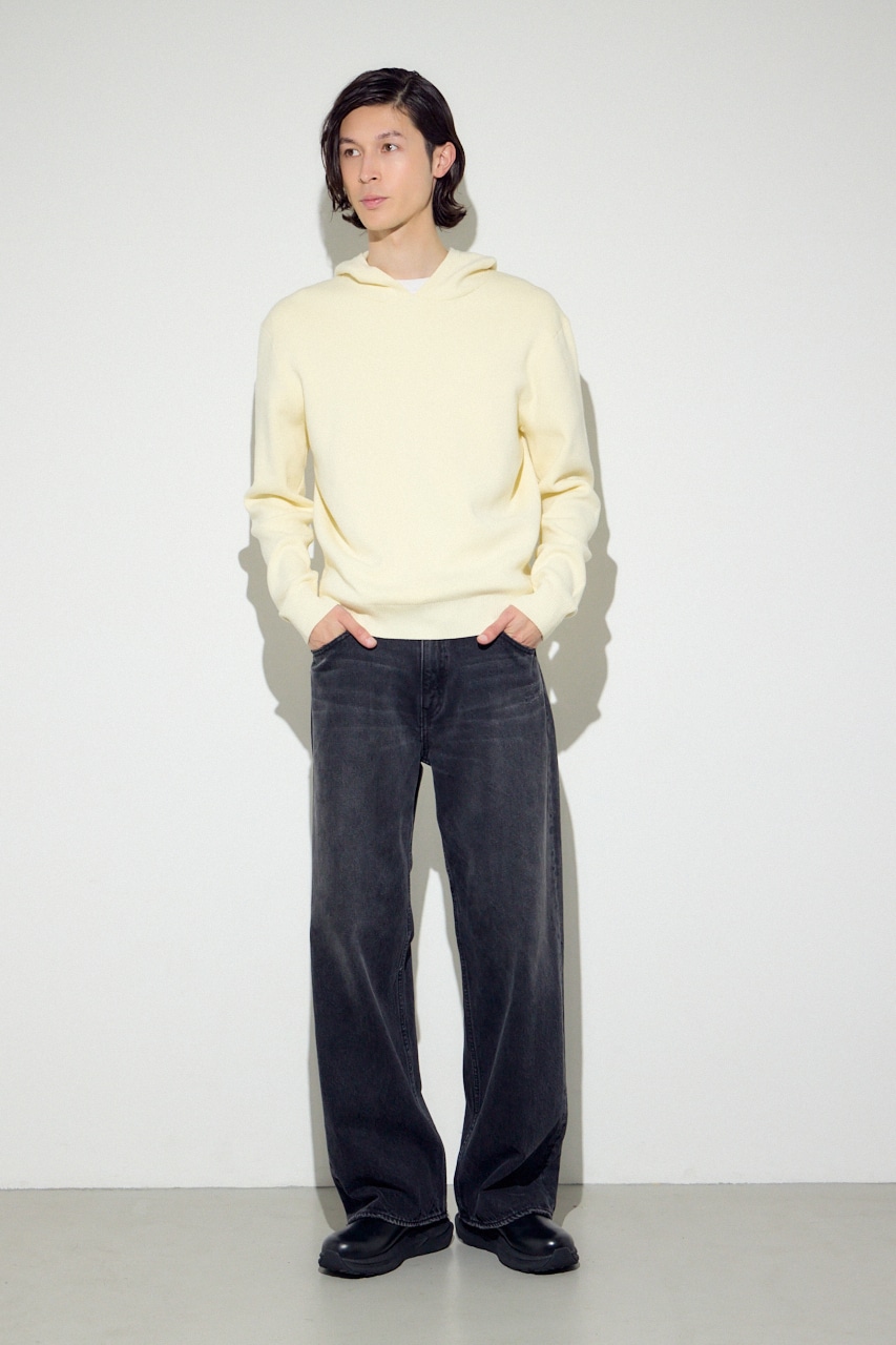 同素材のニットパンツ(251JSR71-0691 ハイゲージニットパンツ)とセットアップで統一感のあるリラックスコーディネートに。