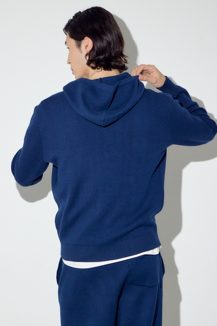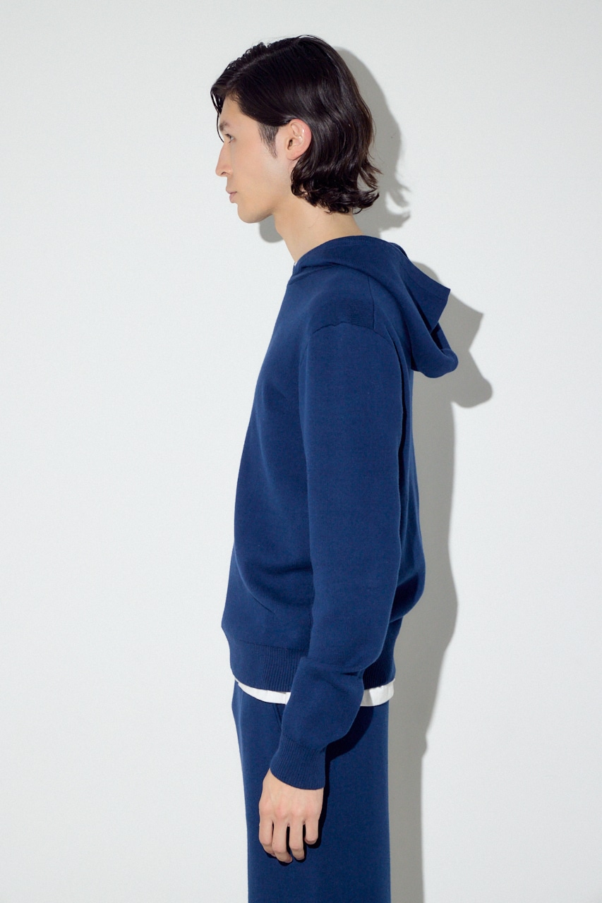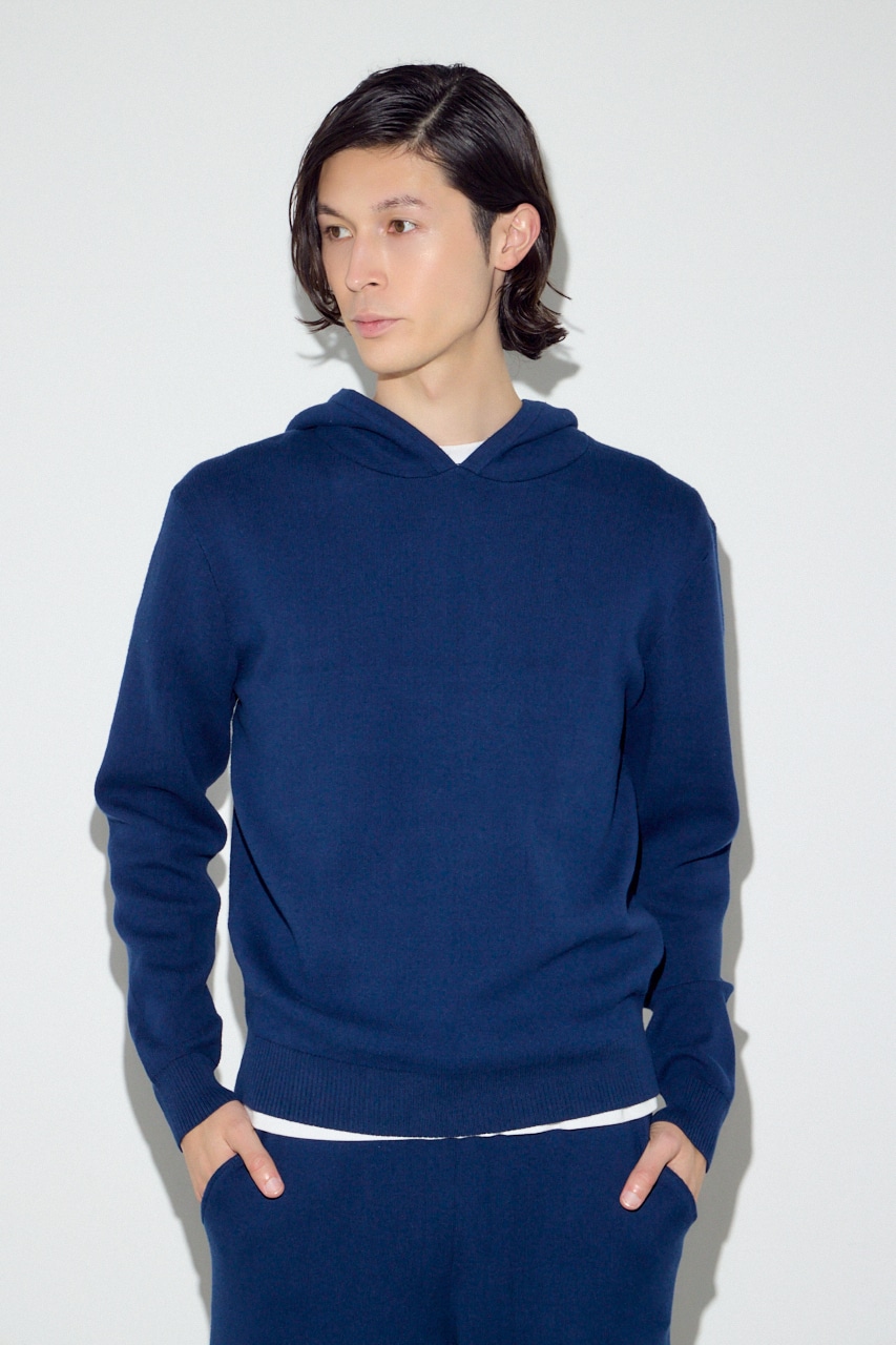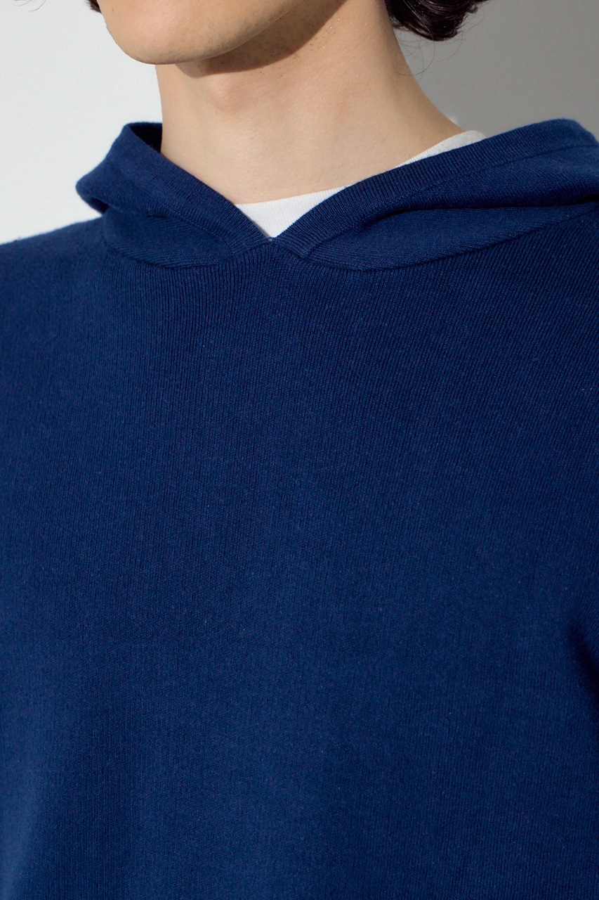20/2コットンのやや太めの細番手糸を使用したハイゲージニットフーディーです。