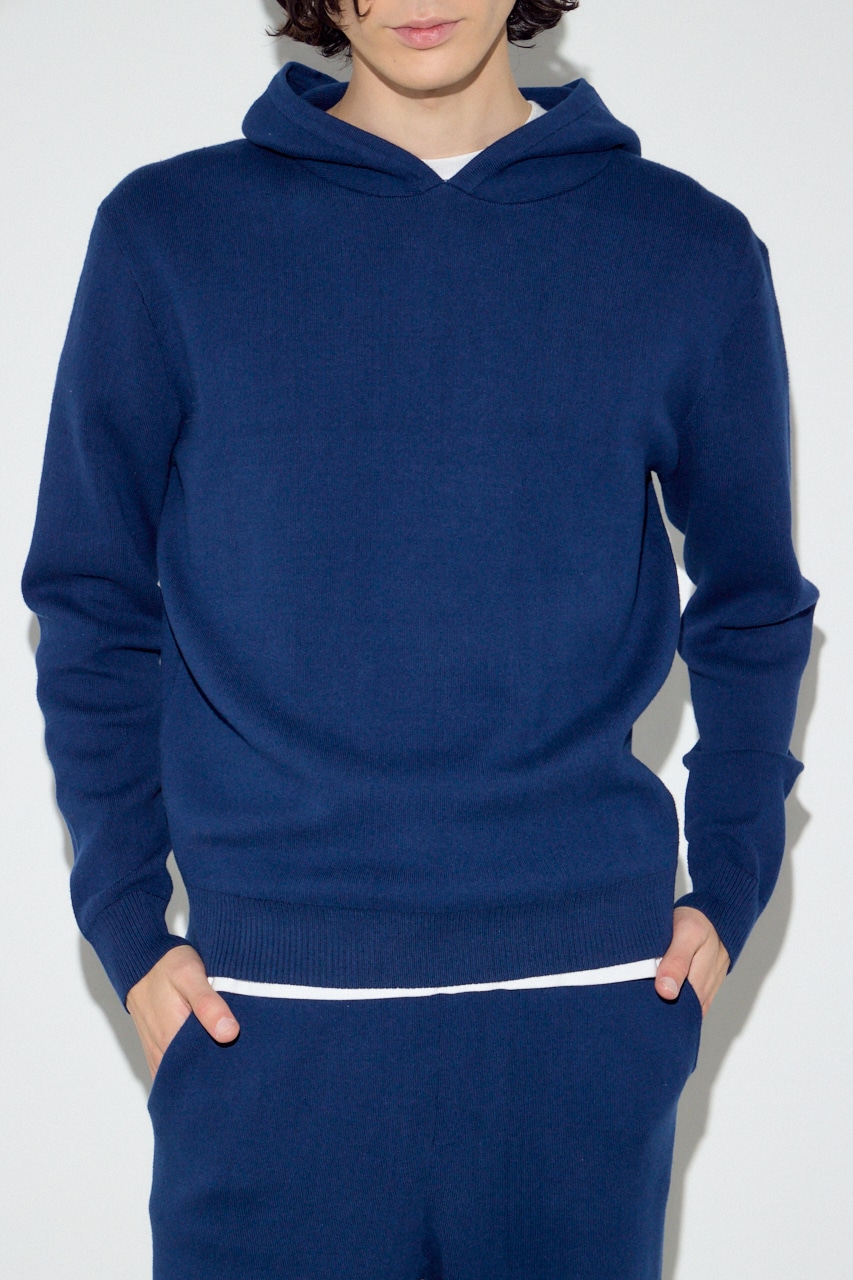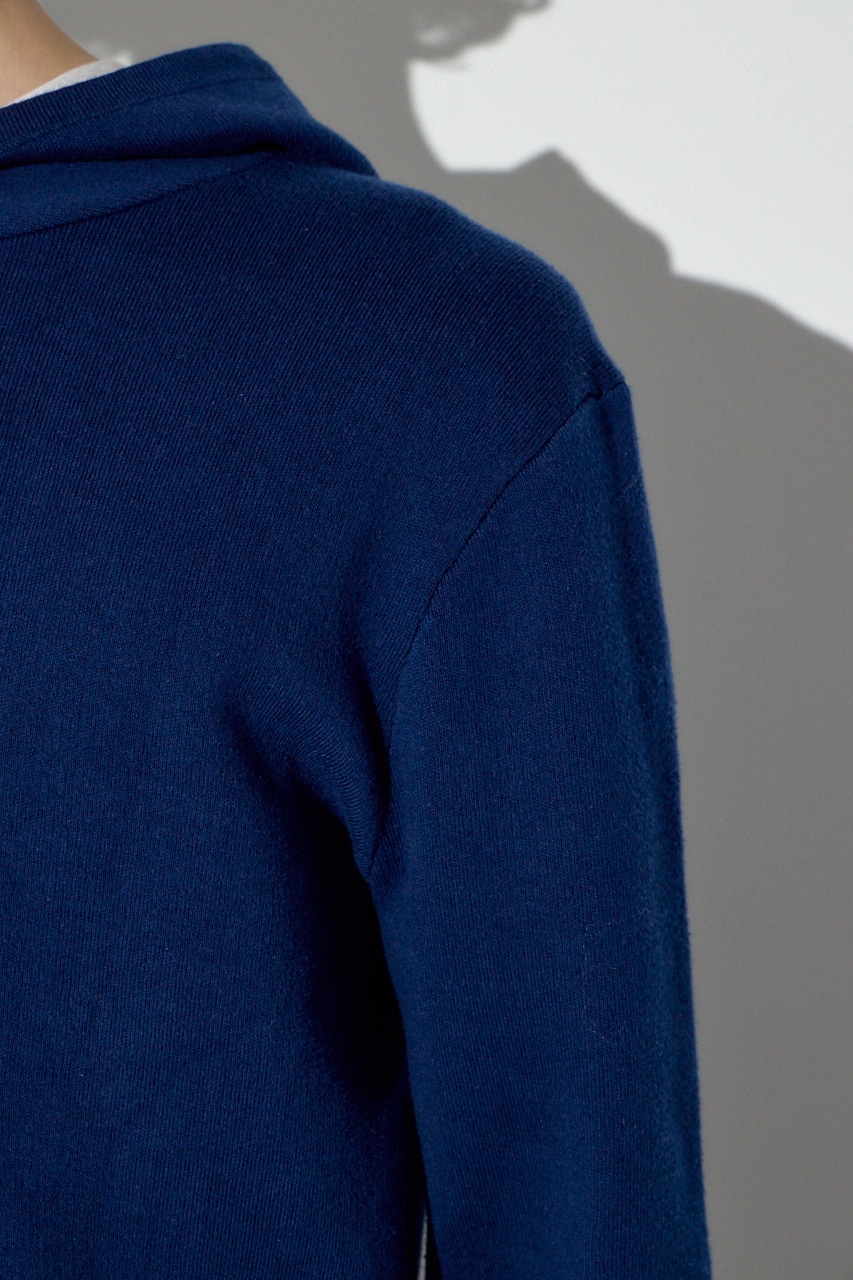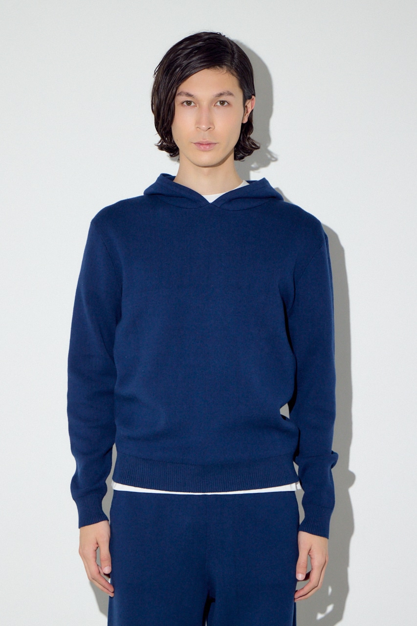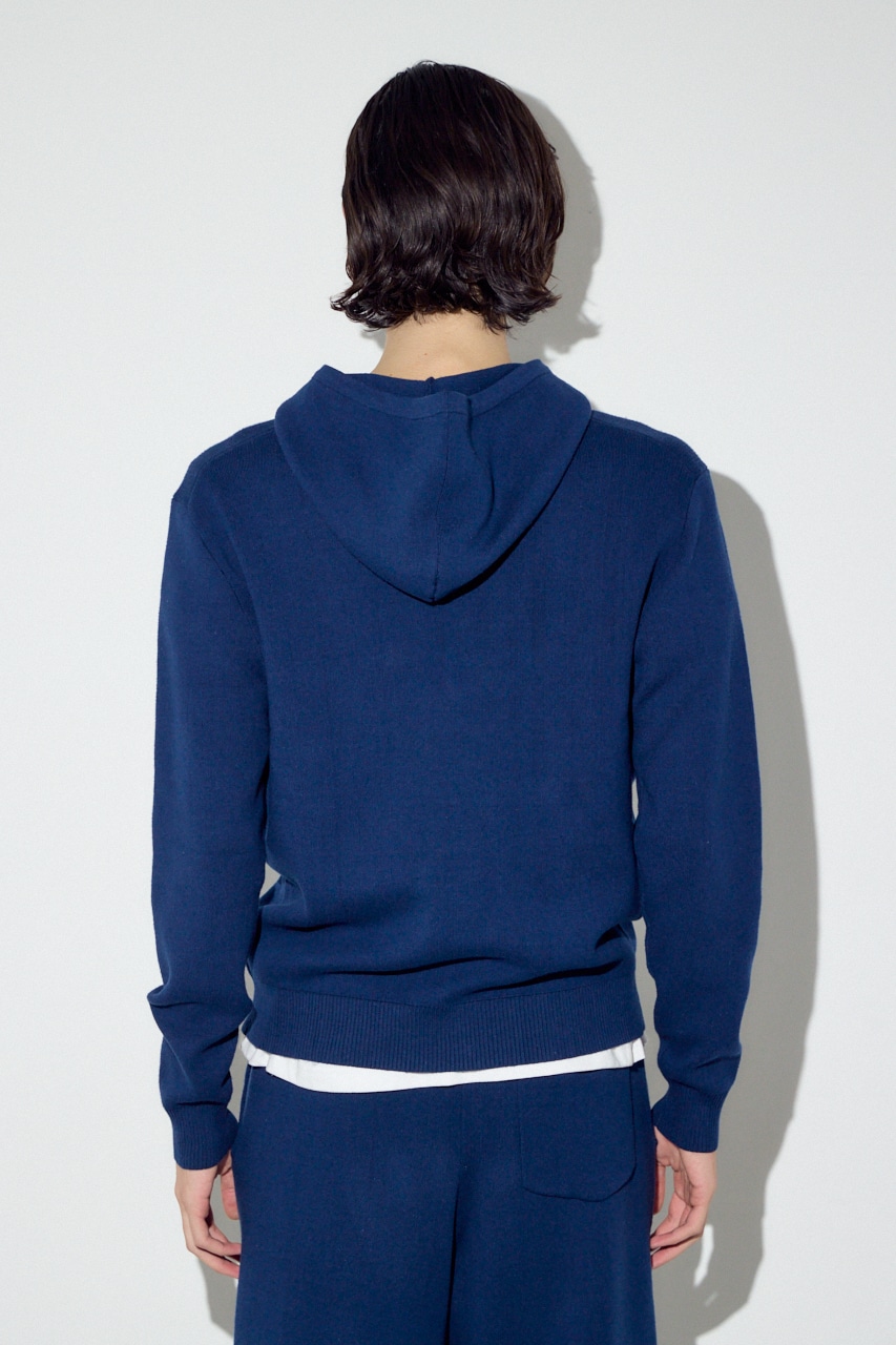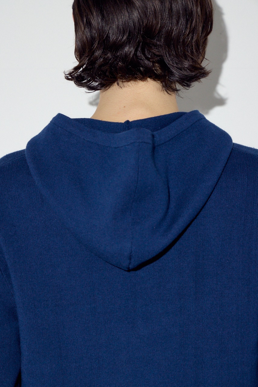 20/2コットンのやや太めの細番手糸を使用したハイゲージニットフーディーです。