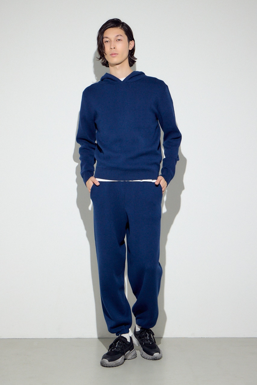同素材のニットパンツ(251JSR71-0691 ハイゲージニットパンツ)とセットアップで統一感のあるリラックスコーディネートに。