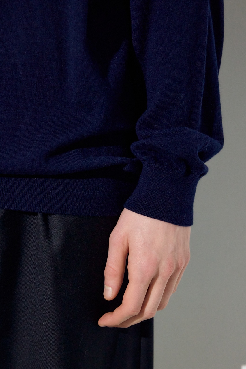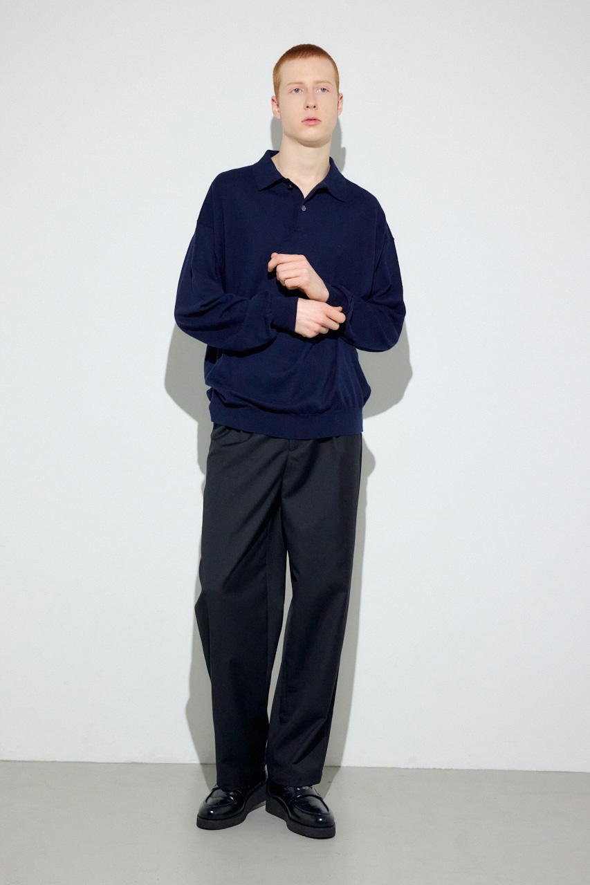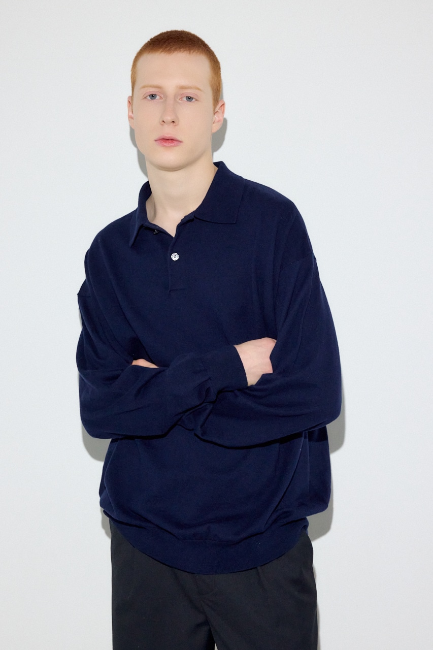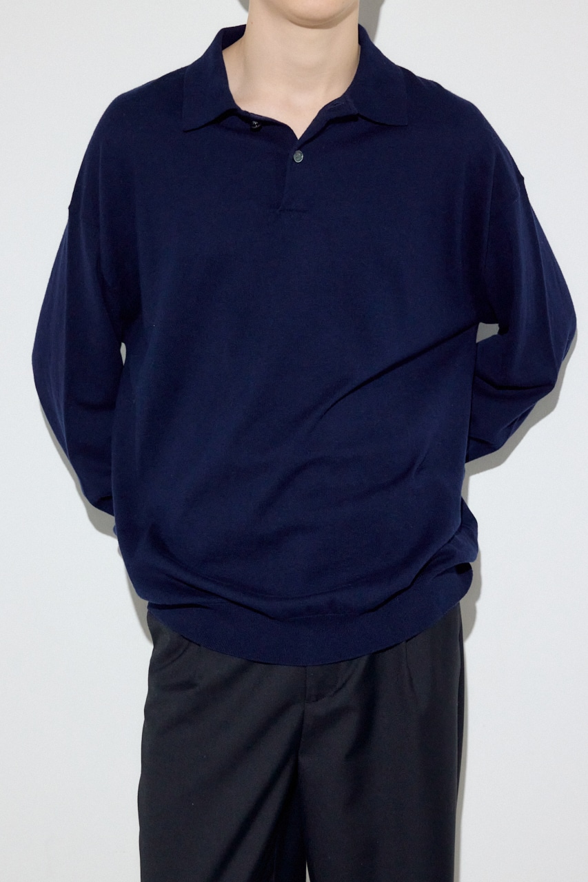 細番手のコットン×カシミヤ混でハイゲージに編み上げたことで、ニットの上質感とシャープなポロ襟の佇まいを両立。