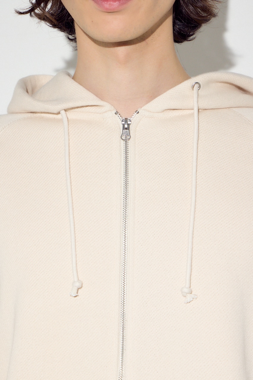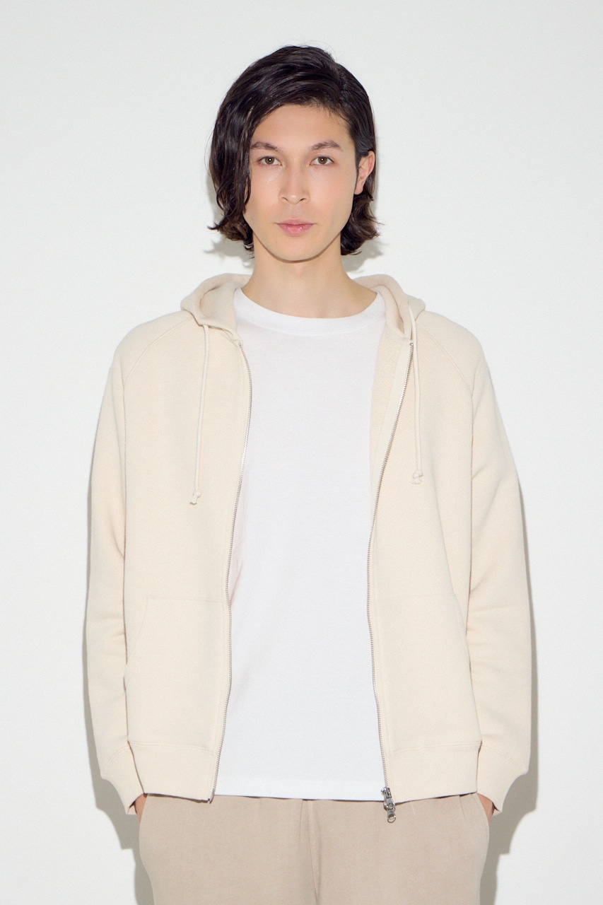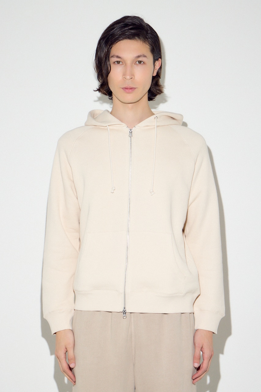 太めのループが生むふんわりとした裏毛感が特徴のジップアップパーカーです。
