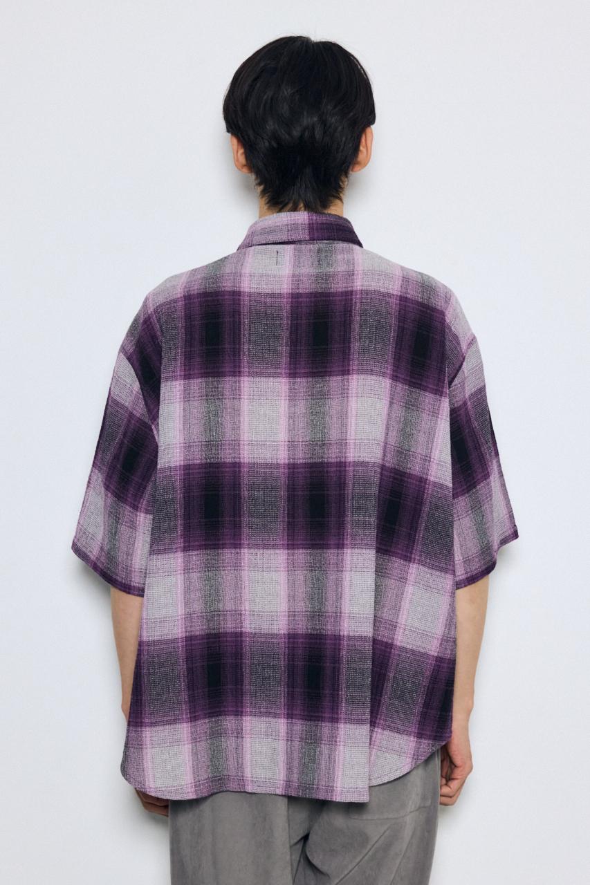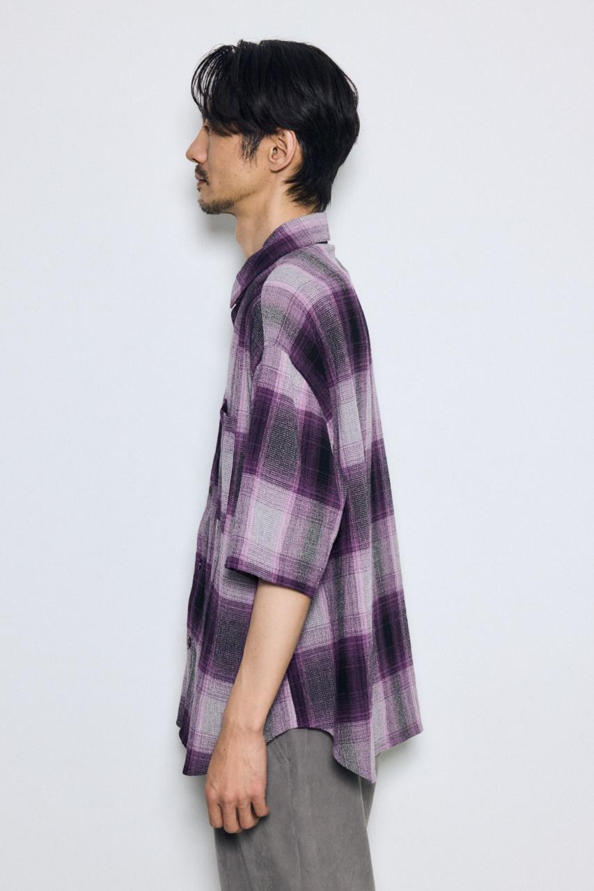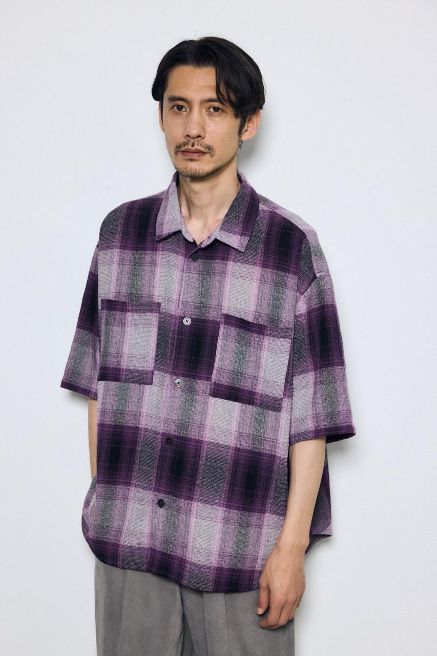大判のオンブレチェックとビッグシルエットで、1枚でも存在感のあるシャツです。