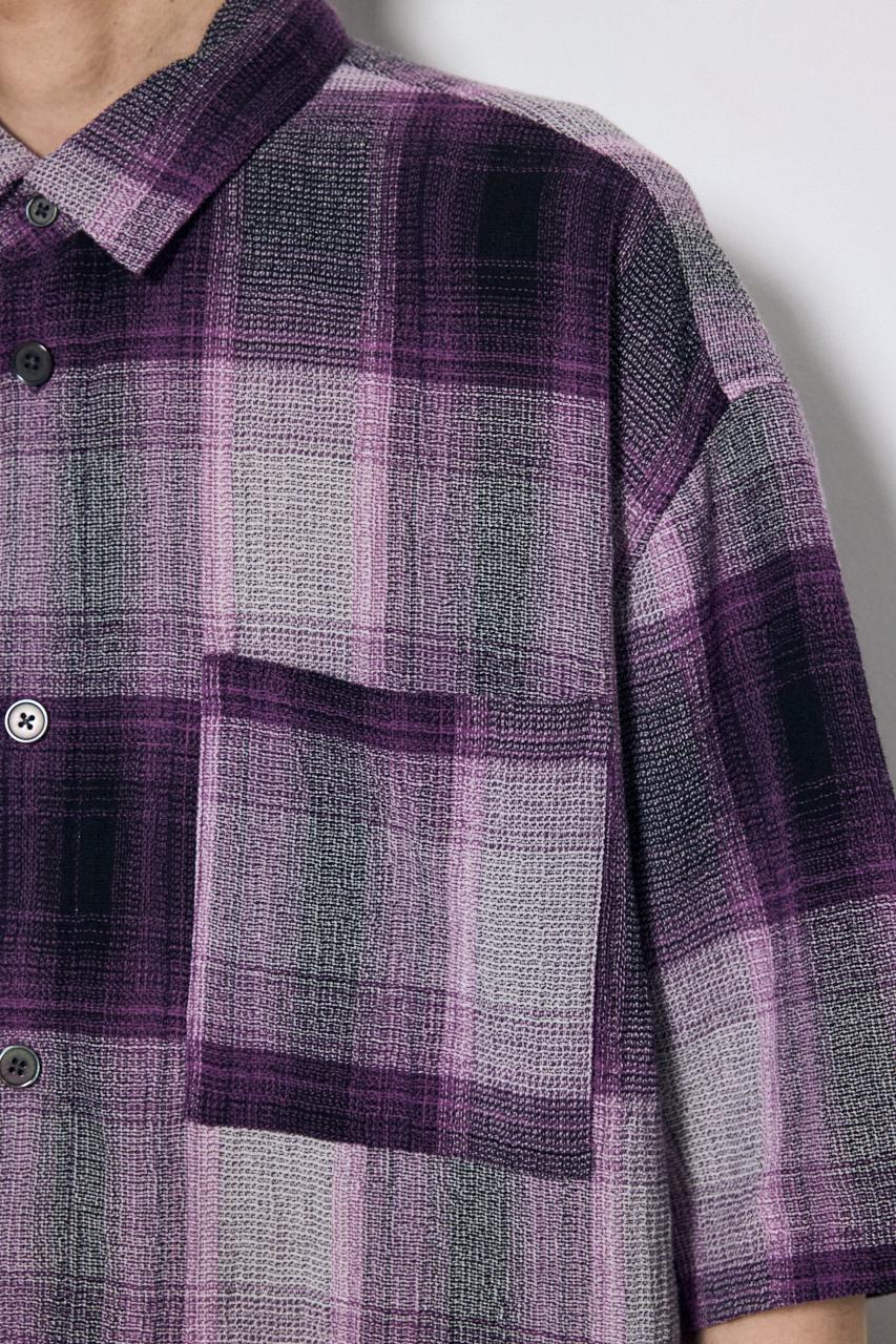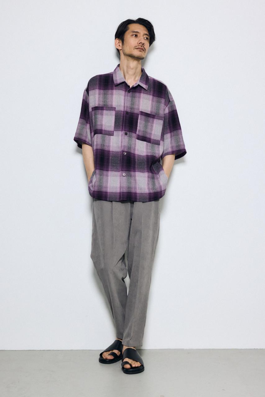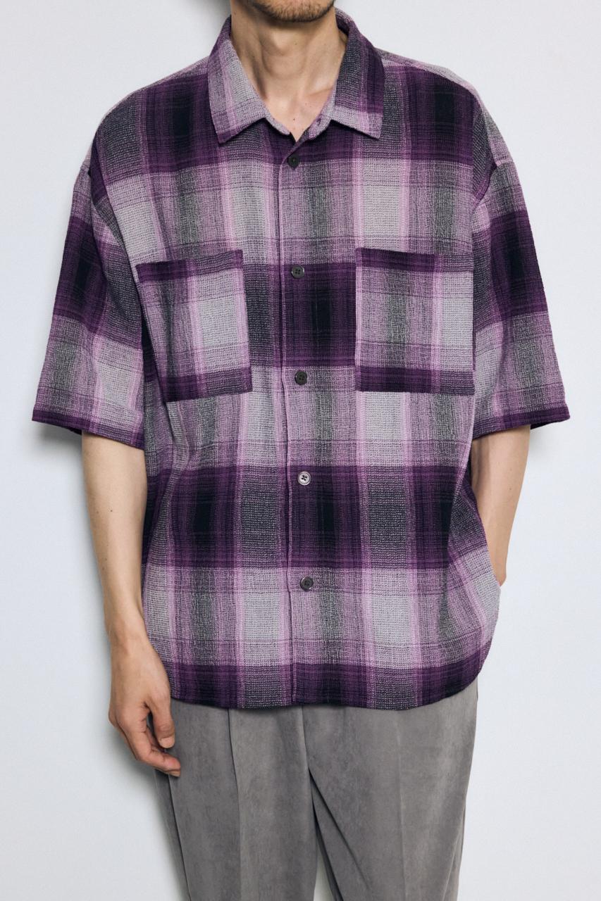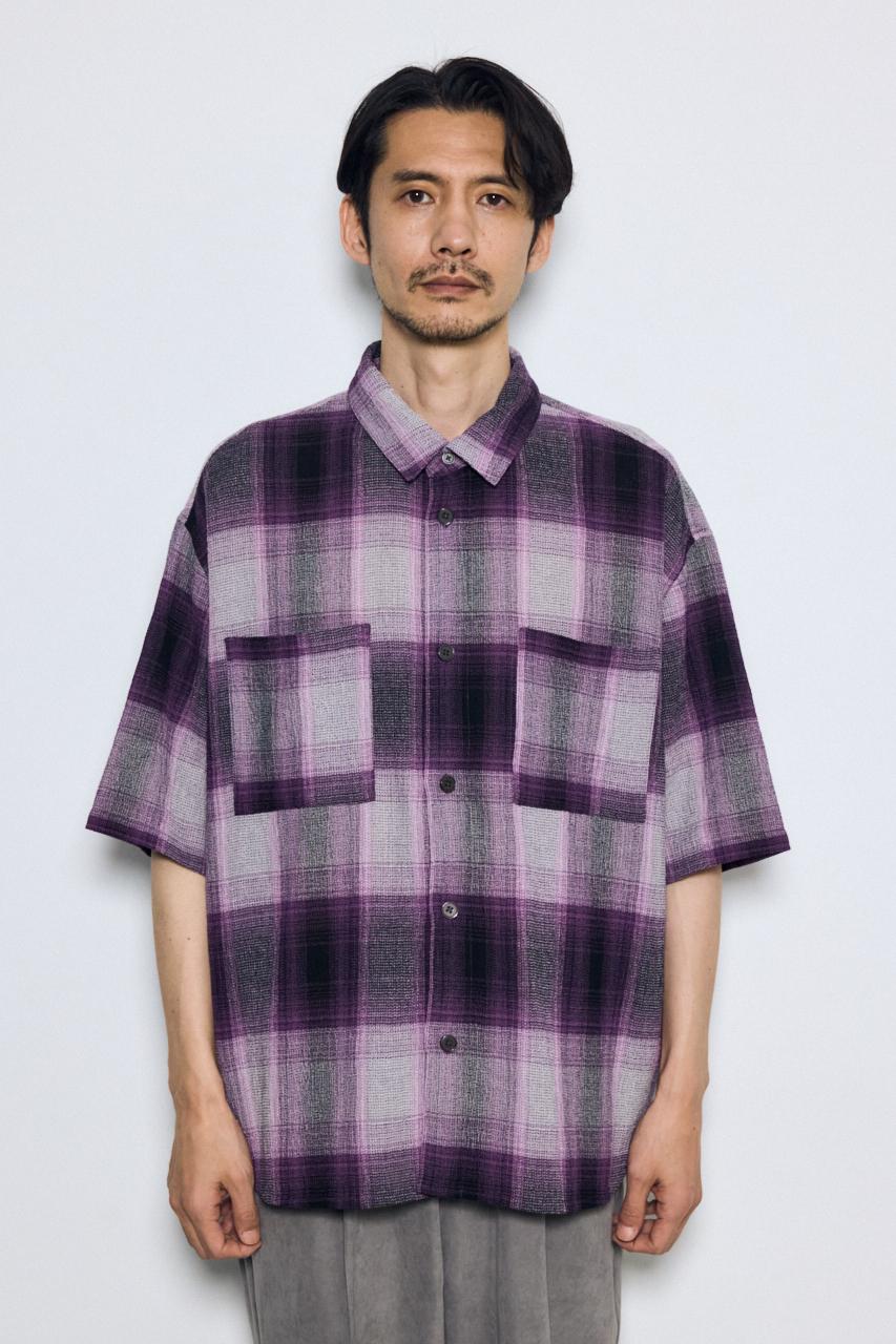 大判のオンブレチェックとビッグシルエットで、1枚でも存在感のあるシャツです。
