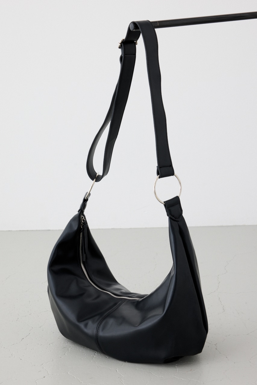 合成皮革のほどよい光沢感が上品さを演出し、BLK・GRYのカラー展開でコーディネートしやすい仕上がりに。