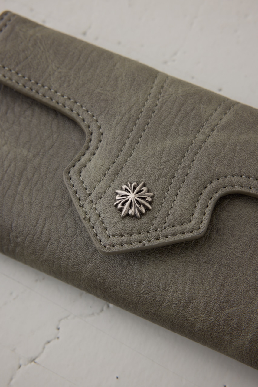 合成皮革仕上げでコンチョ付きのクラシカルな装飾がポイント。