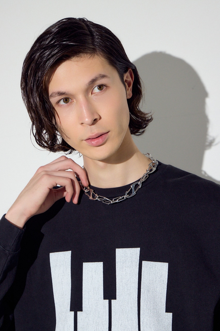 キャップやリングと合わせて、ストリート感のあるコーディネートにも。