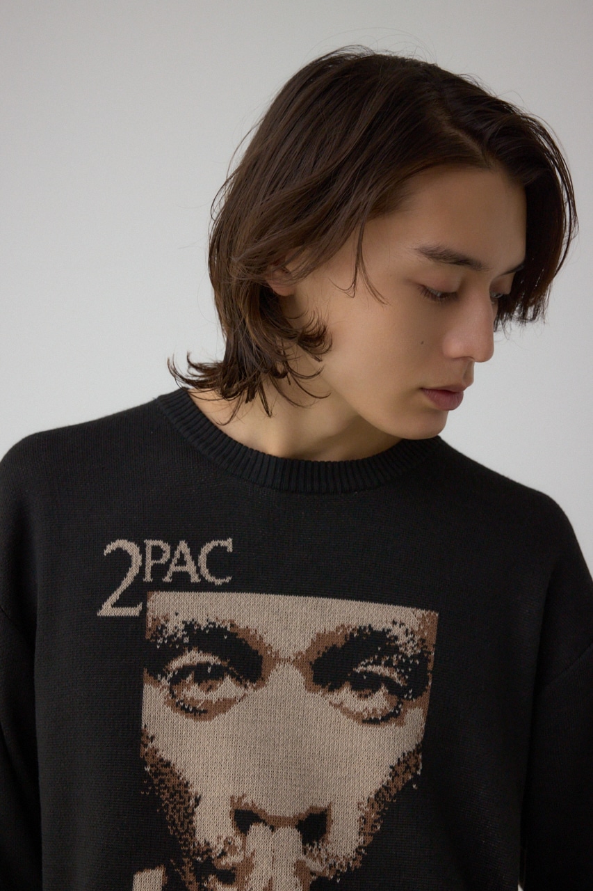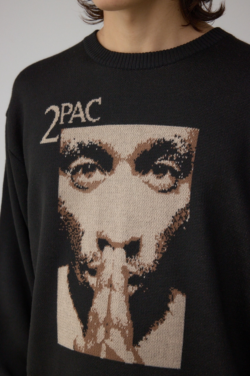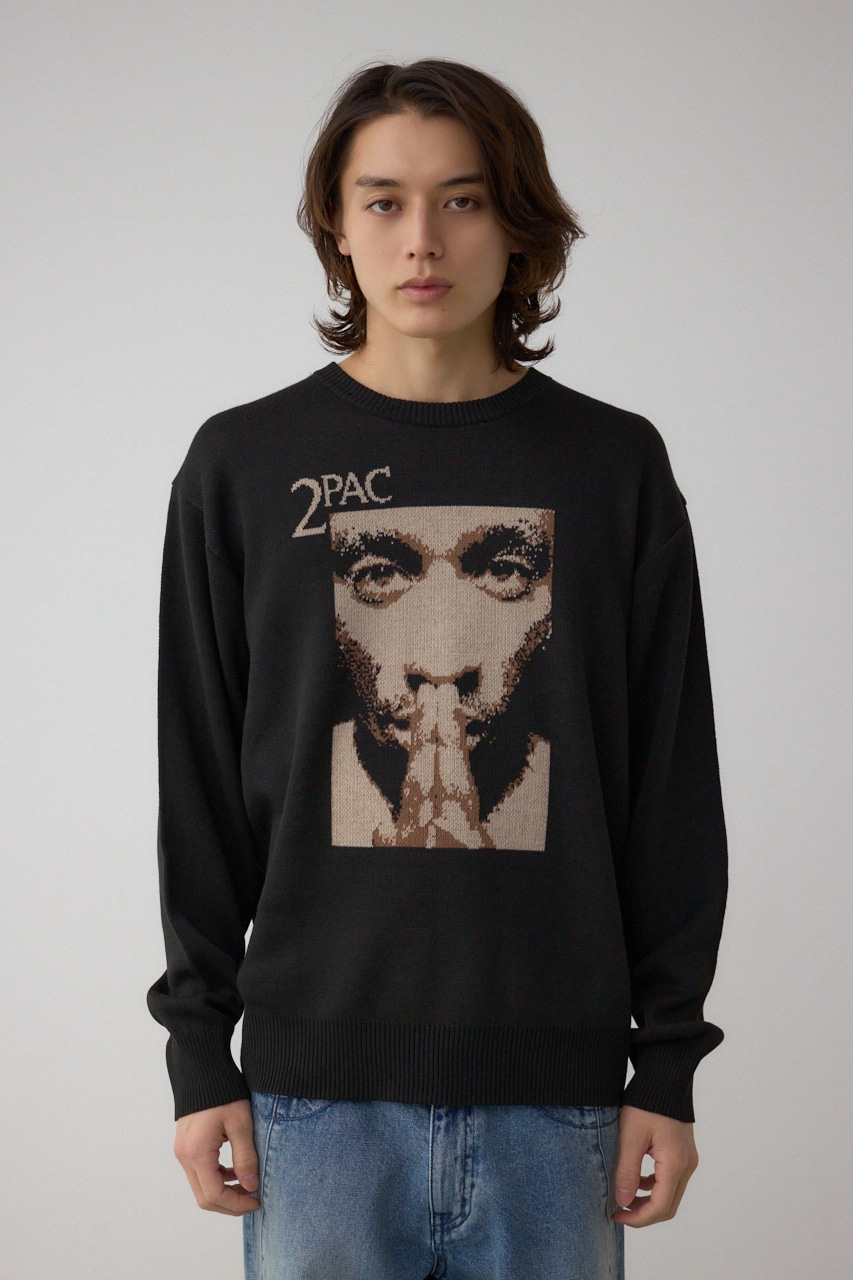 ヒップホップのアイコンである2PAC、Public Enemy、De La Soulをジャガードで表現したグラフィックニットです。