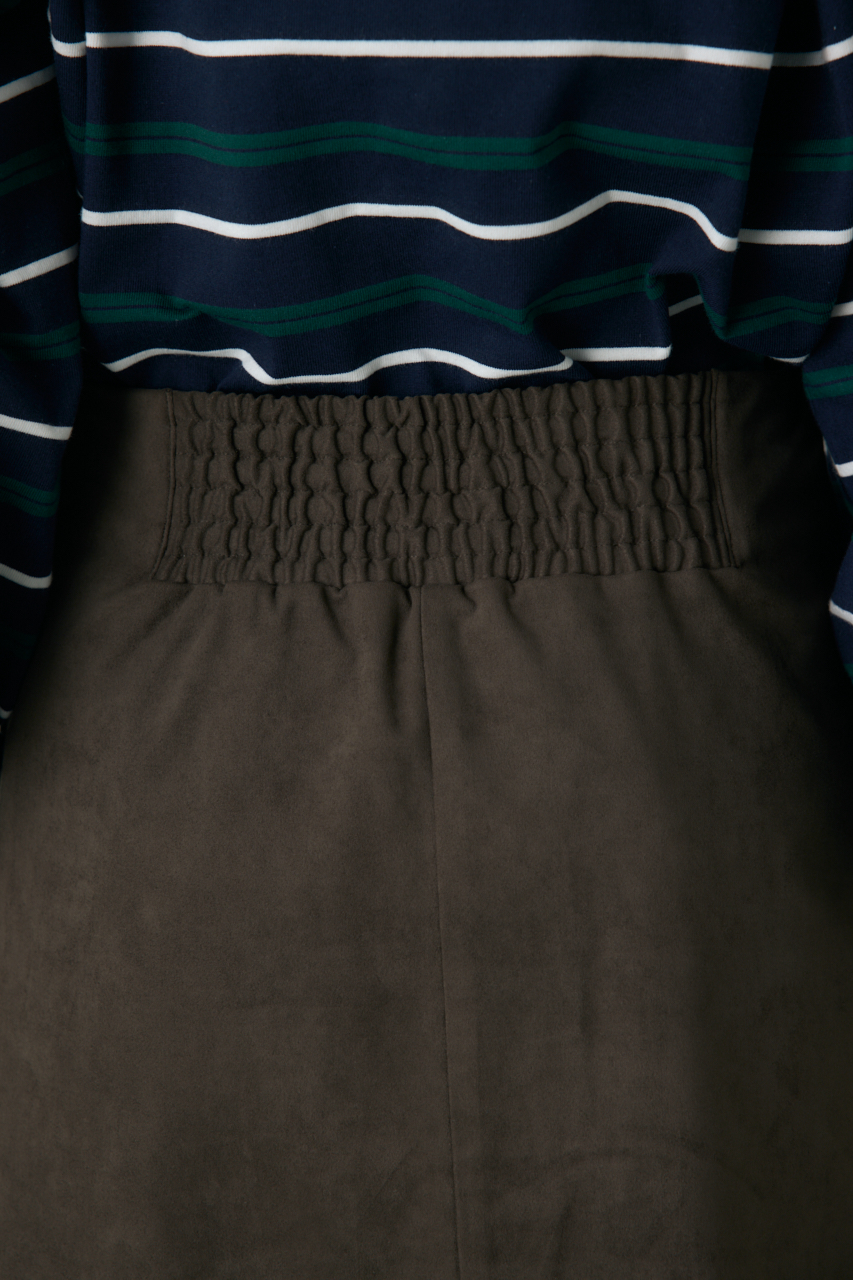 トレンドのスエード素材を使用した、シンプルで使いやすいミニスカート。