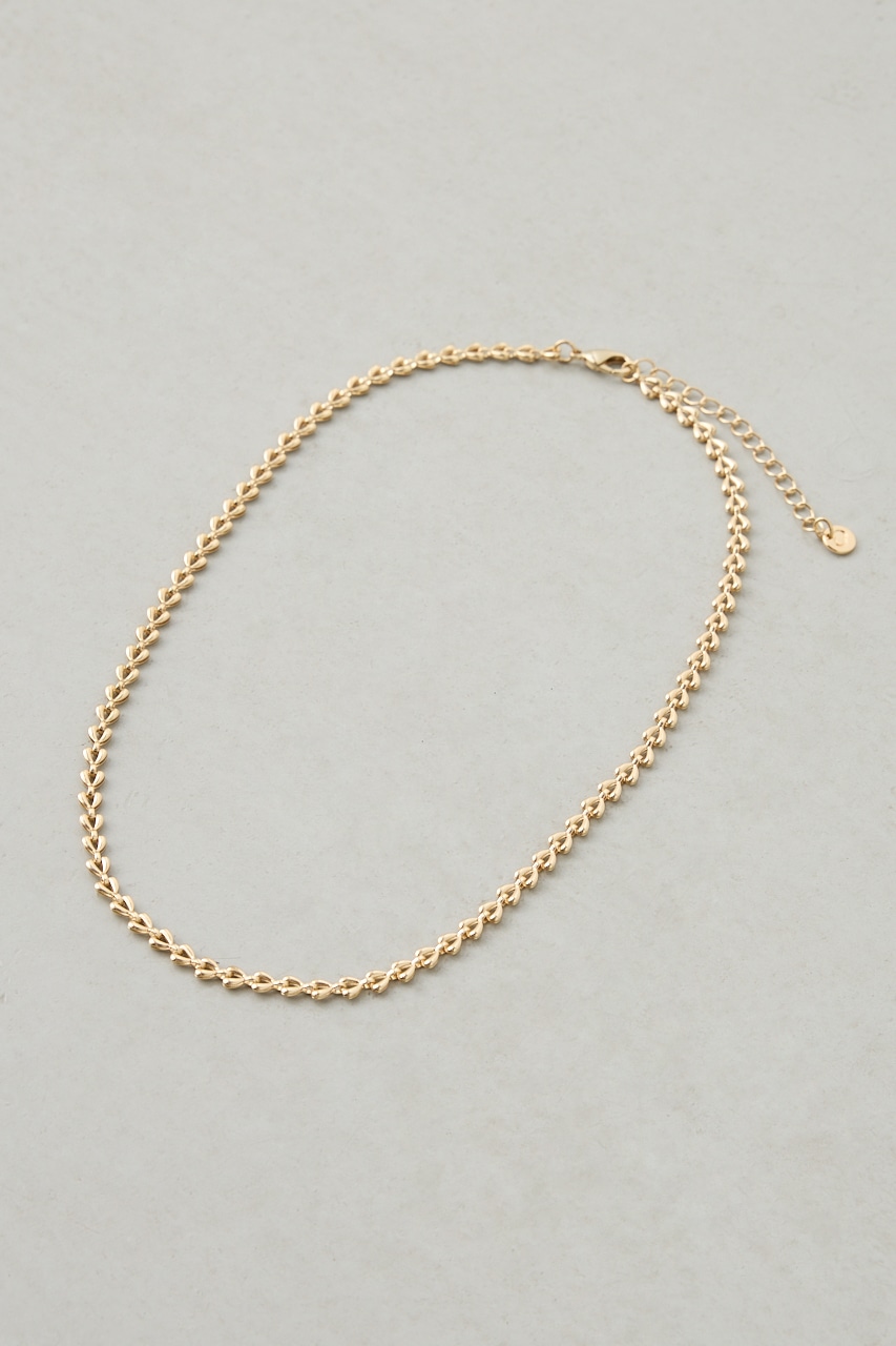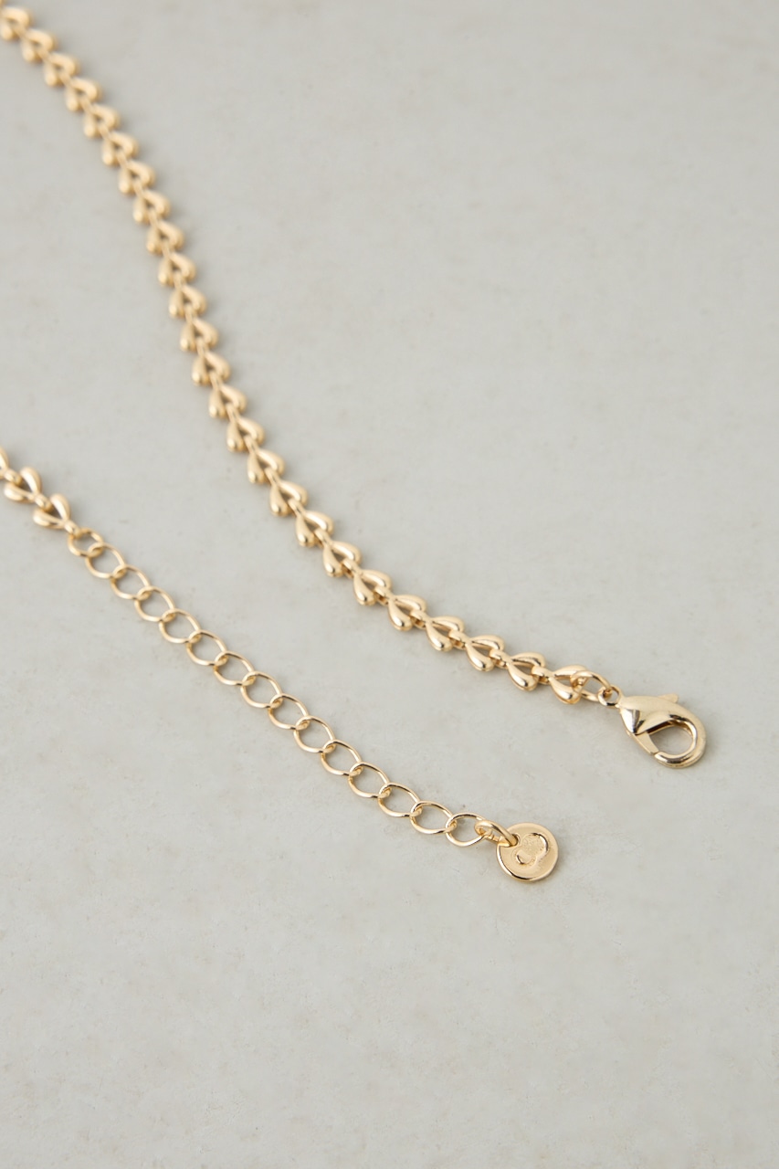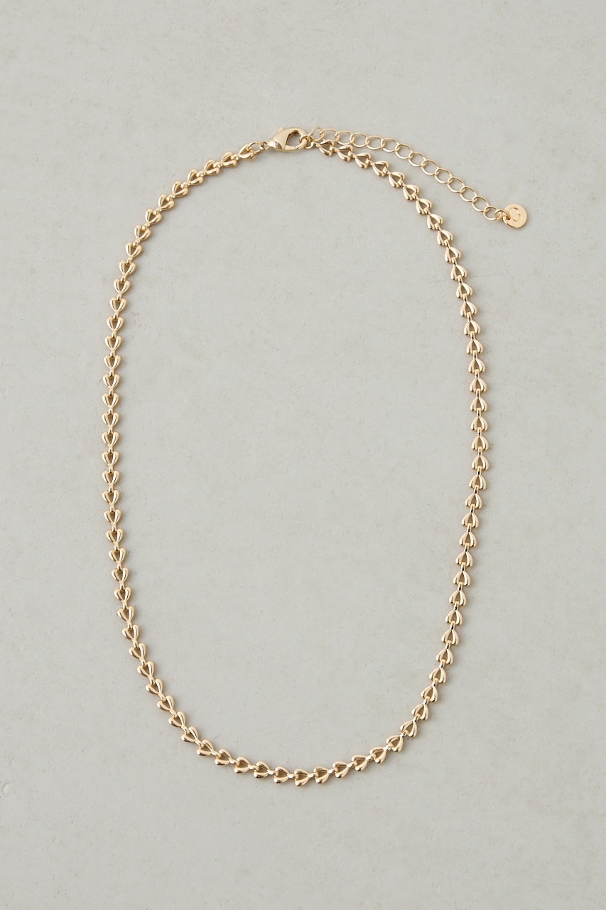 一見シンプルなネックレスは、よく見るとチェーンの一つ一つがハート型になっているのがポイントです。