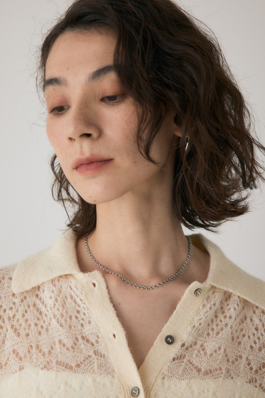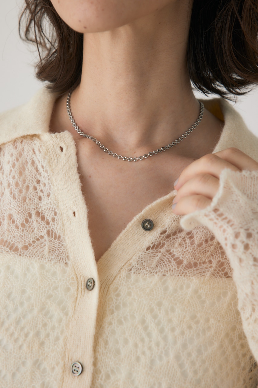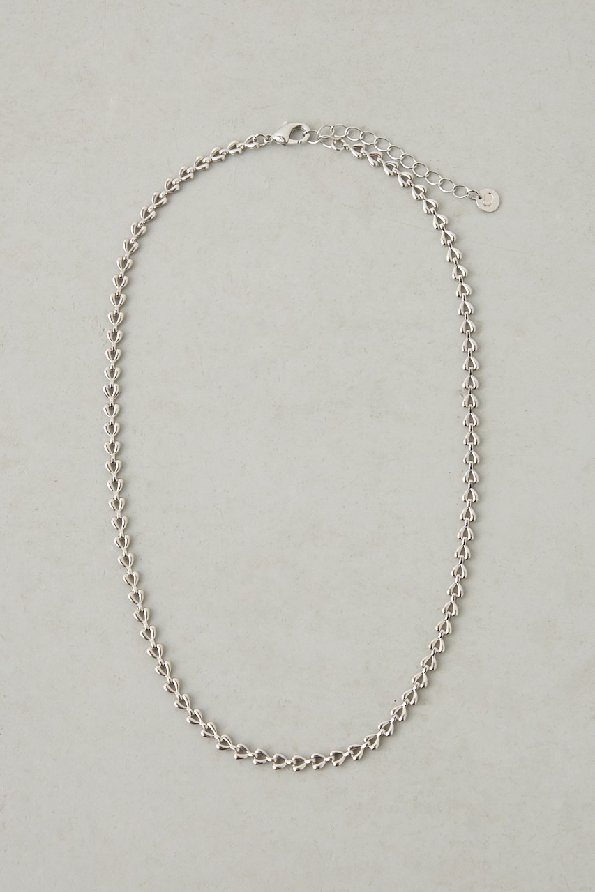 一見シンプルなネックレスは、よく見るとチェーンの一つ一つがハート型になっているのがポイントです。
