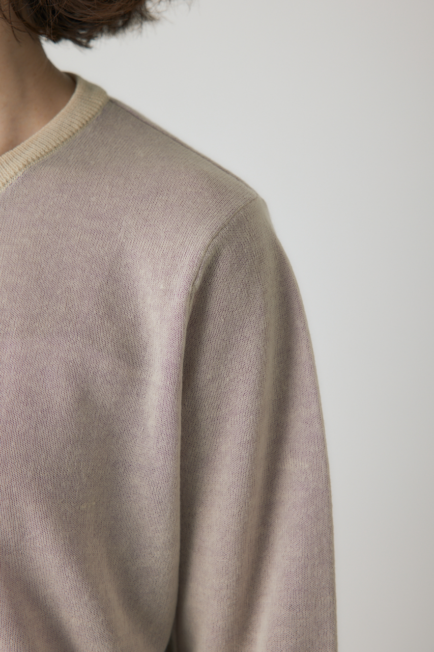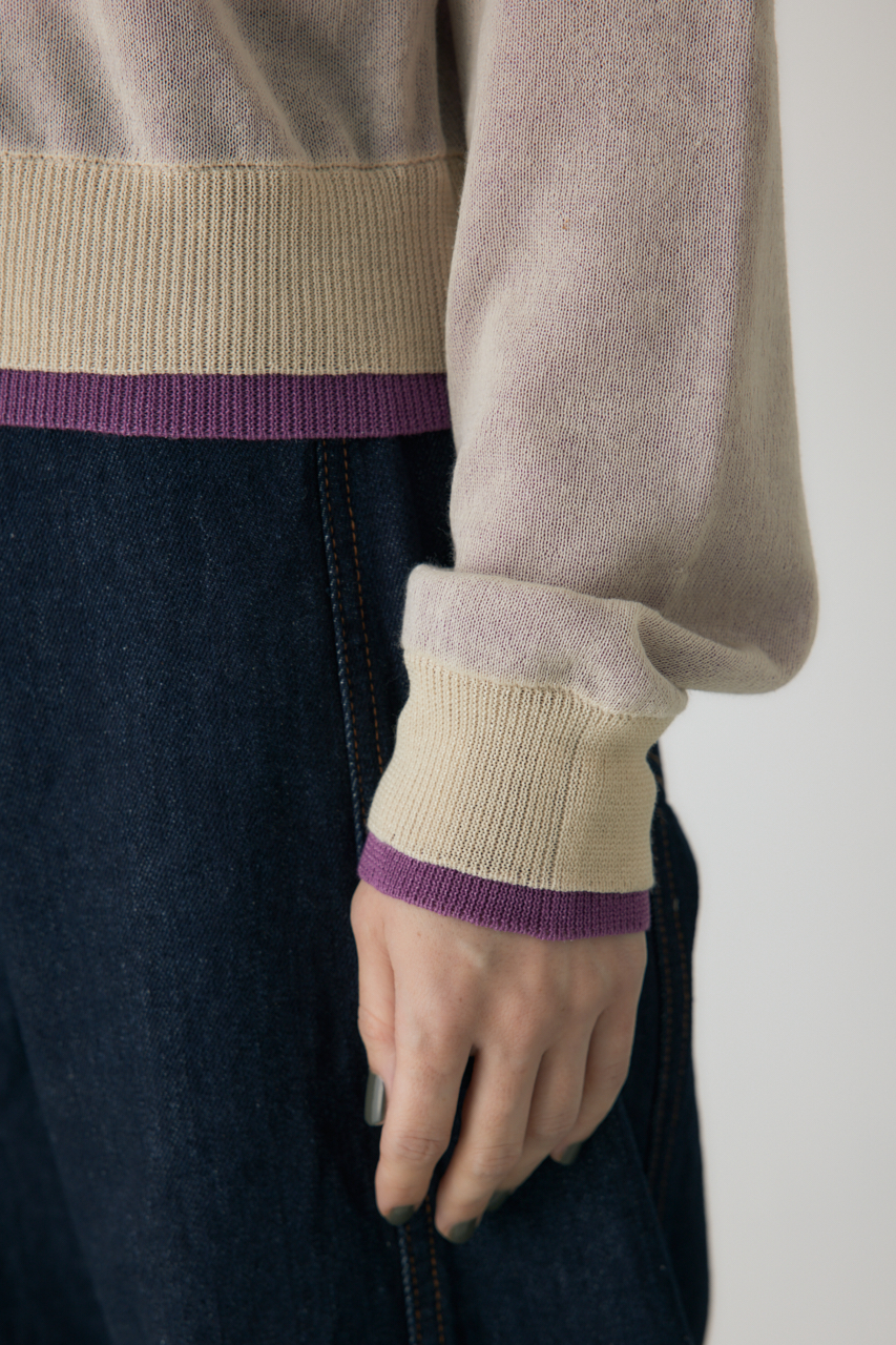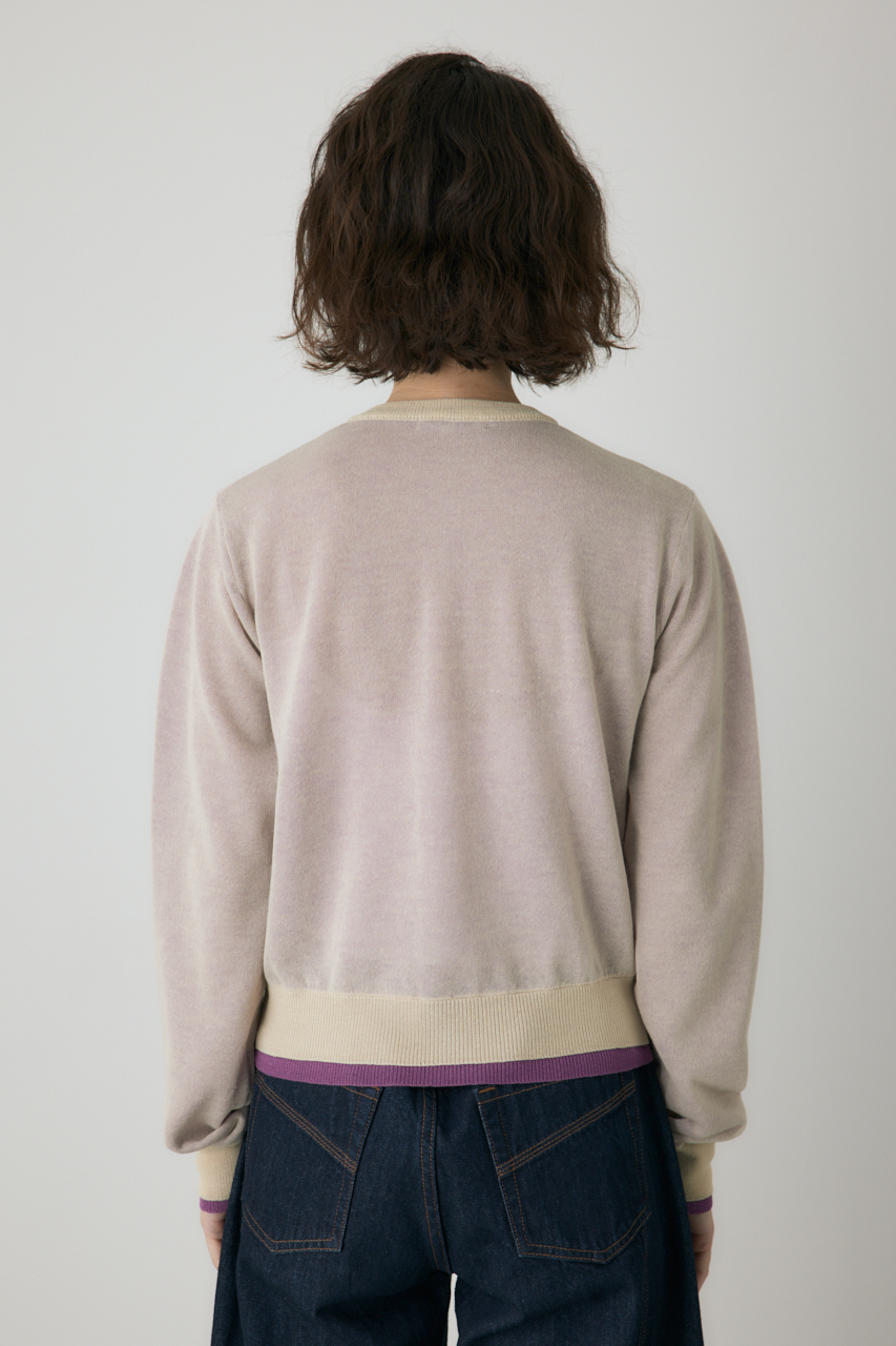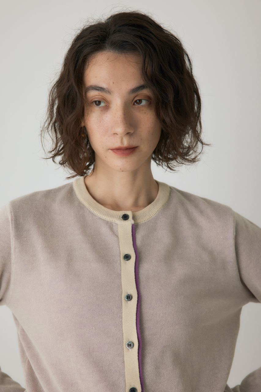 前立てや、袖口、裾からは下側のニットのカラーがちらりと見えるようにデザインしています。