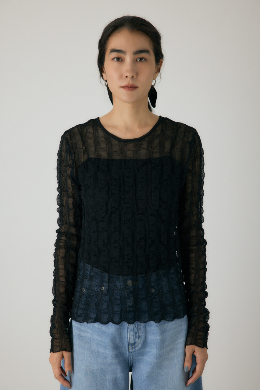 透け感のあるニット。