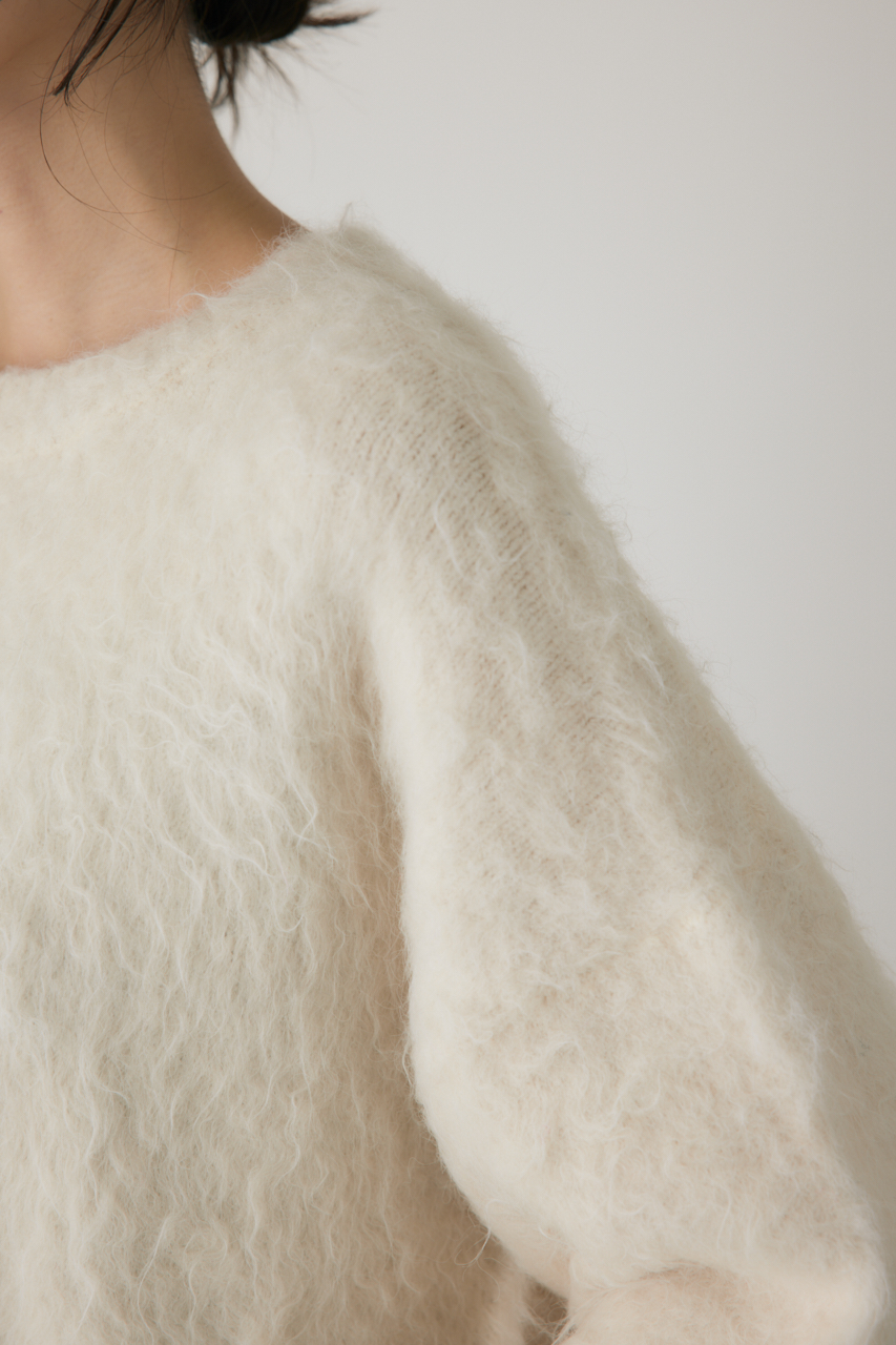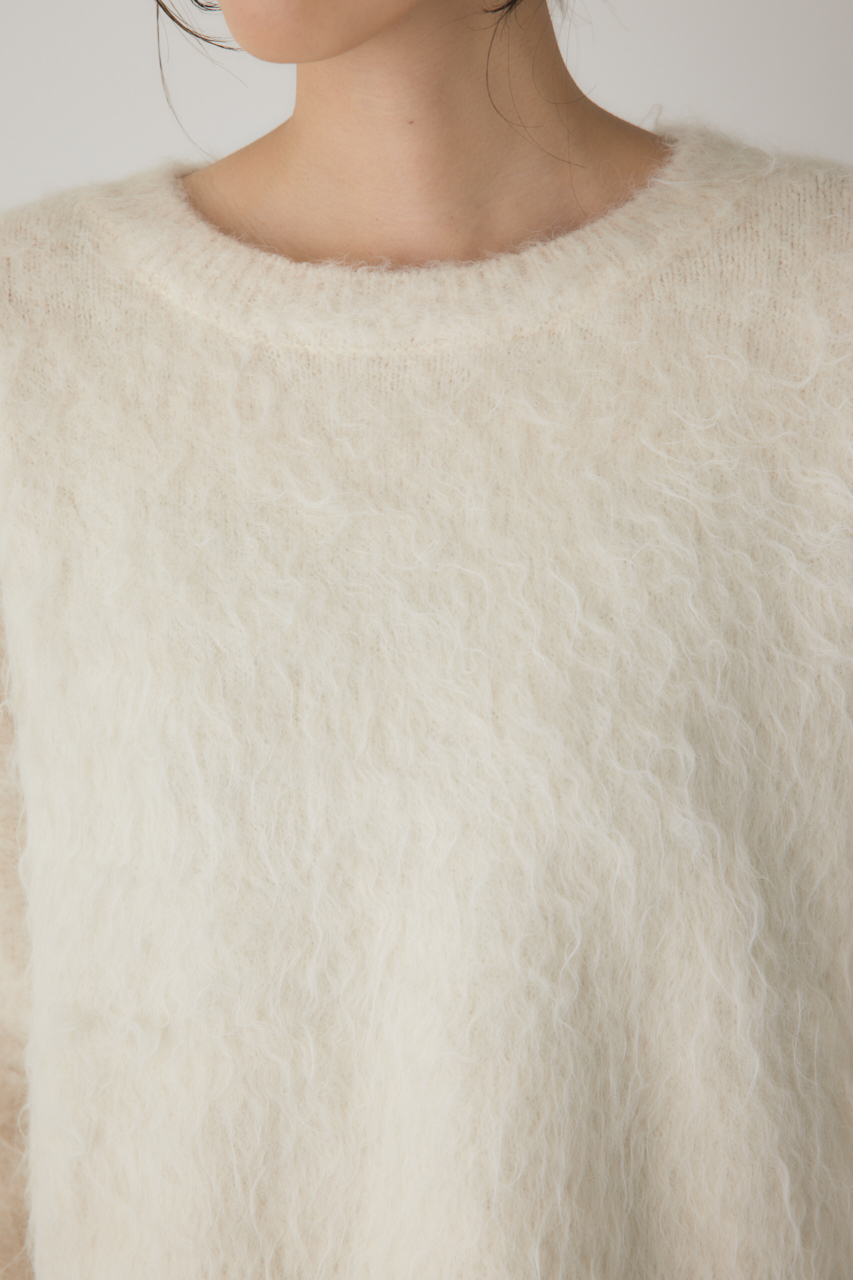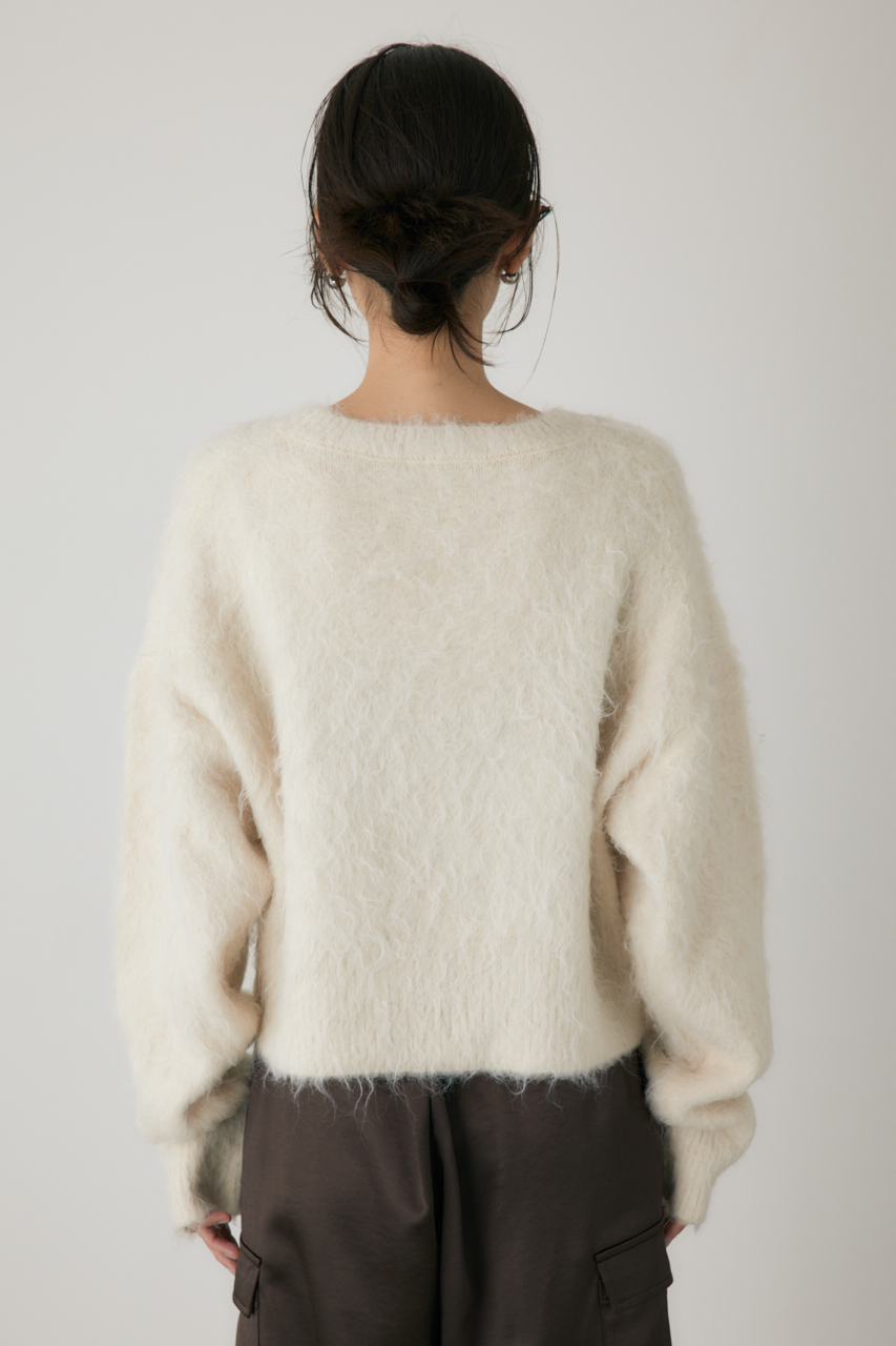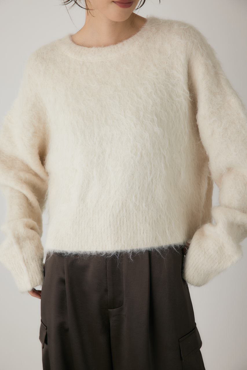 毛足の長いアイテムなので、サテンなどのツルッとしたアイテムとのコントラストのある合わせがおすすめです。