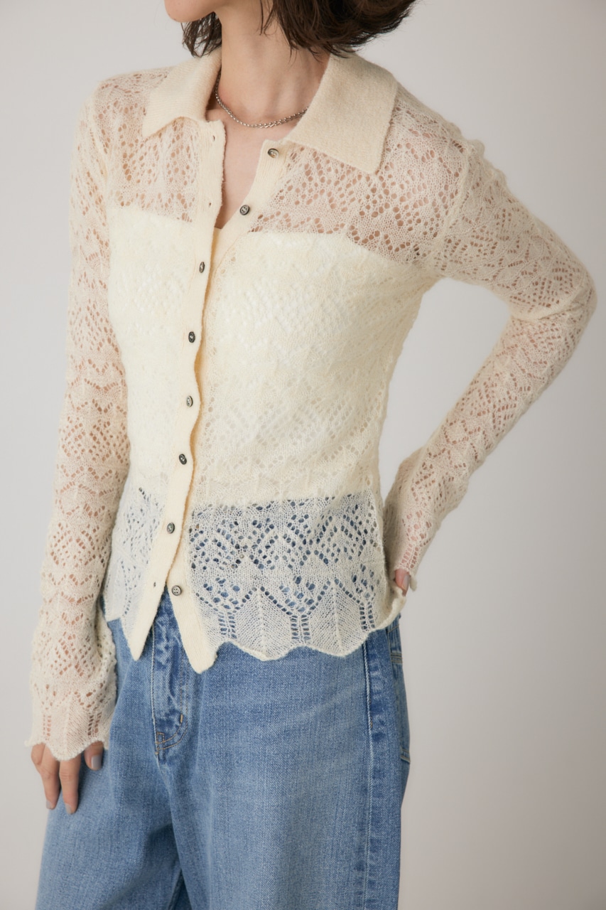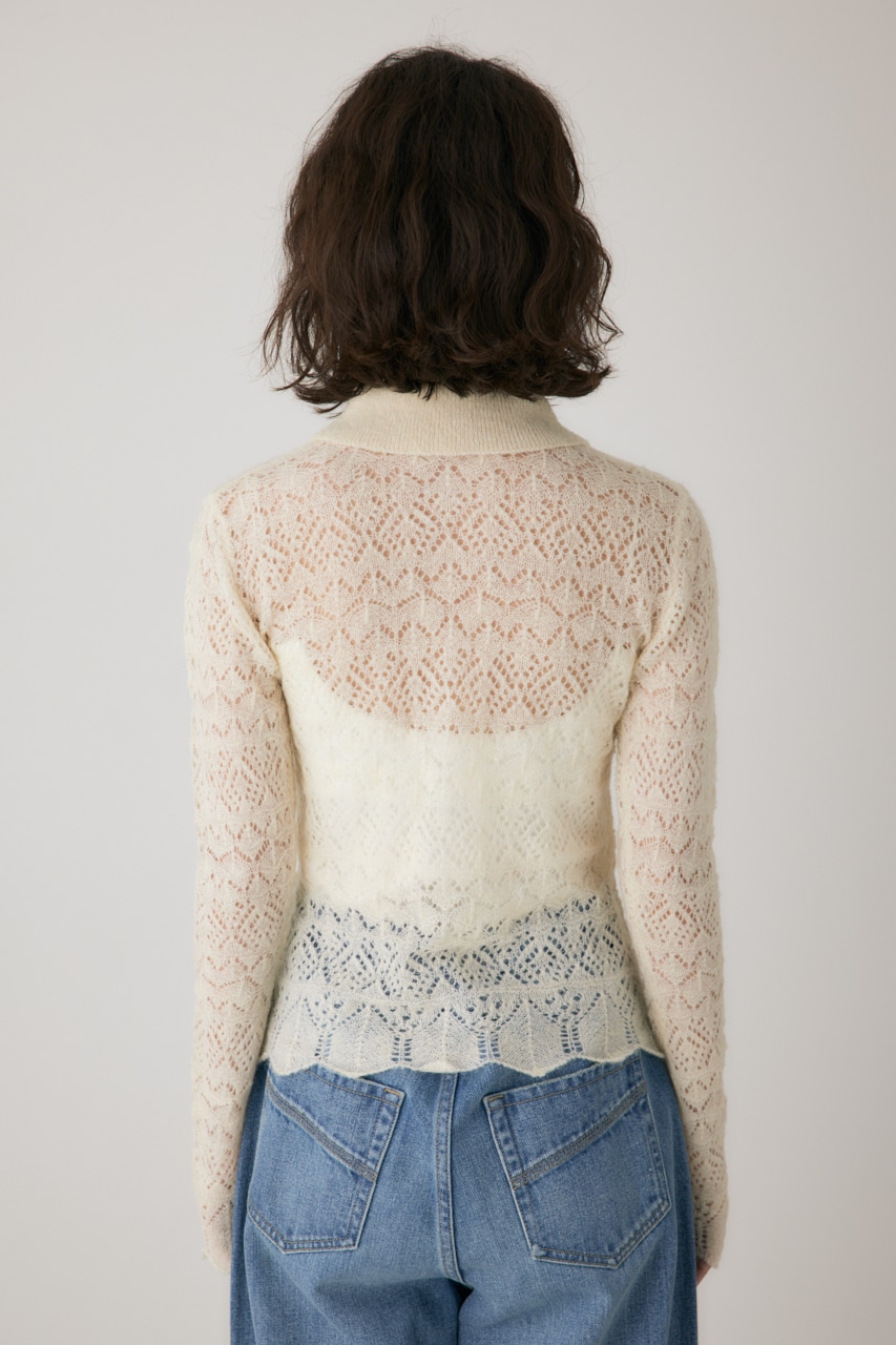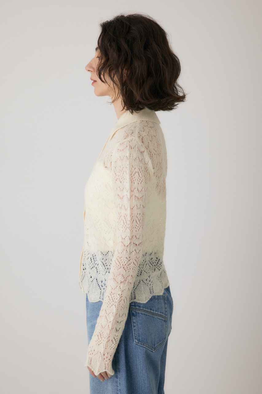1枚で着映えてくれる、透かし編みのポロカーディガンです。