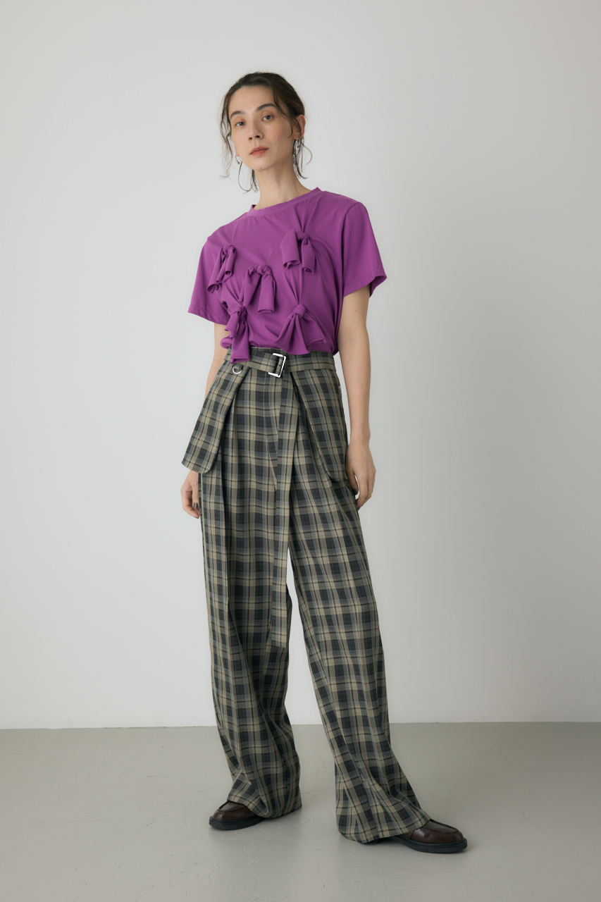身頃にくっついたリボンがポイントのカットソー。