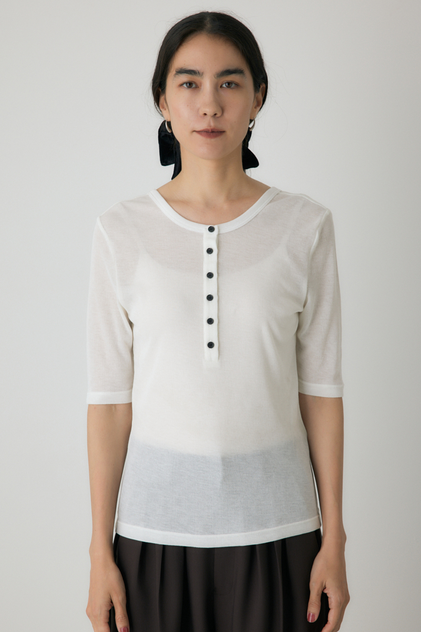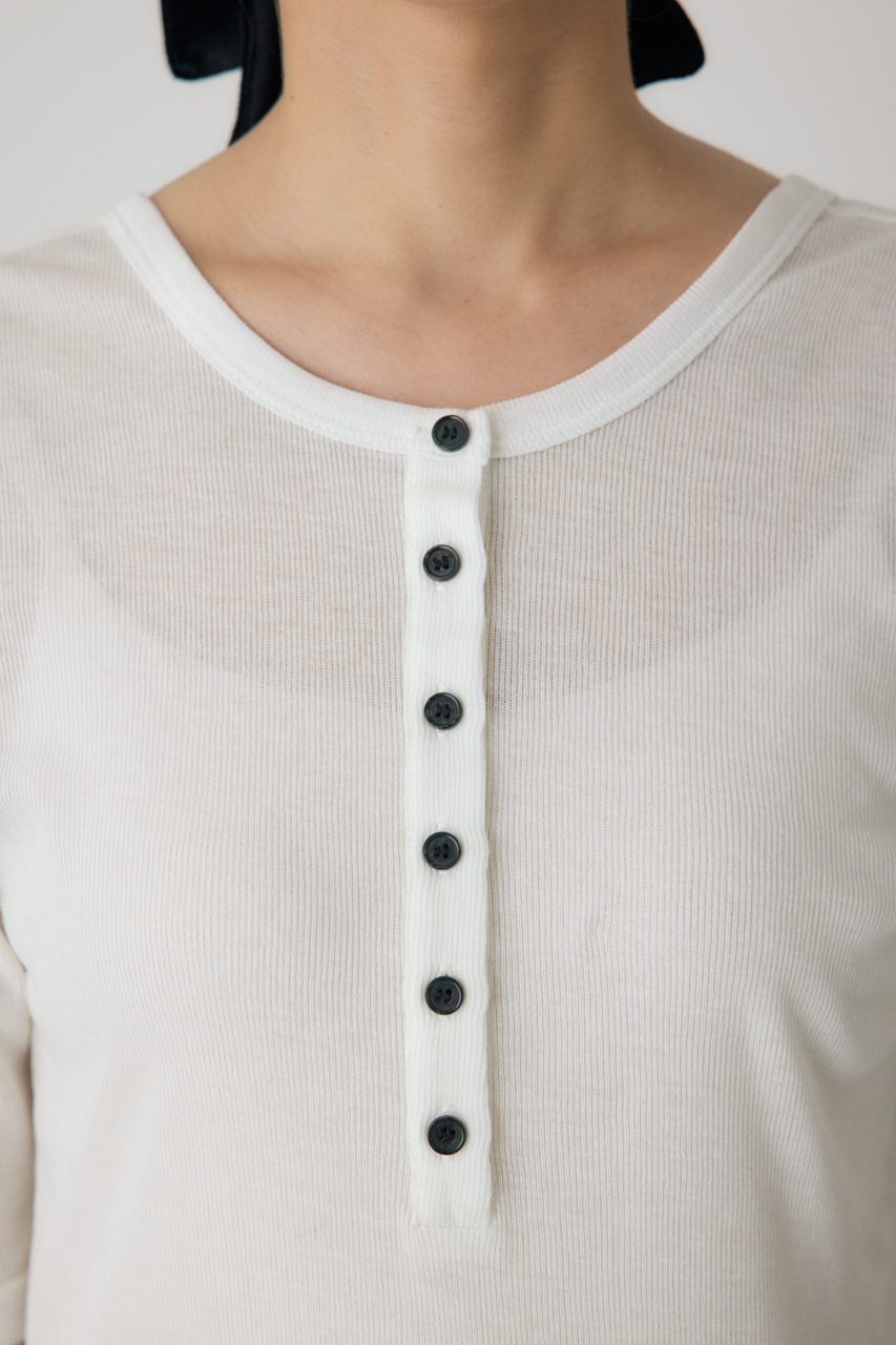 【crie conforto】バックオープンヘンリーネックTシャツ