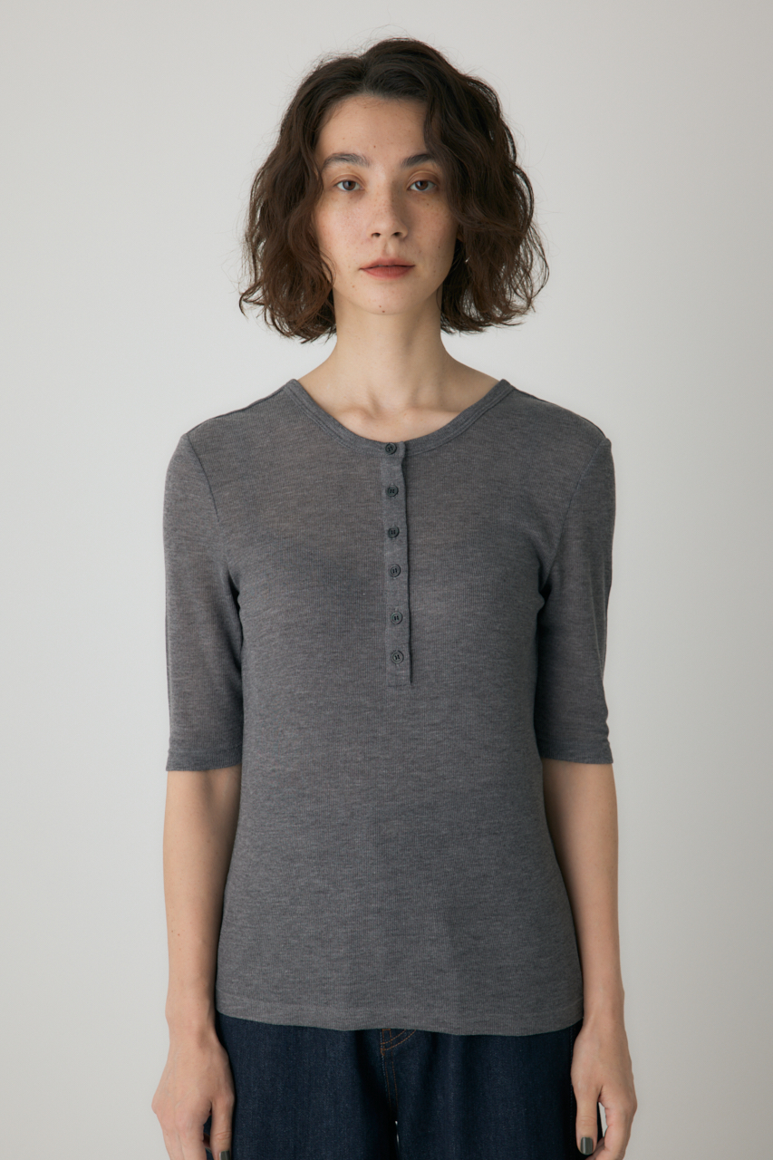 【crie conforto】バックオープンヘンリーネックTシャツ